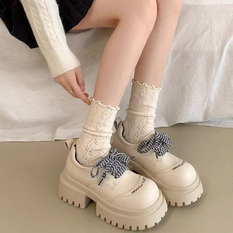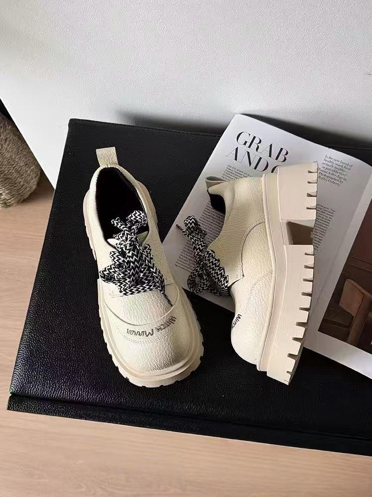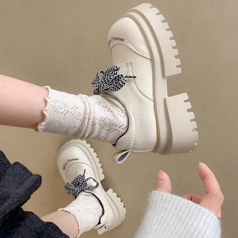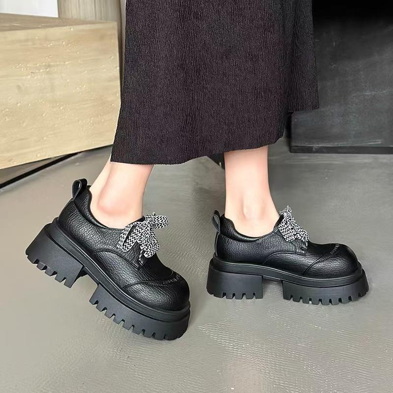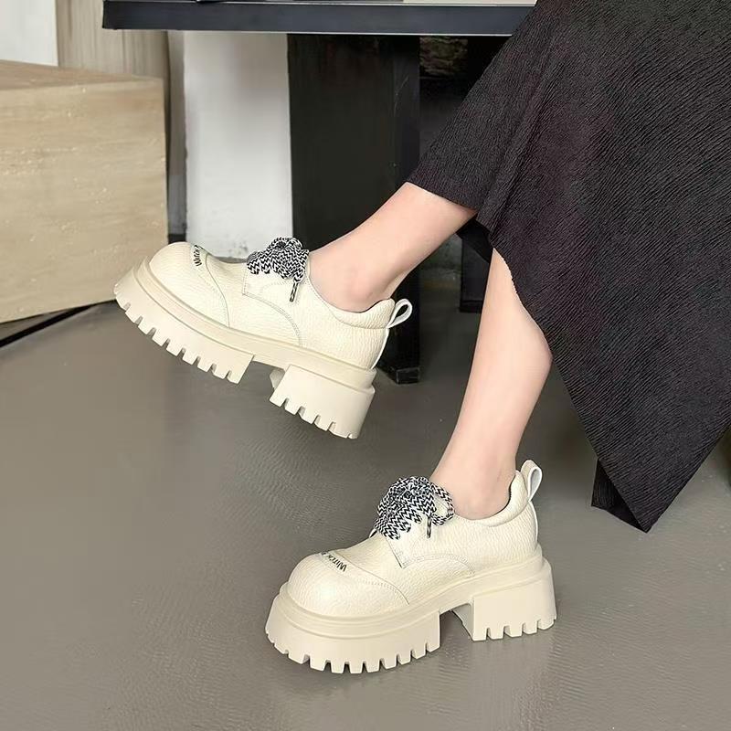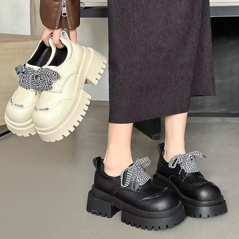 Mocasines Retro de Moda Versátiles con Cordones Estilo Británico Casual Zapatos Elegantes de Suela Gruesa Otoño 2024 Nuevo Modelo