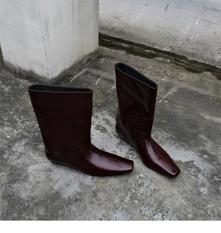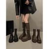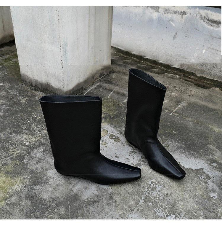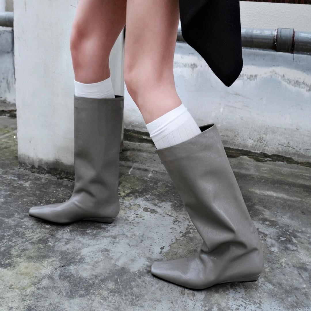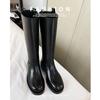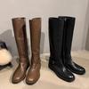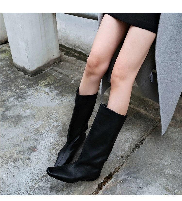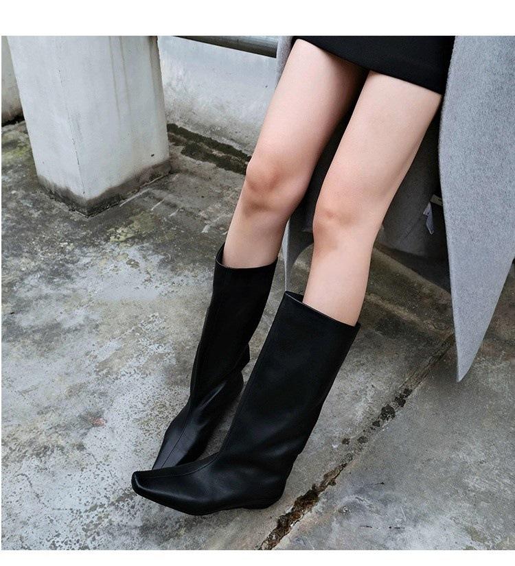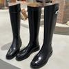 Otoño e Invierno Nuevo Estilo Punta Cuadrada Cuña Tubo Alto Tubo Medio Manga Holgada Botas Sobre la Rodilla Botas de Caballero para Mujer
