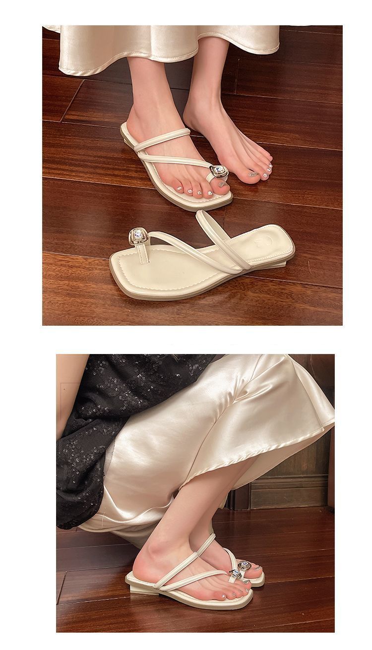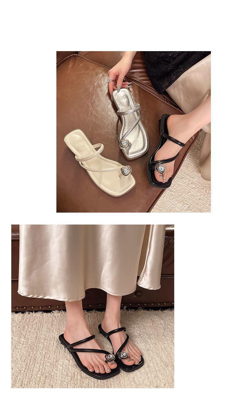 Sandalias Planas de Punta Descubierta Tipo Chancla Francesa para Mujer de Verano 2025
