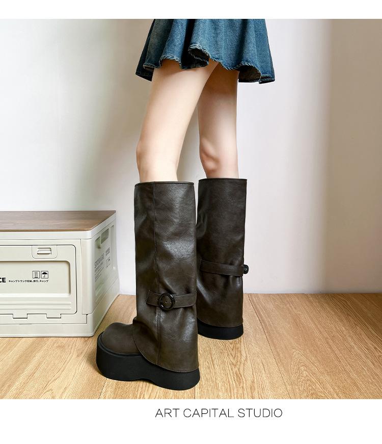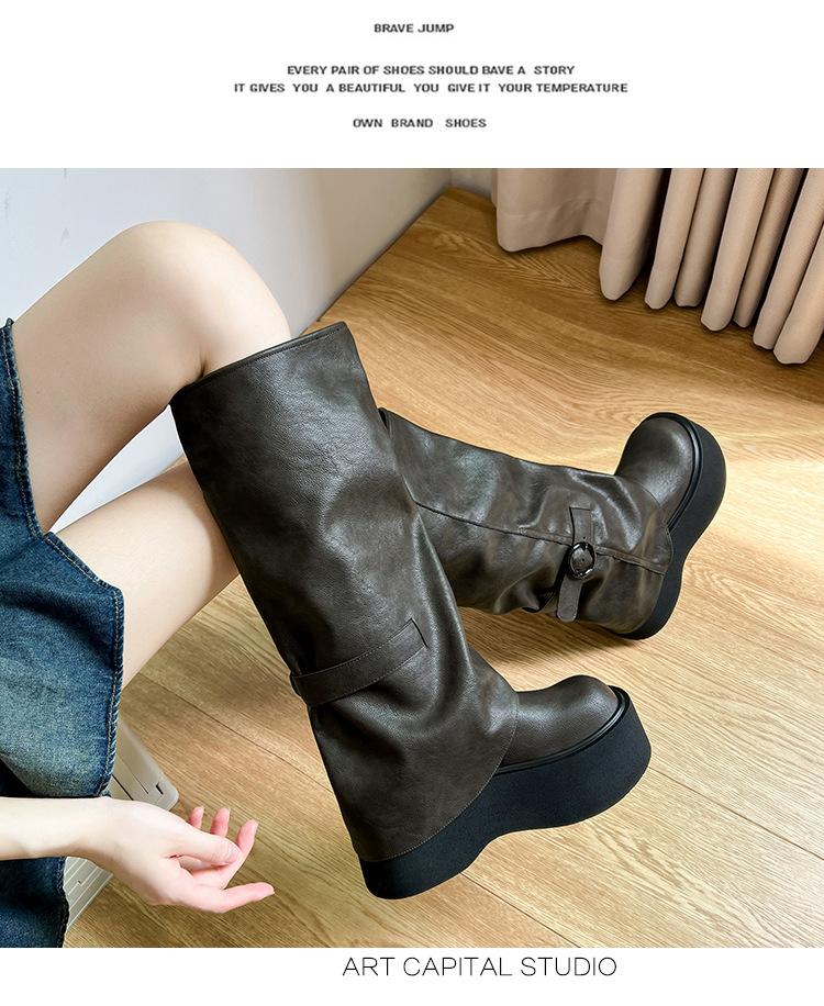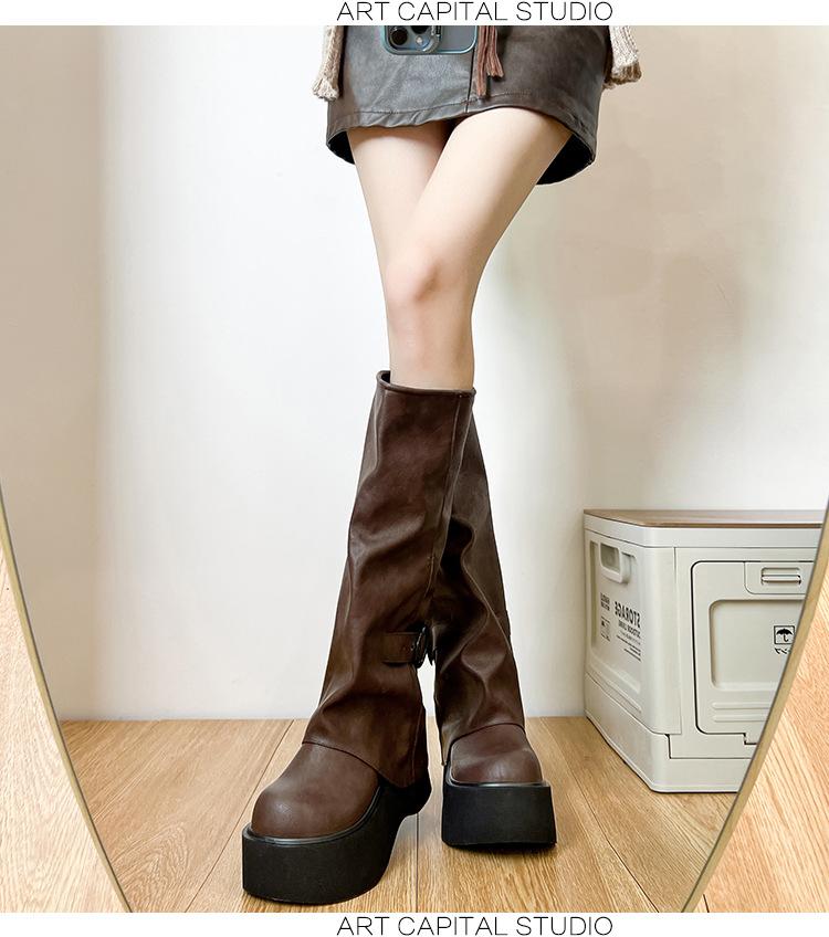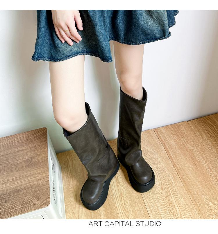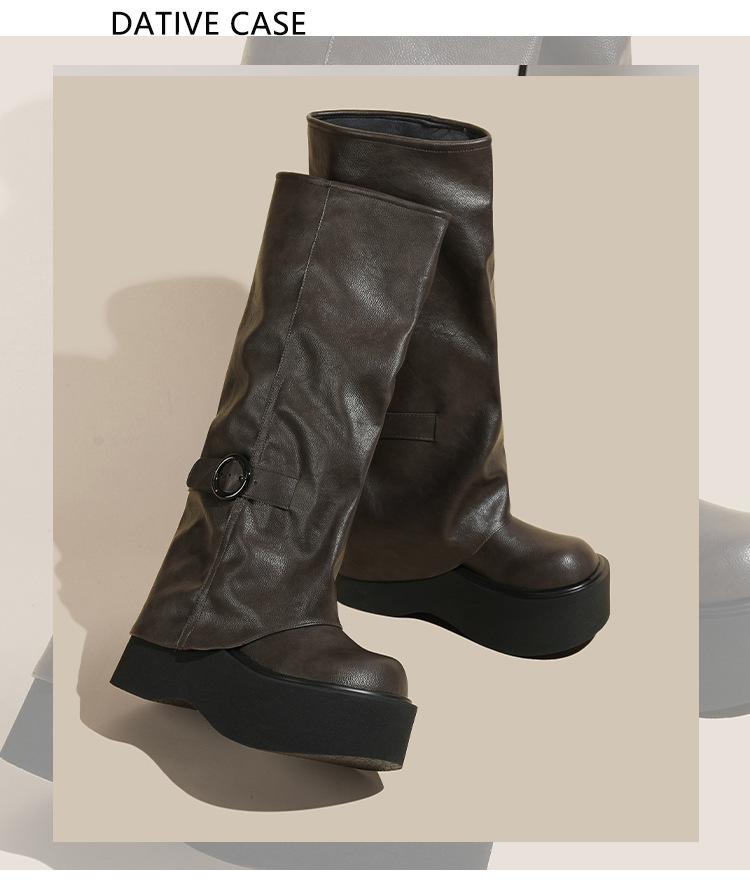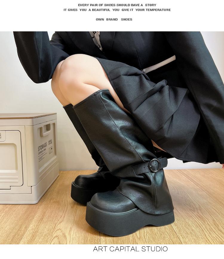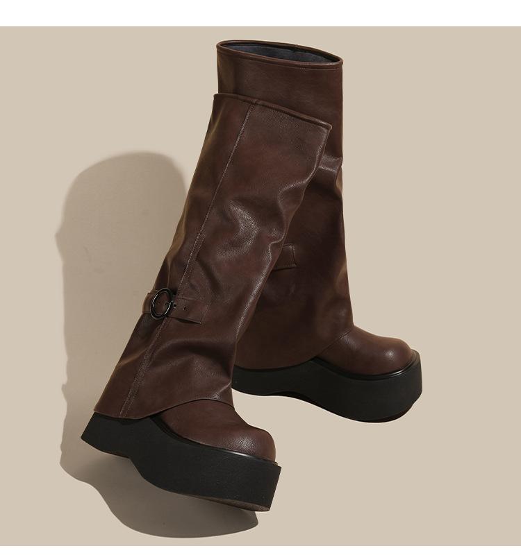 Botas pantalón otoño e invierno 2024 nuevas pero botas largas hasta la rodilla de suela gruesa diseño nicho botas de caballero delgadas talla pequeña
