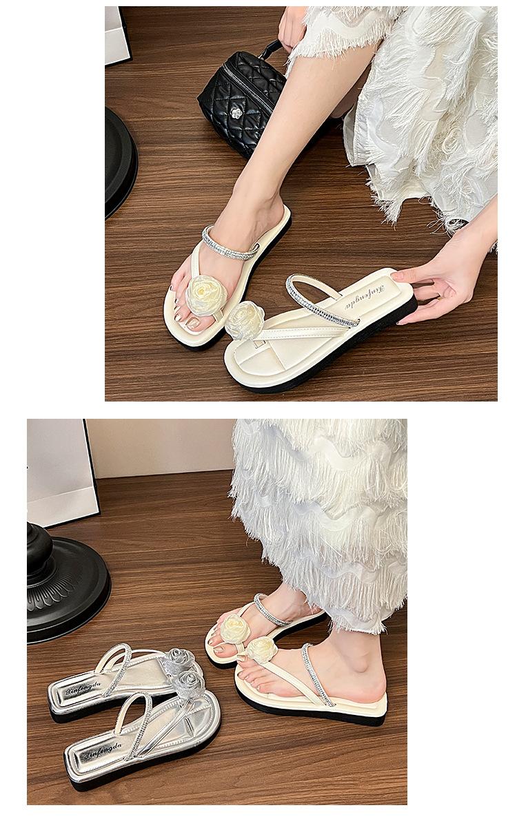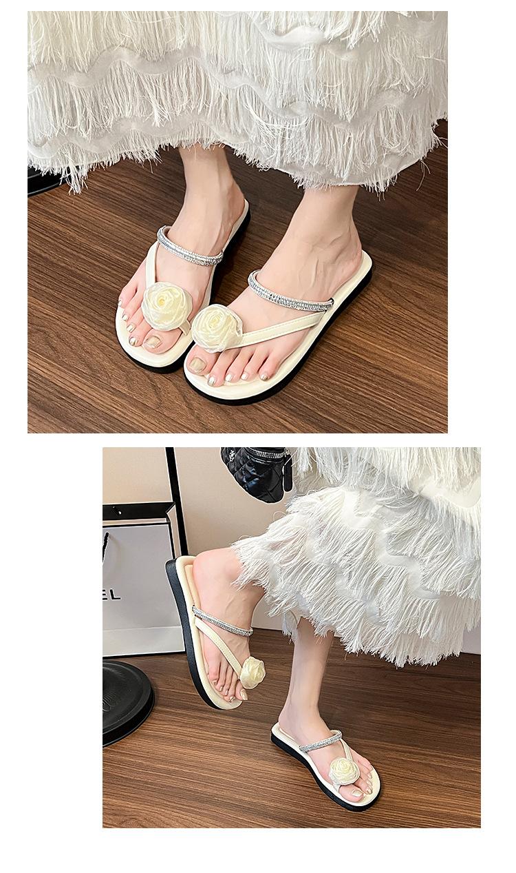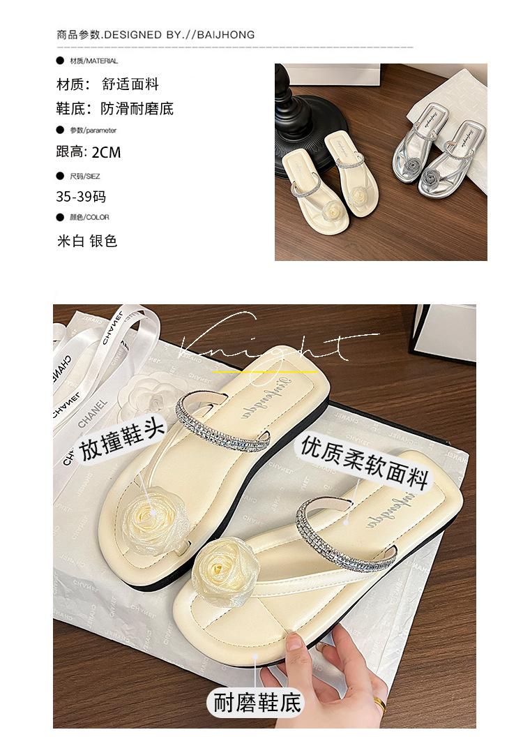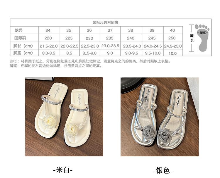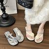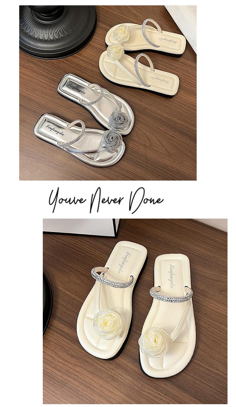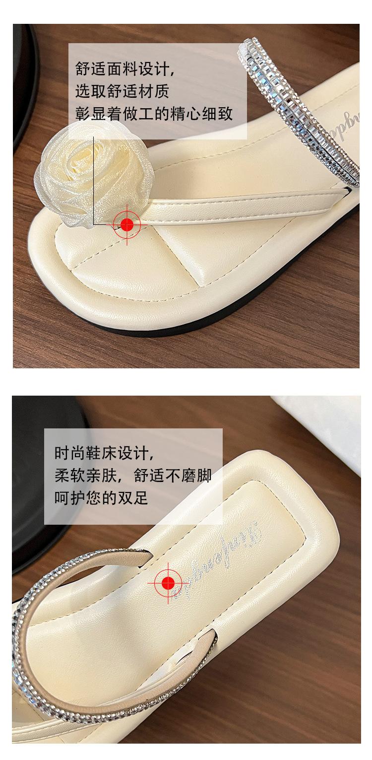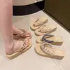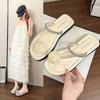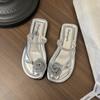 Sandalias planas para verano para mujer 2025 Nuevo estilo Pedrería Estilo hada Suela suave Antideslizantes Chanclas de playa