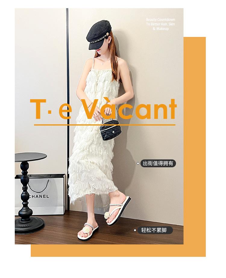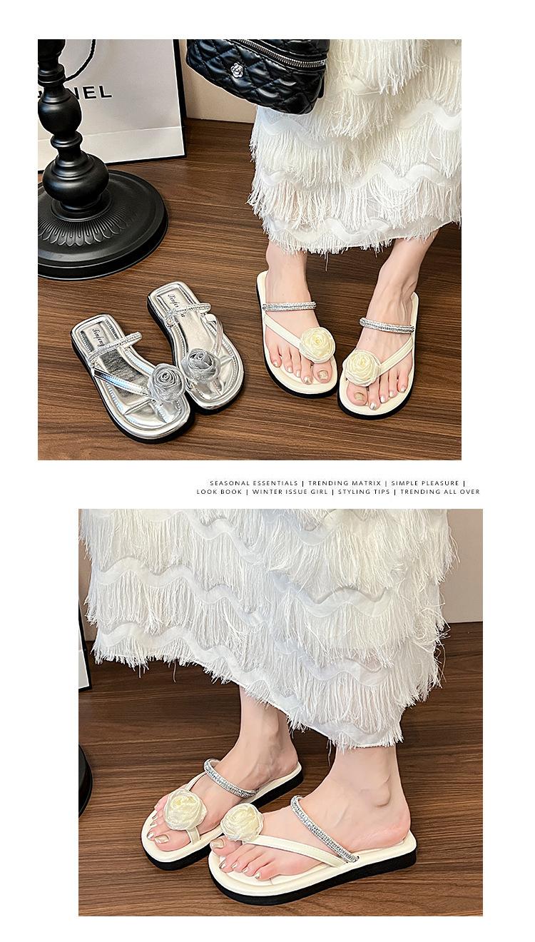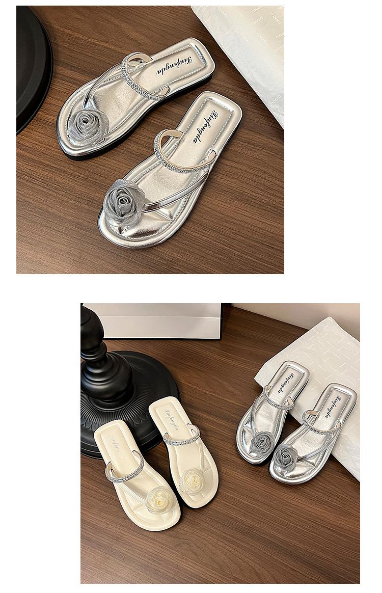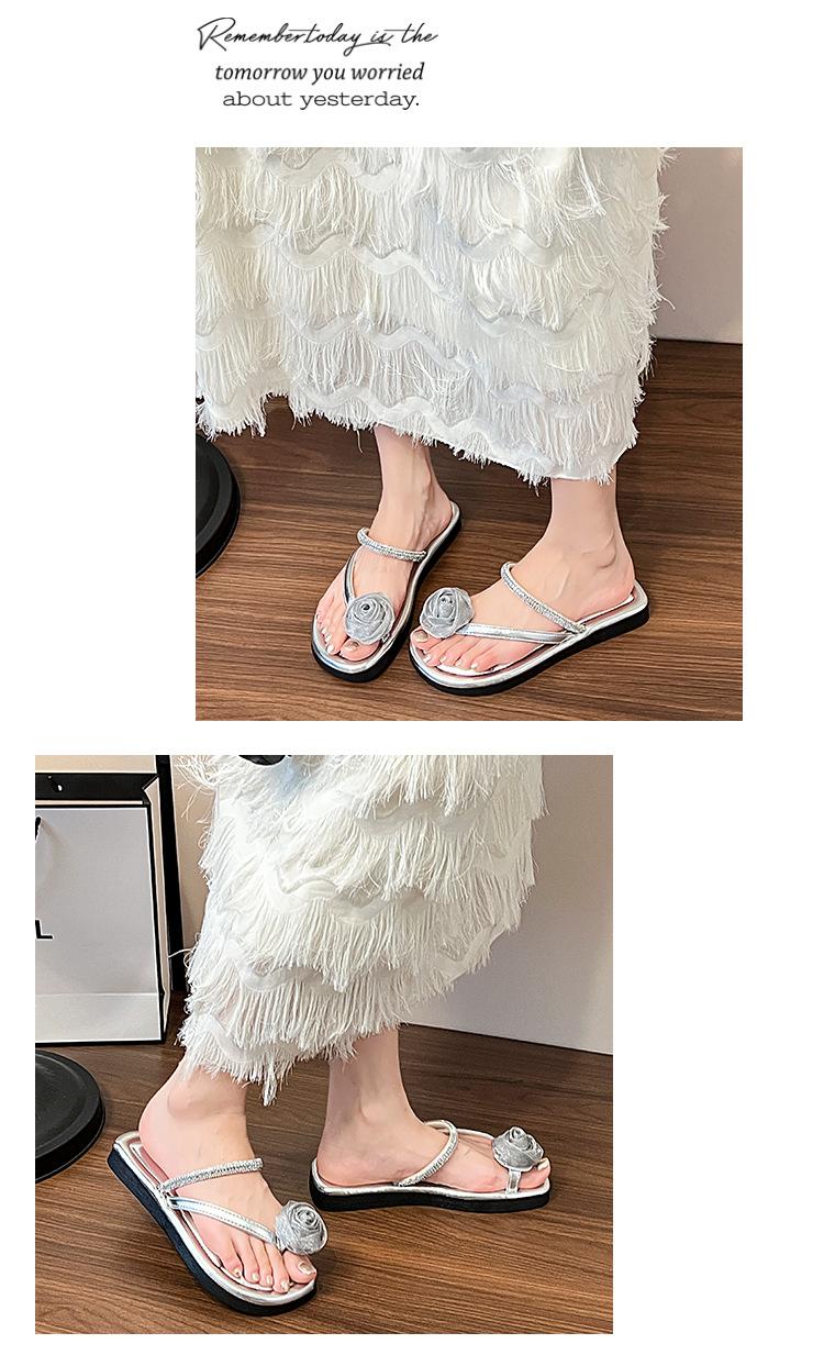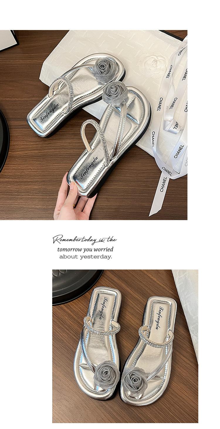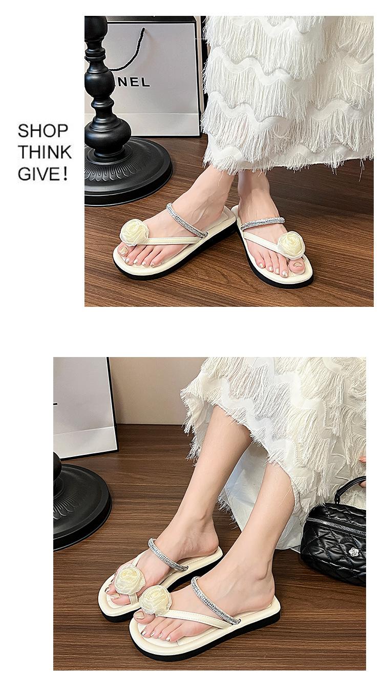 Sandalias planas para verano para mujer 2025 Nuevo estilo Pedrería Estilo hada Suela suave Antideslizantes Chanclas de playa