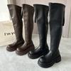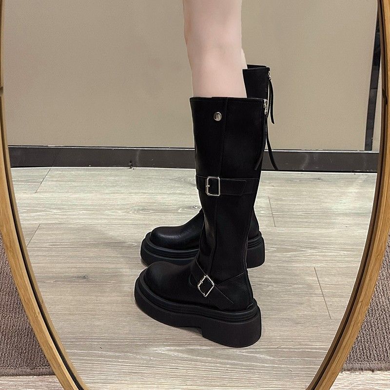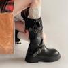 Botas de Caballero Estilo Británico Maillard Botas de Motocicleta Botas Largas Versátiles y a la Moda con Suela Gruesa y Aumento de Altura para Mujer Otoño 2025 Nuevo Estilo
