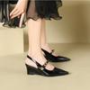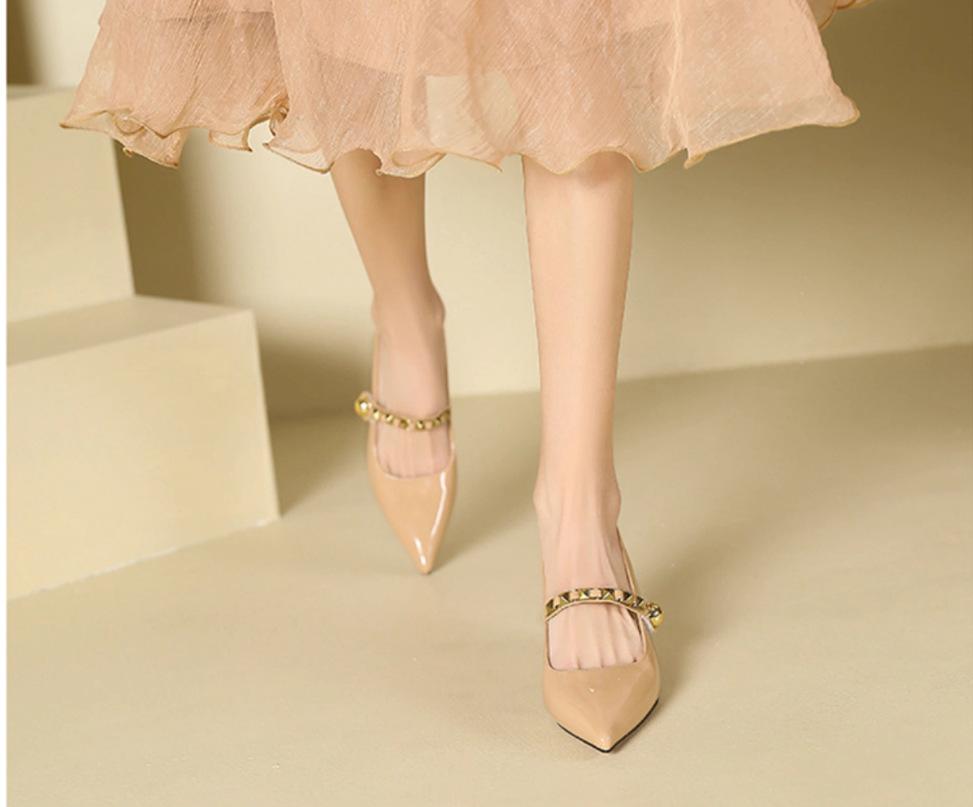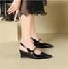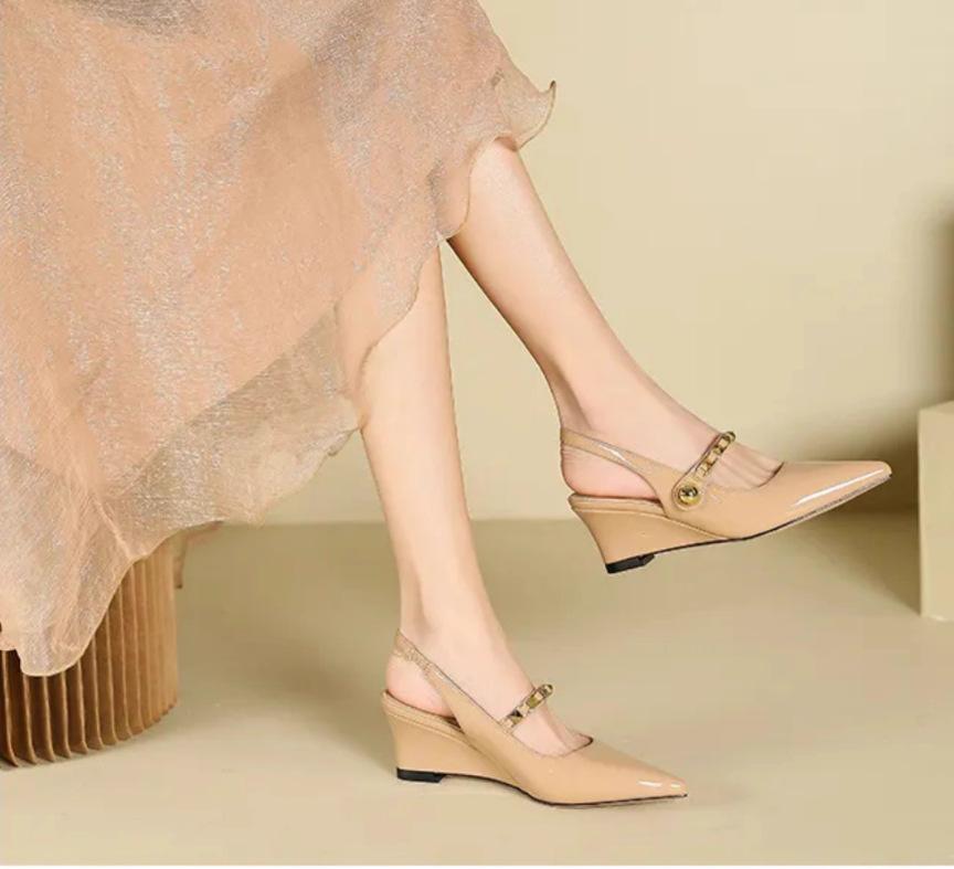 Tacones Altos de Cuña Nude para Mujer 2025 Verano Nuevo Estilo Sandalias Baotou Boca Francesa Poco Profunda Zapatos de Punta