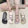 Sandalias de cuña de verano 2025 de nueva llegada, chanclas de dedo grueso para mujer con plataforma para aumentar la altura, pantuflas versátiles
