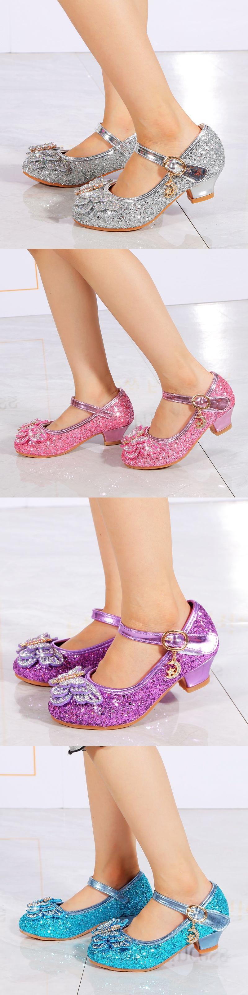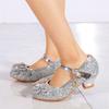 Zapatos Nuevos para Niñas con Lazo de Pedrería, Zapatos Individuales de Princesa de Tacón Alto para Niños, Zapatos de Cuero para Actuación de Niñas Estudiantes Modelo