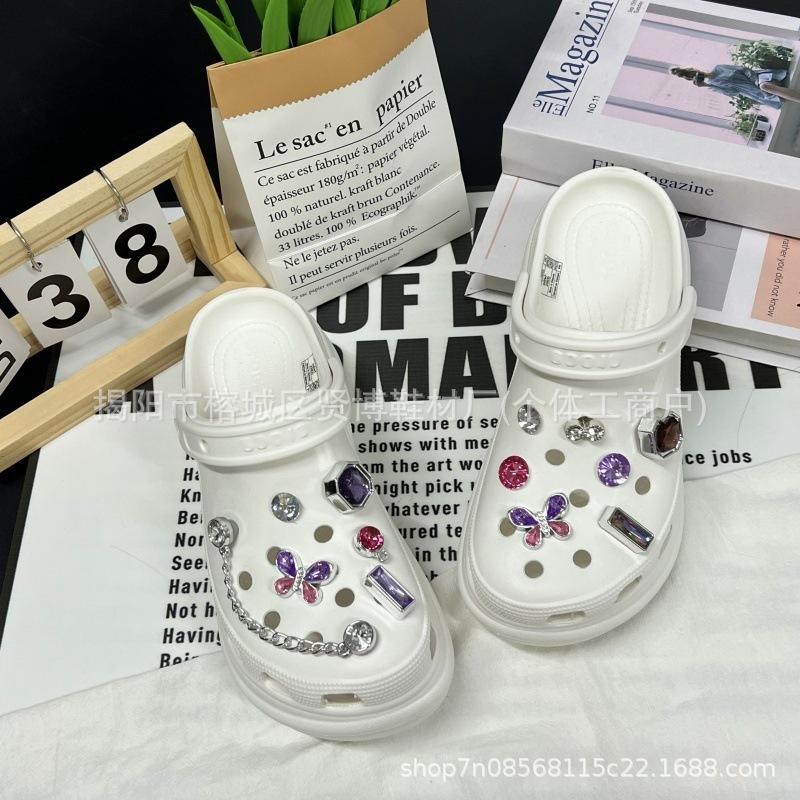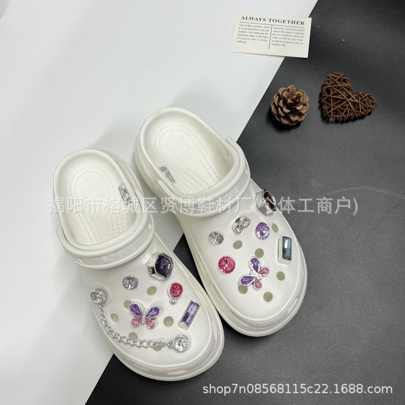 Nuevos Accesorios de Mariposa de Diamantes Coloridos Zuecos Joyería DIY Decoraciones para Zapatos Flores Removibles para Zapatos Hebillas para Zapatos Transfronterizo