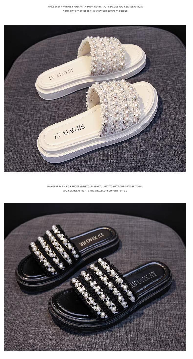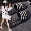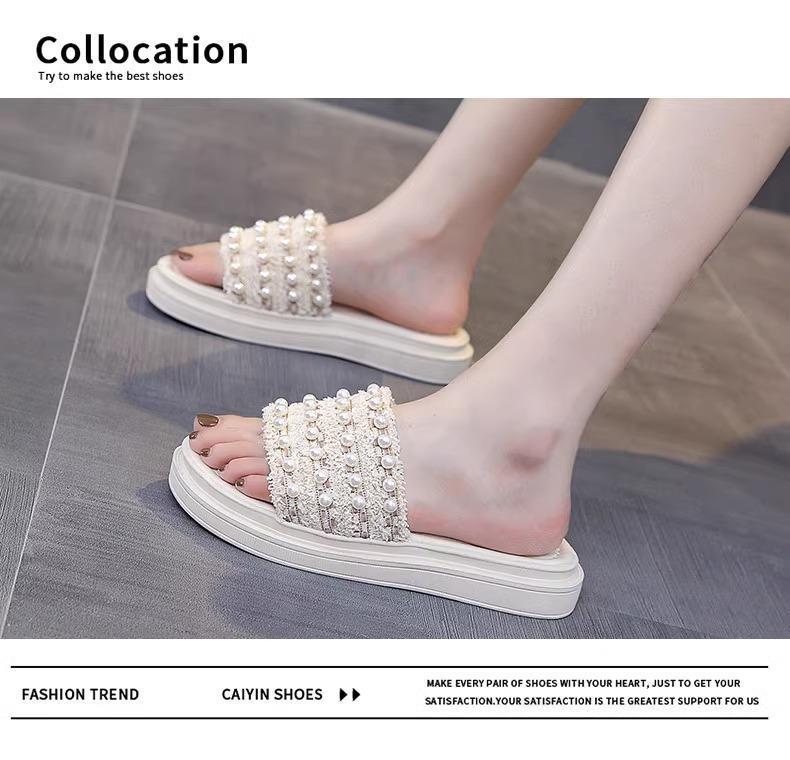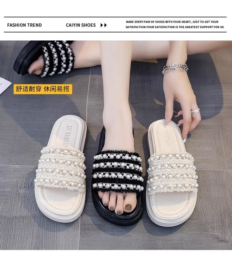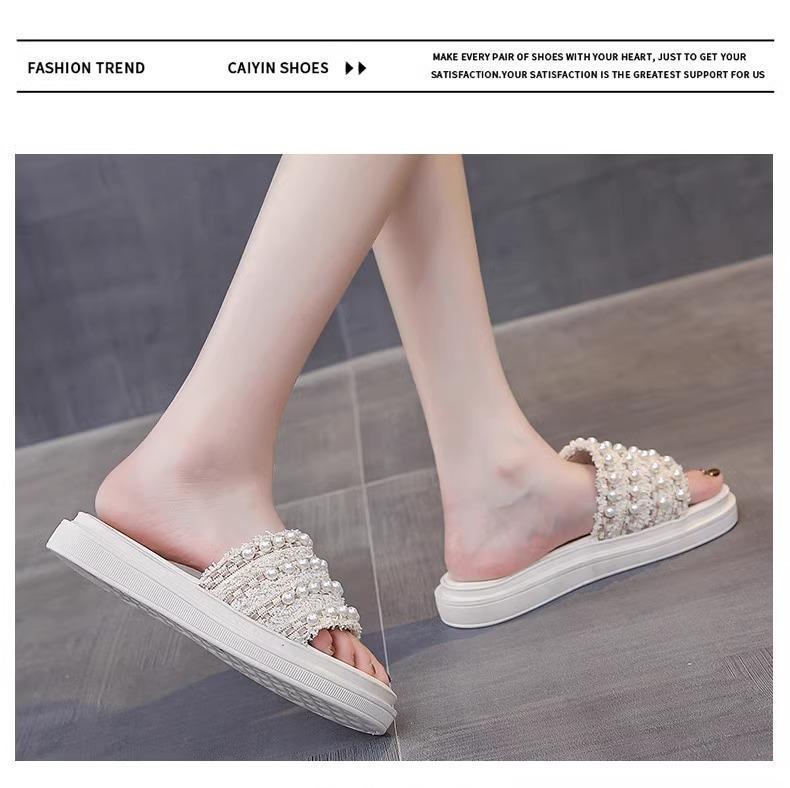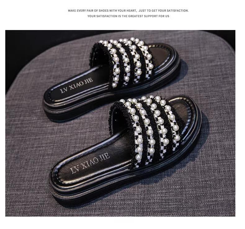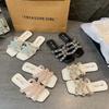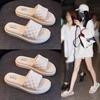 Pantuflas de Verano para Mujer para Uso Exterior 2025 de Moda Estilo Chanel Nuevas Ins Populares Sandalias Planas de Diapositiva Sandalias de Moda Elegantes