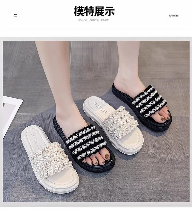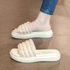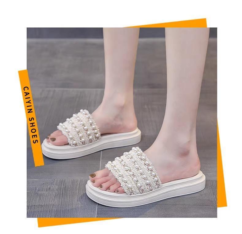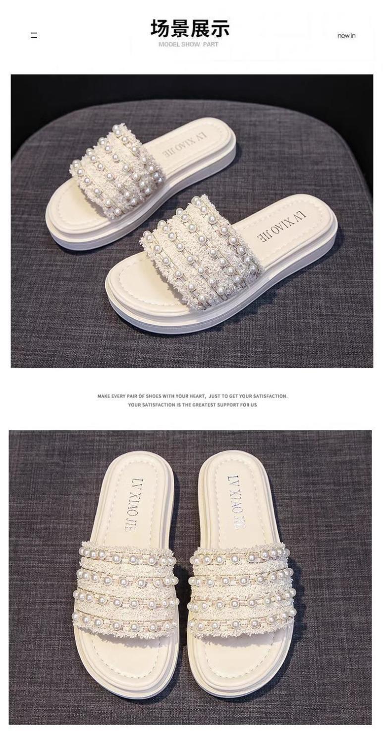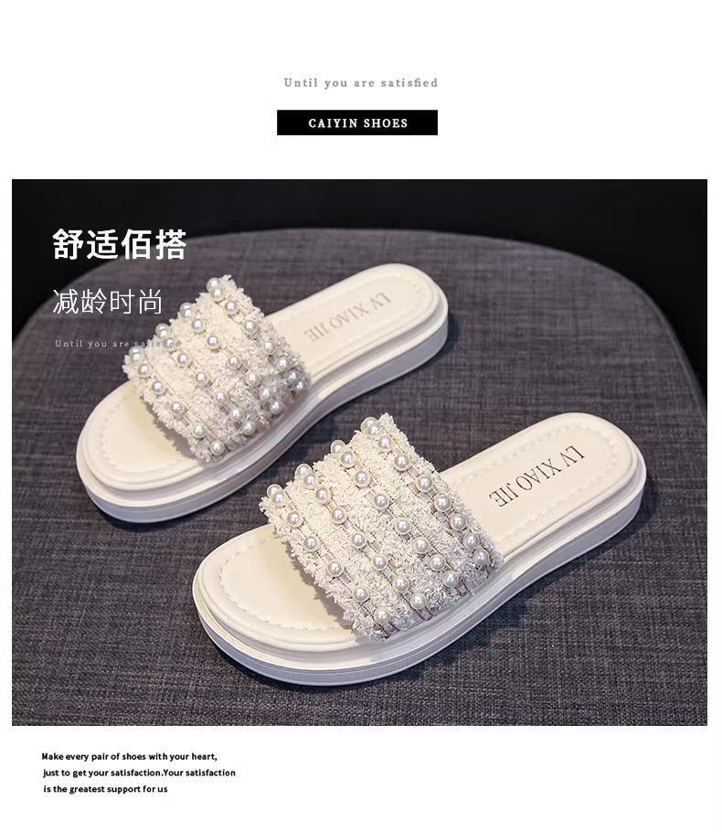 Pantuflas de Verano para Mujer para Uso Exterior 2025 de Moda Estilo Chanel Nuevas Ins Populares Sandalias Planas de Diapositiva Sandalias de Moda Elegantes