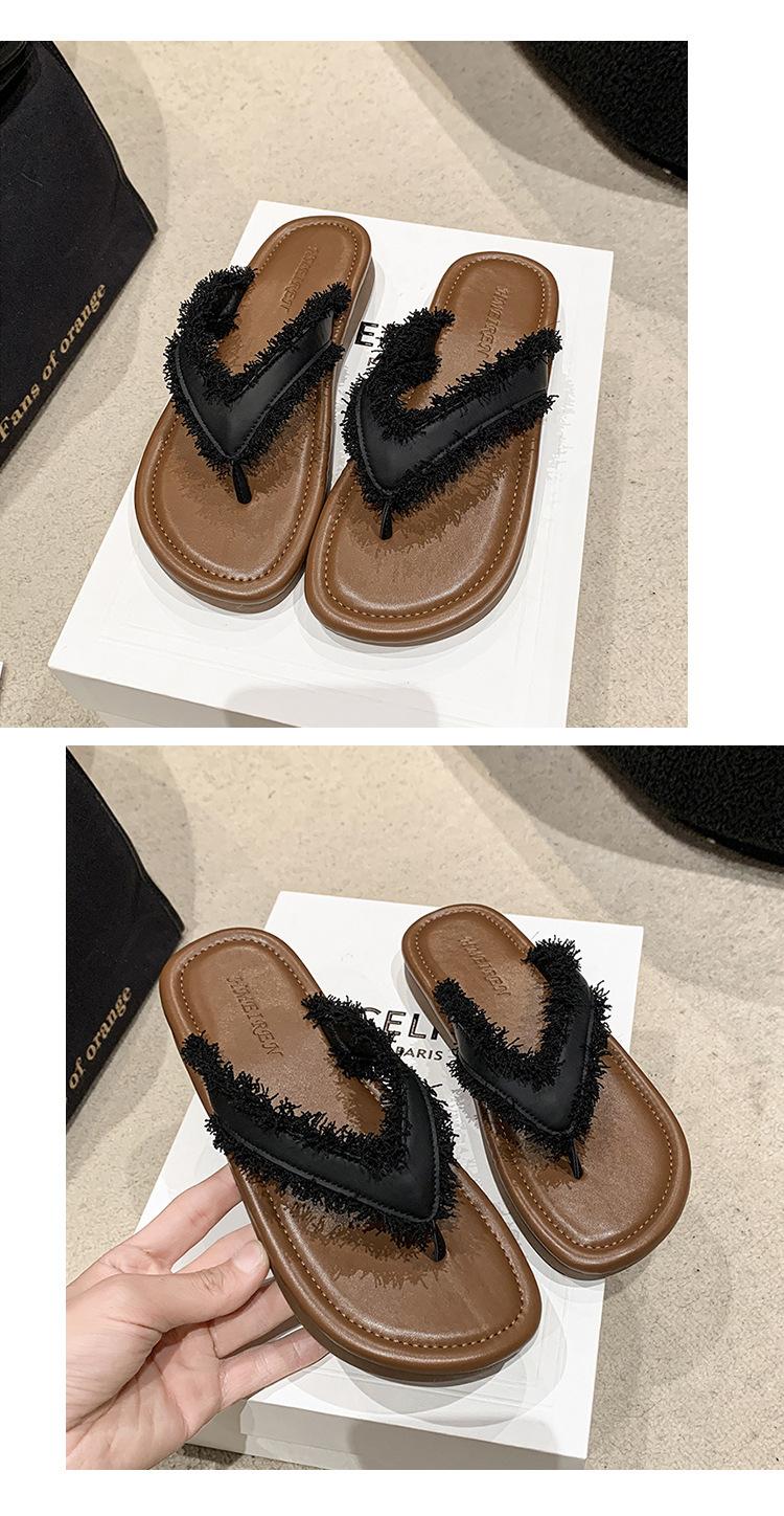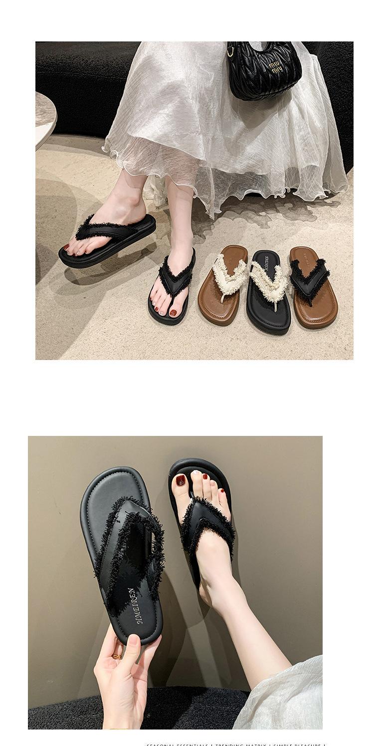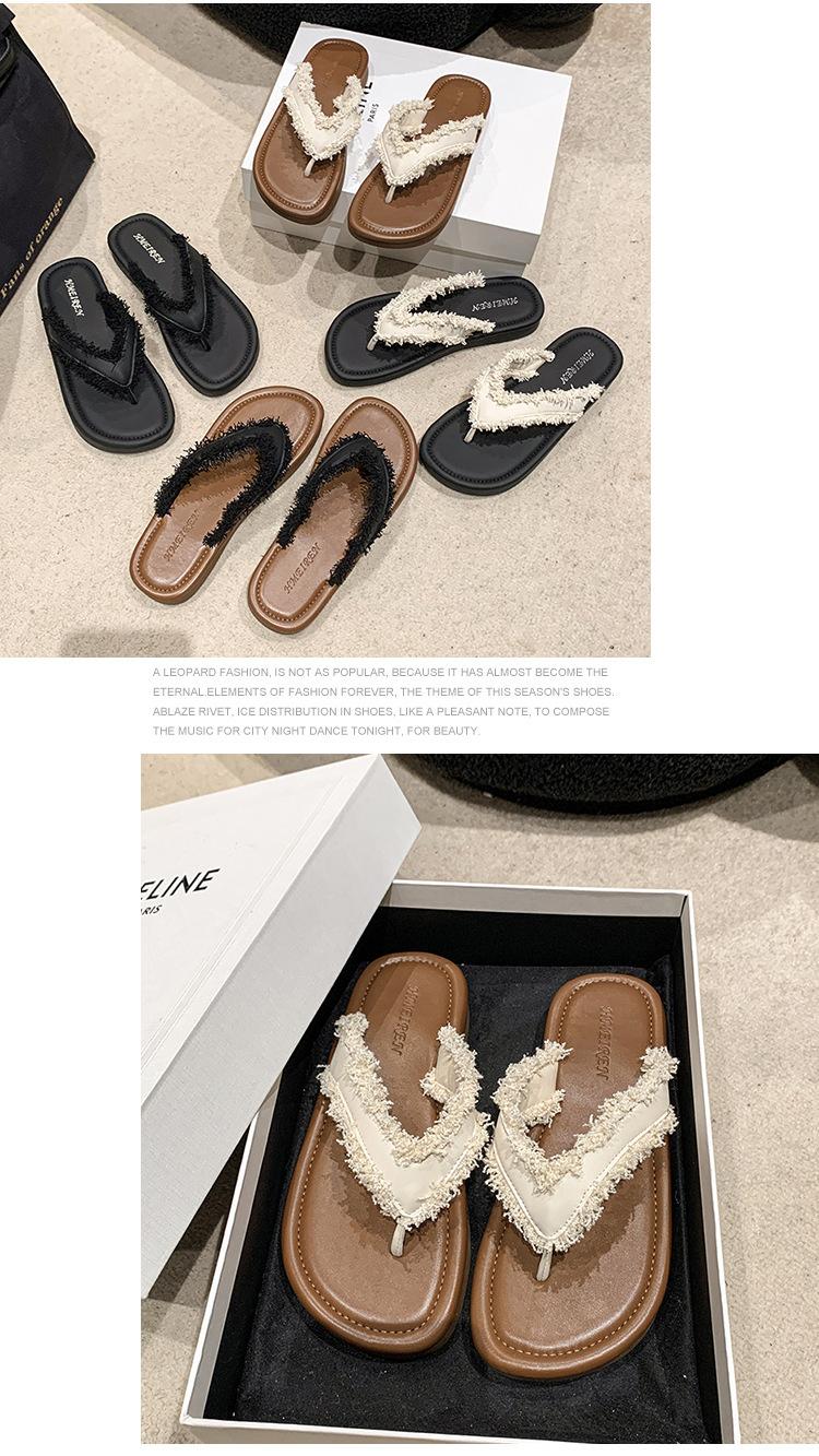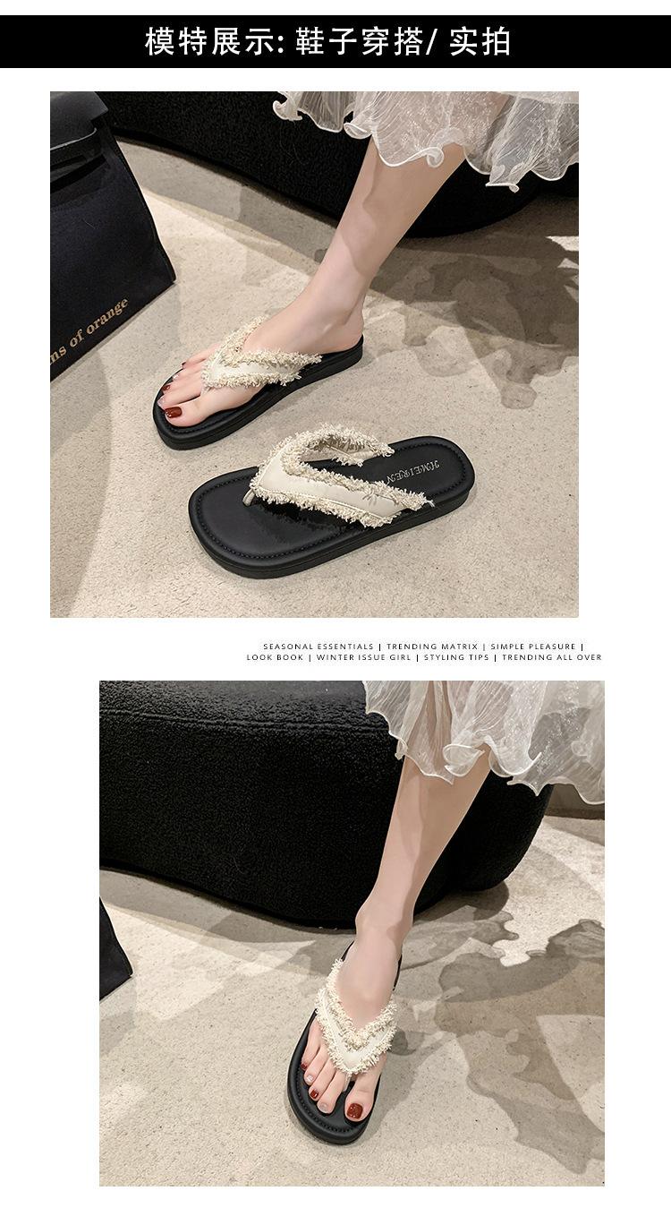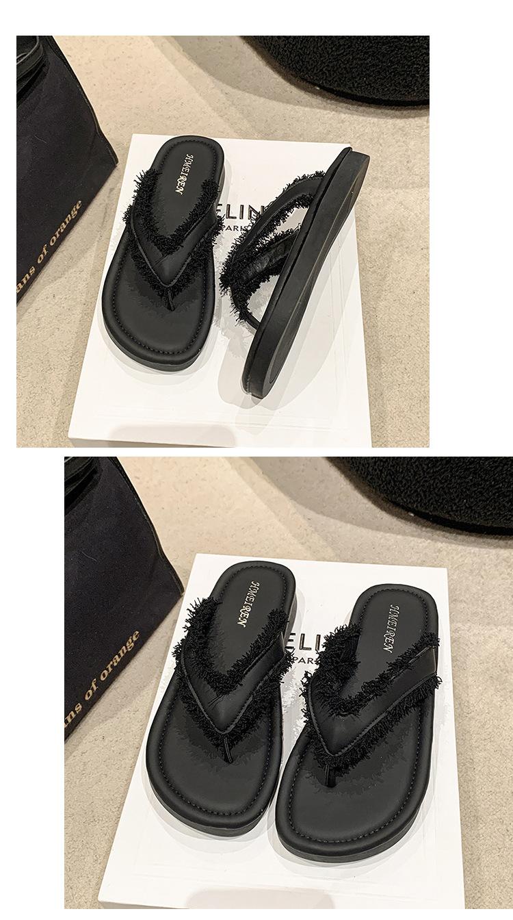 Chanclas de Moda para Mujer para Uso Exterior, Moda Verano 2024 Versátiles Sandalias de Playa de Suela Gruesa con Borlas, Estilo Ins