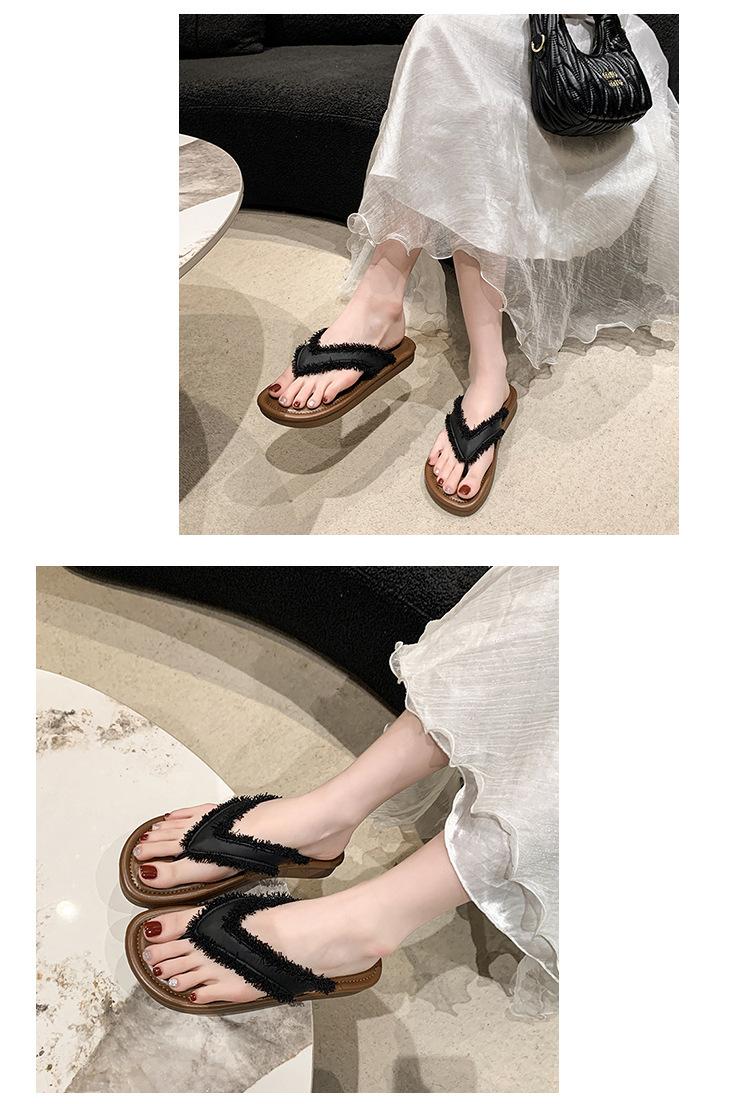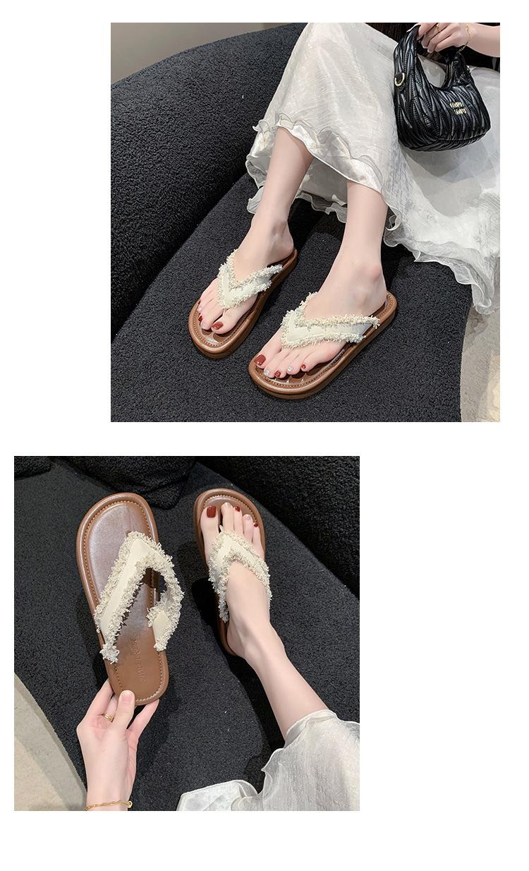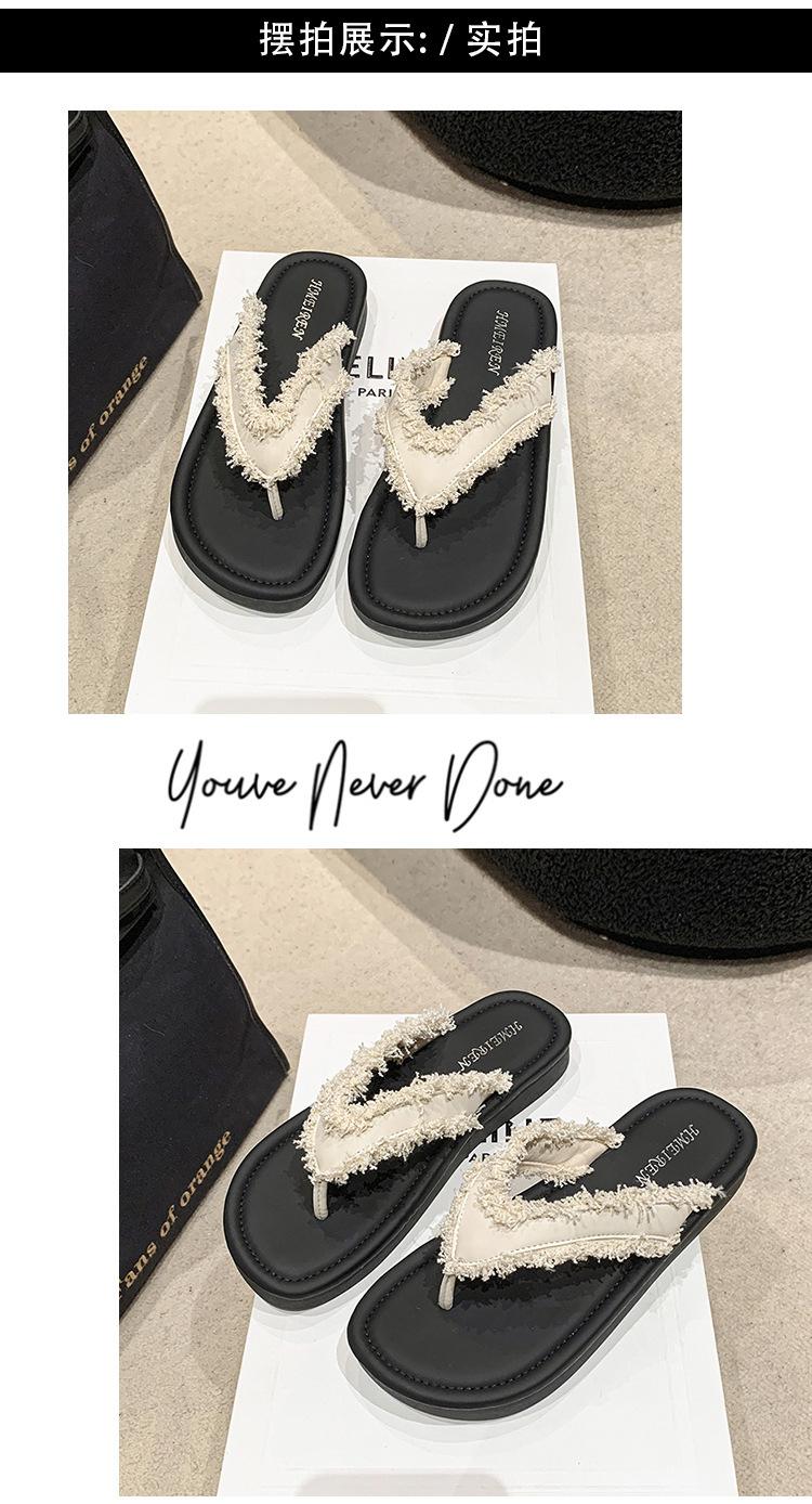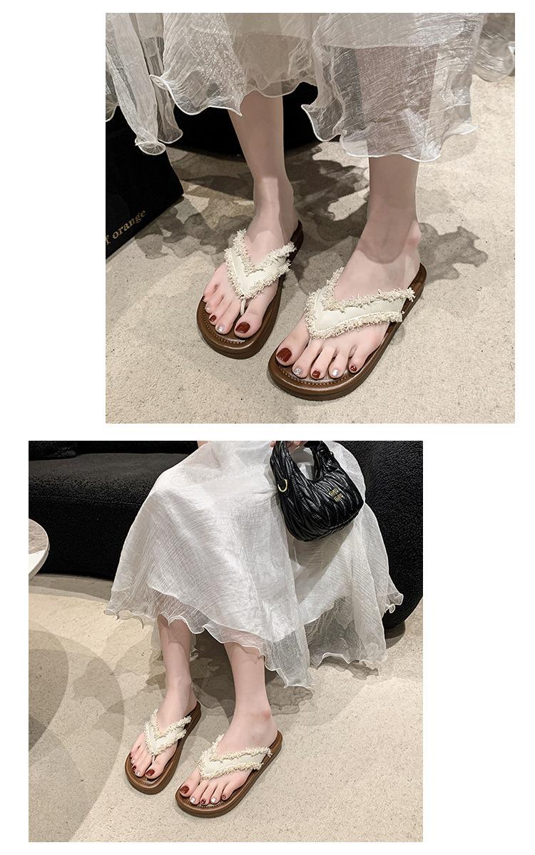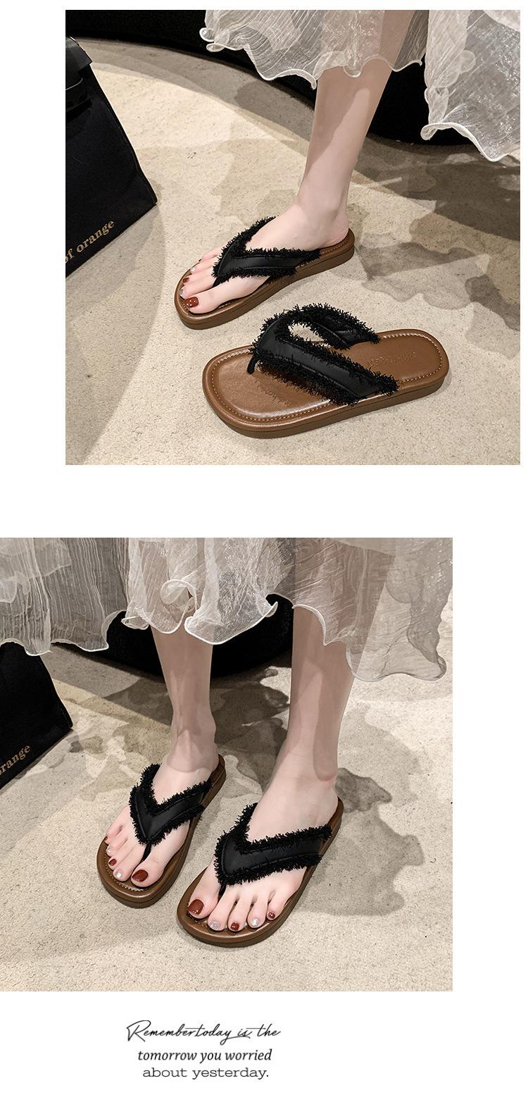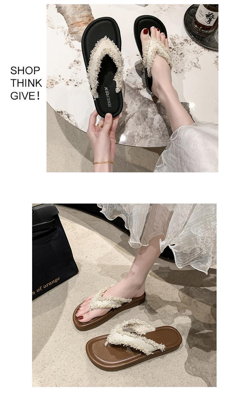 Chanclas de Moda para Mujer para Uso Exterior, Moda Verano 2024 Versátiles Sandalias de Playa de Suela Gruesa con Borlas, Estilo Ins