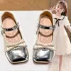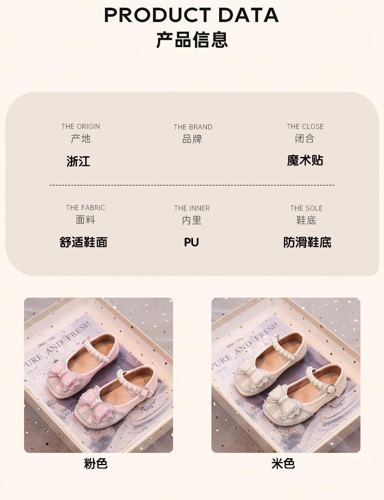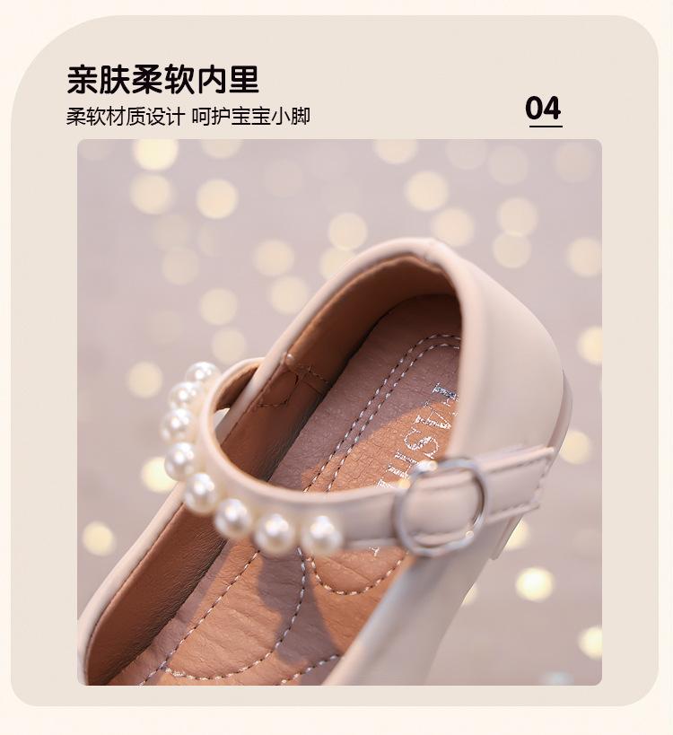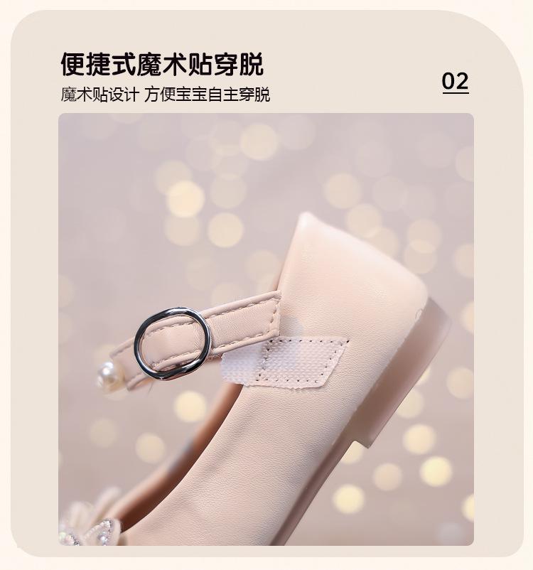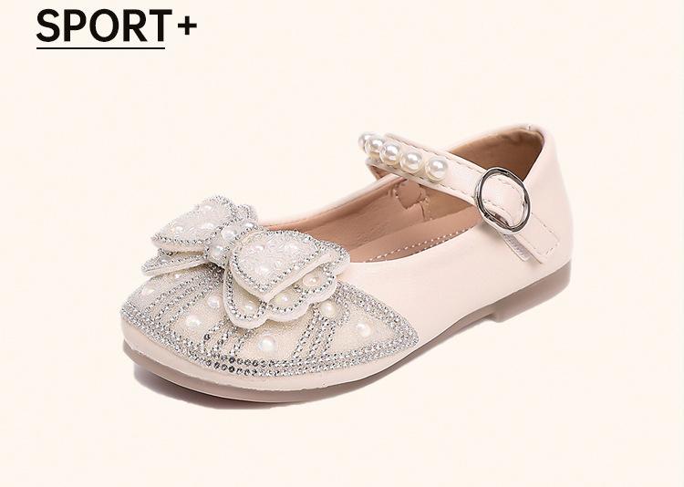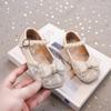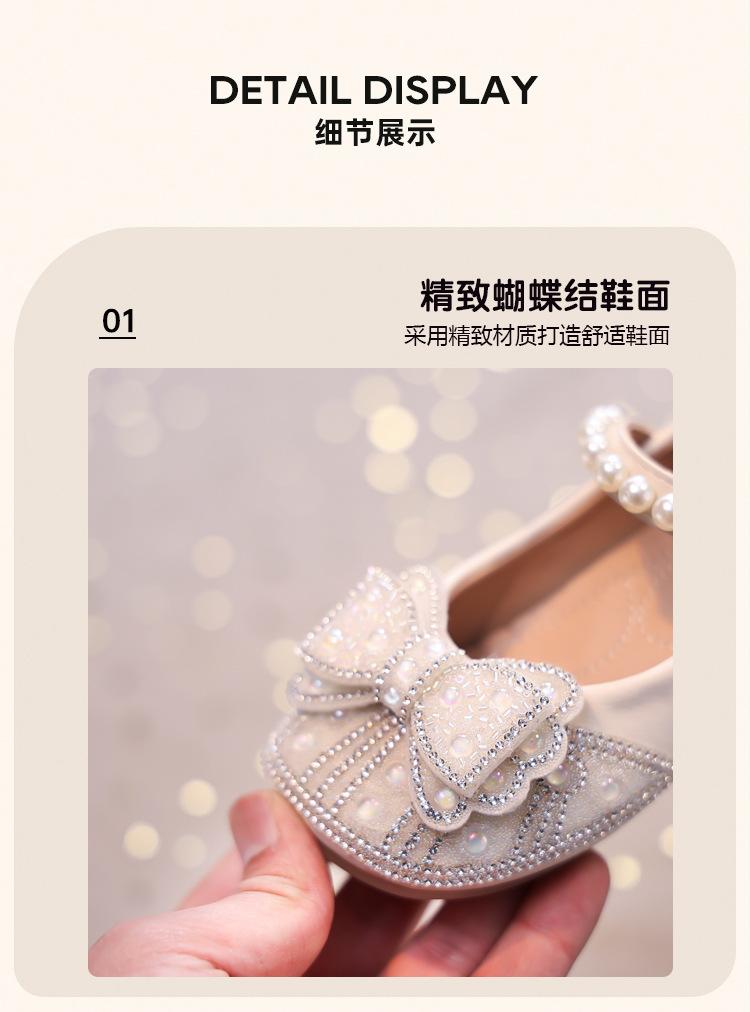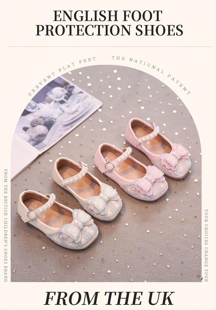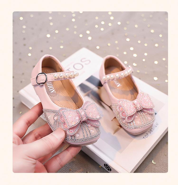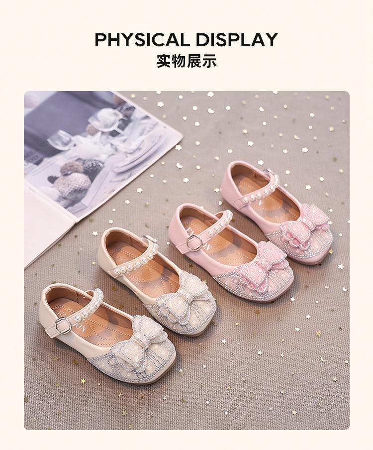Zapatos de Cuero Pequeños para Niñas Primavera y Verano 2025 Zapatos de Princesa con Lazo de Perlas de Cristal con Pedrería para Niños Zapatos de Presentación para Niñita