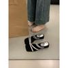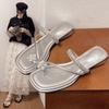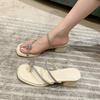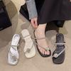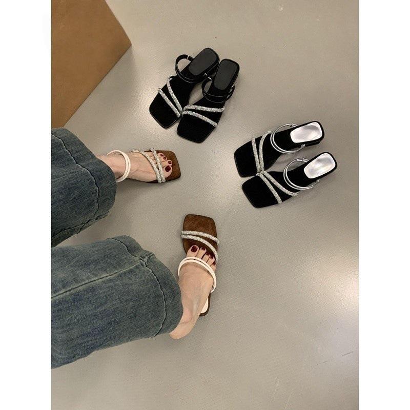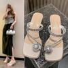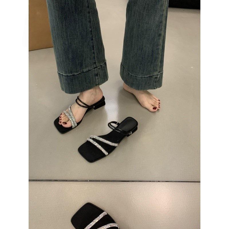 Zapatillas de pedicura de una línea con diamantes de imitación estilo francés para verano para mujer 2025 Nuevas Sandalias de tacón grueso de dos usos