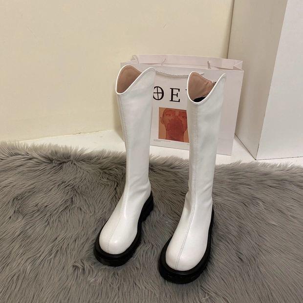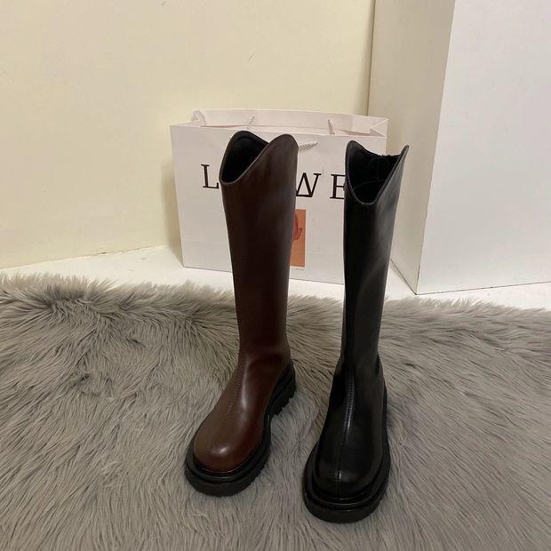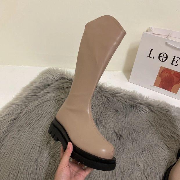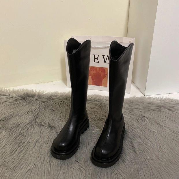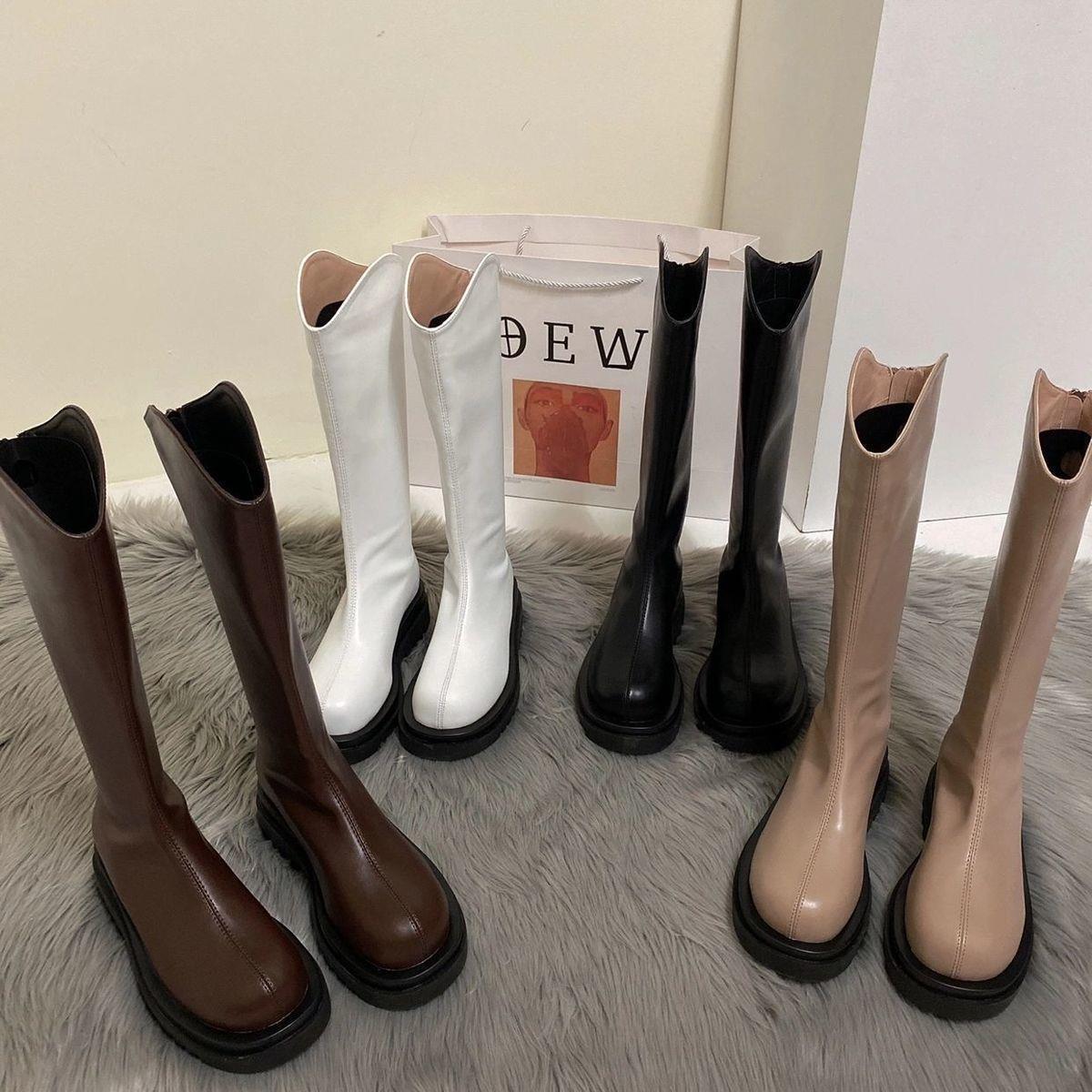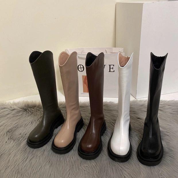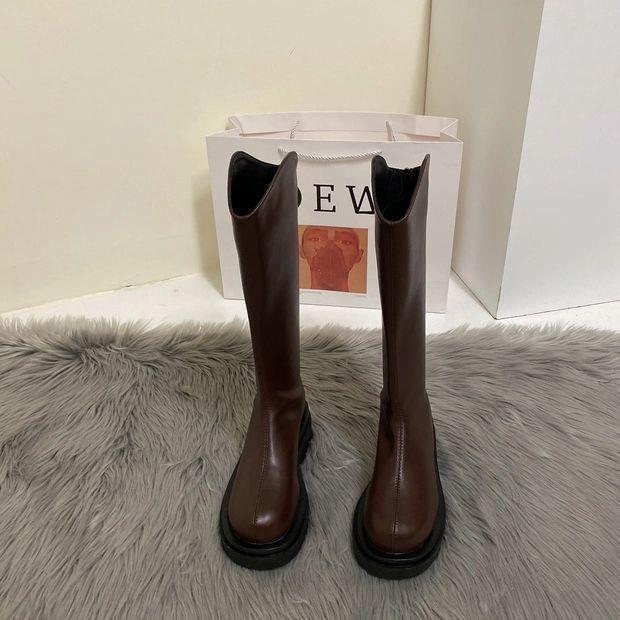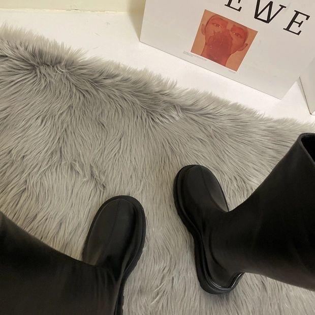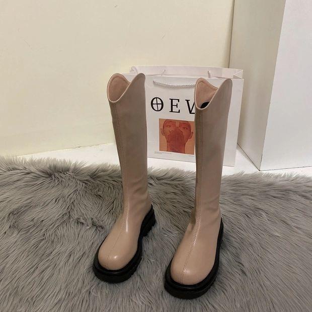 2021 Nuevas Botas Largas hasta la Rodilla con Fondo Grueso y Forro Polar para Mujer Otoño e Invierno Adelgazantes Botas de Caballero Estilo Coreano Punta Redonda Botas Altas