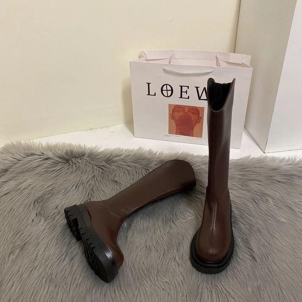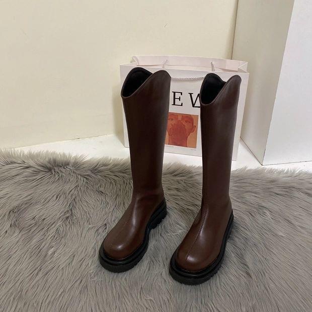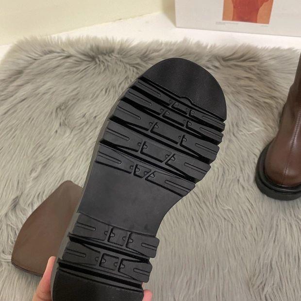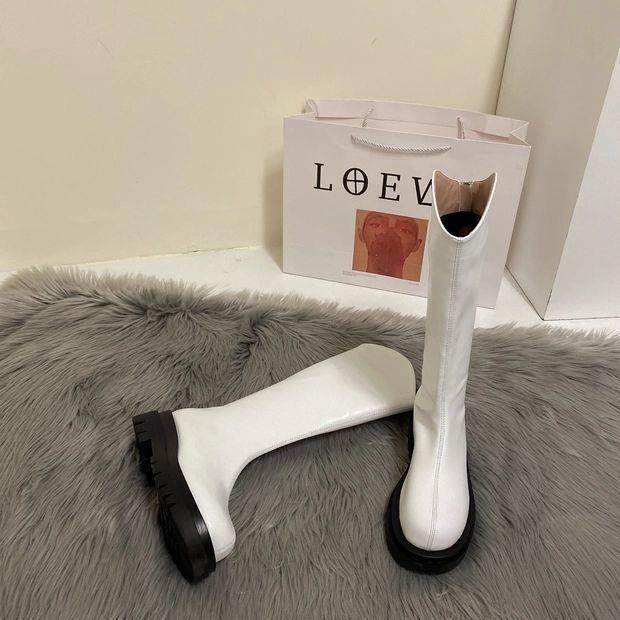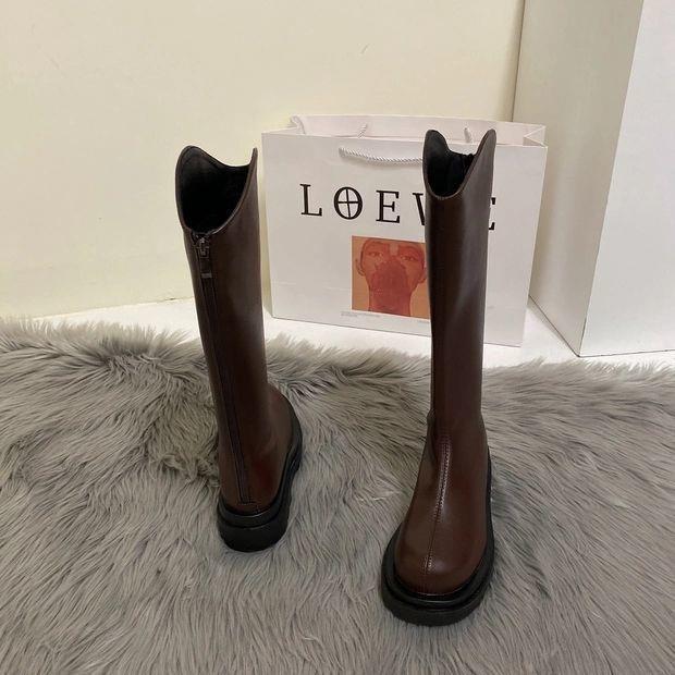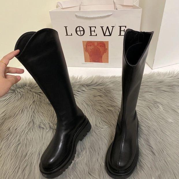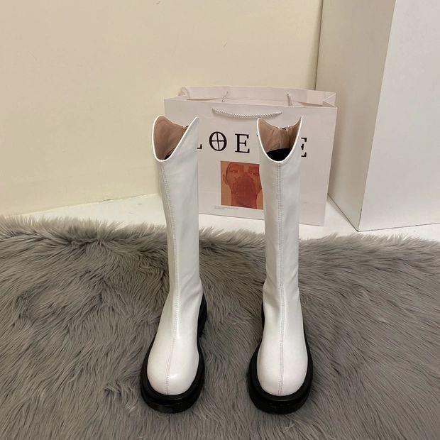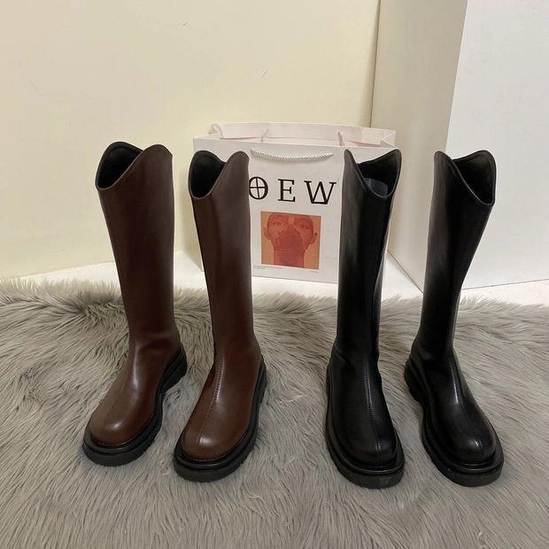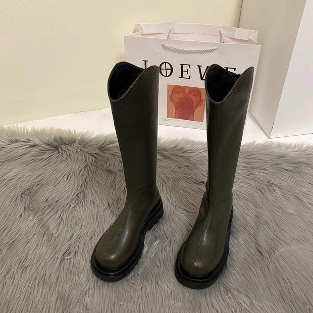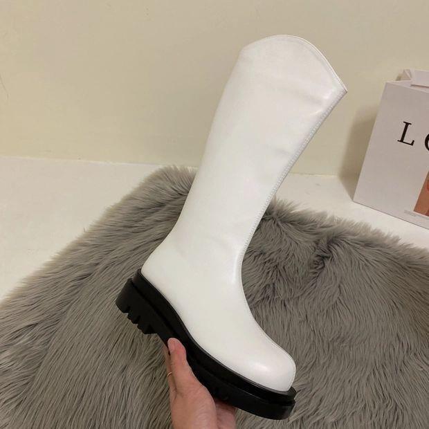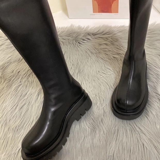 2021 Nuevas Botas Largas hasta la Rodilla con Fondo Grueso y Forro Polar para Mujer Otoño e Invierno Adelgazantes Botas de Caballero Estilo Coreano Punta Redonda Botas Altas