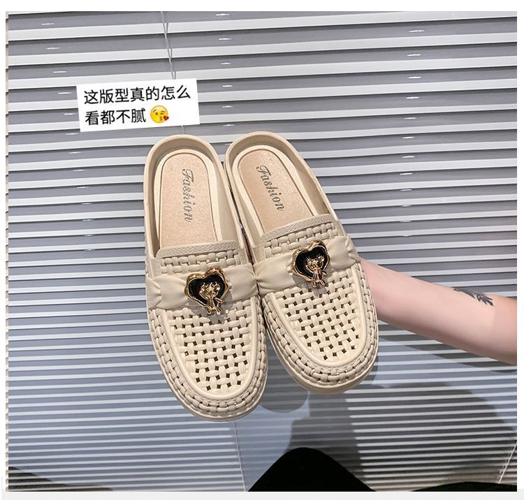 Pantuflas Casuales de Playa Antideslizantes de Suela Blanda para Uso Exterior, Sandalias de Mujer de Medio Tacón Modernas y Versátiles 2025 Verano y Otoño Nuevo Estilo