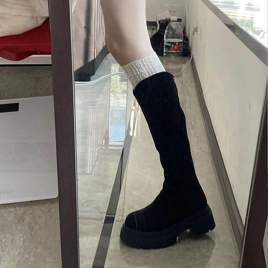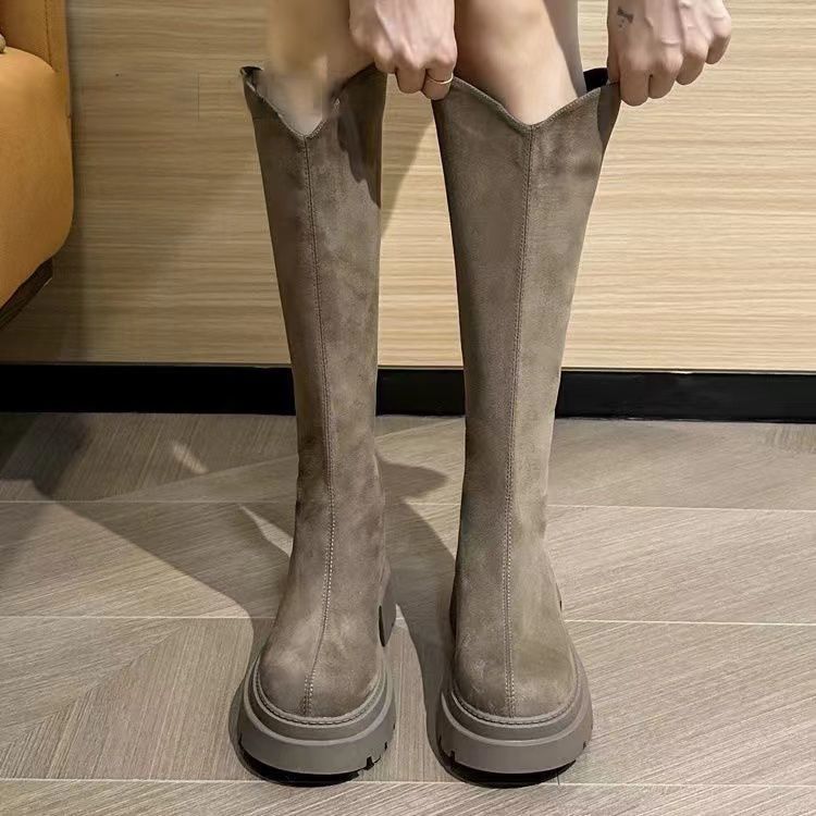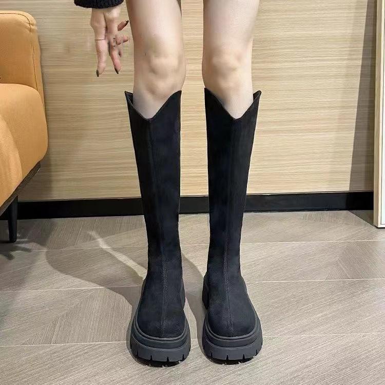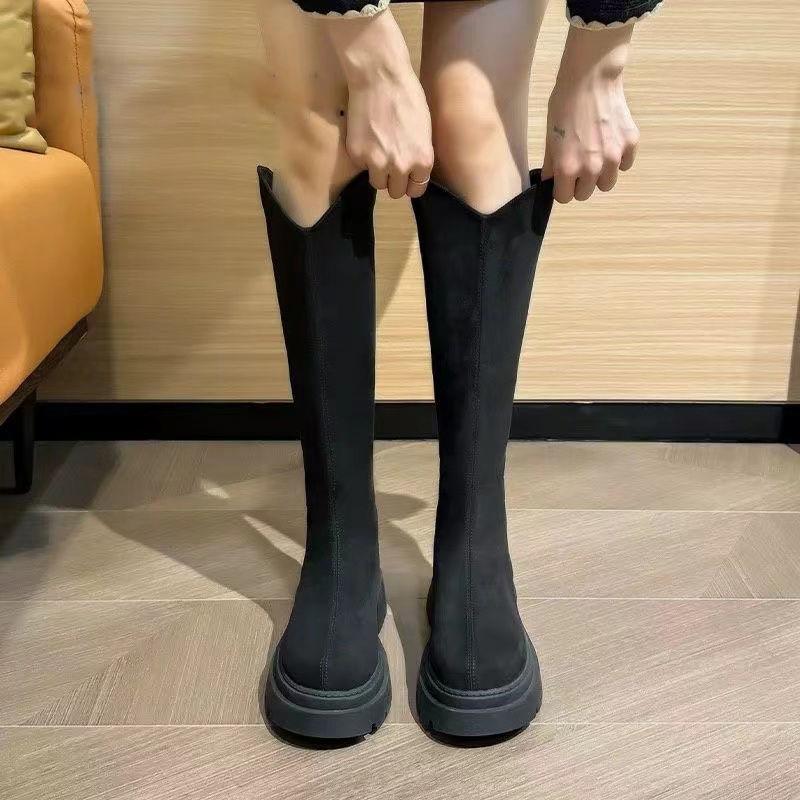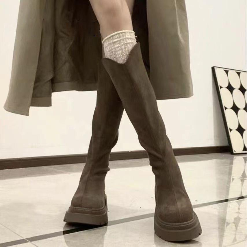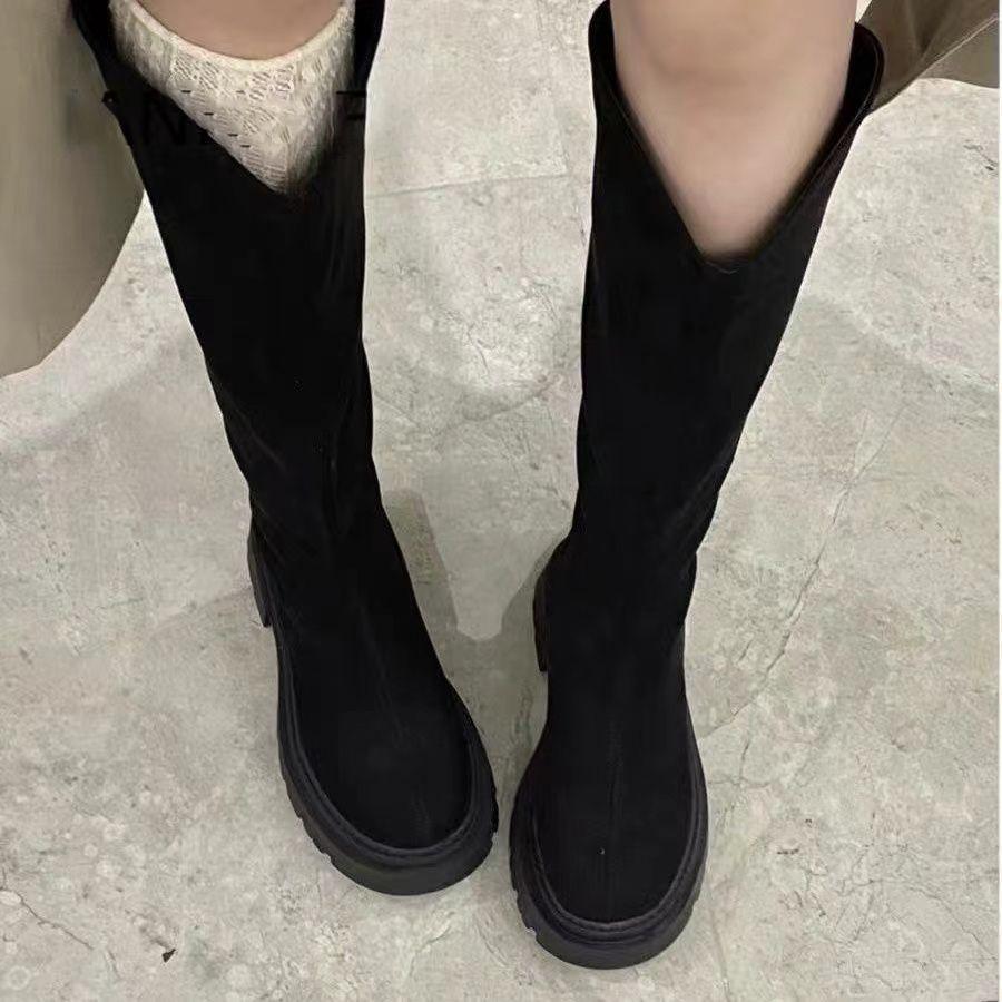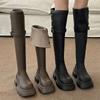 Botas largas para mujer, botas largas anchas de barril grande, botas finas, otoño e invierno 2024, nuevo estilo británico, botas de suela gruesa con mayor elasticidad.