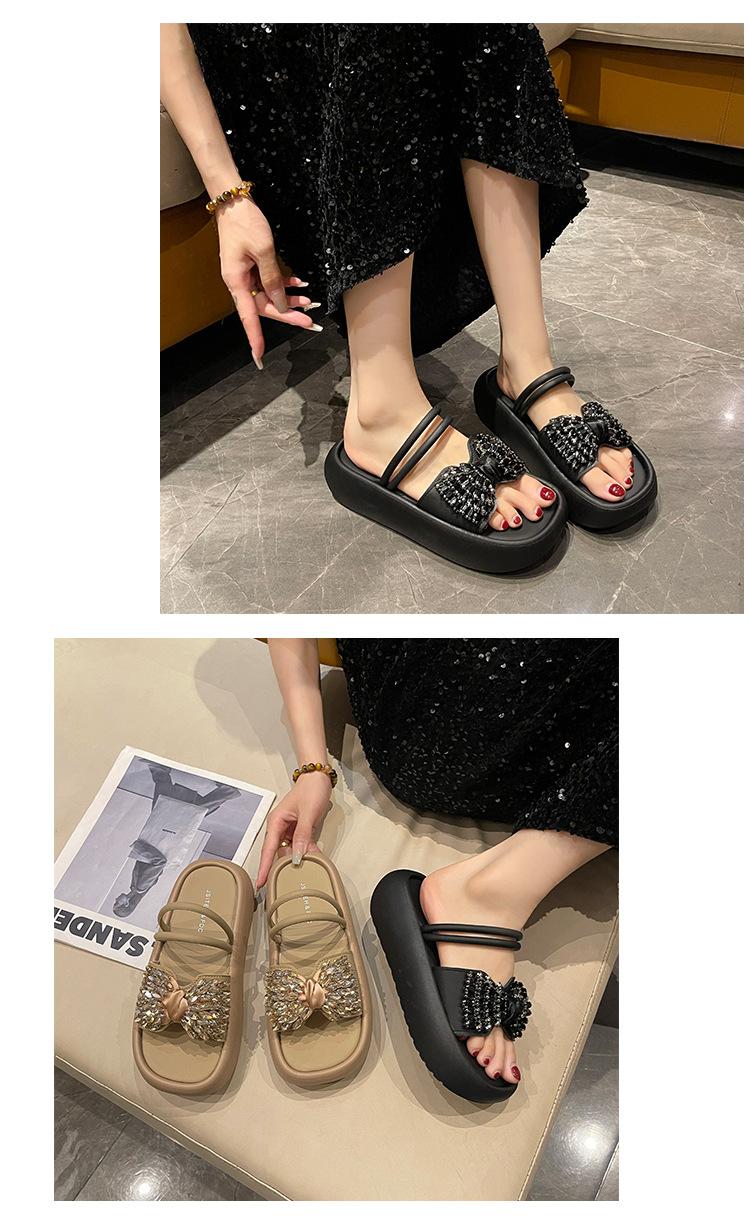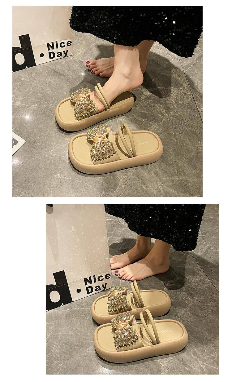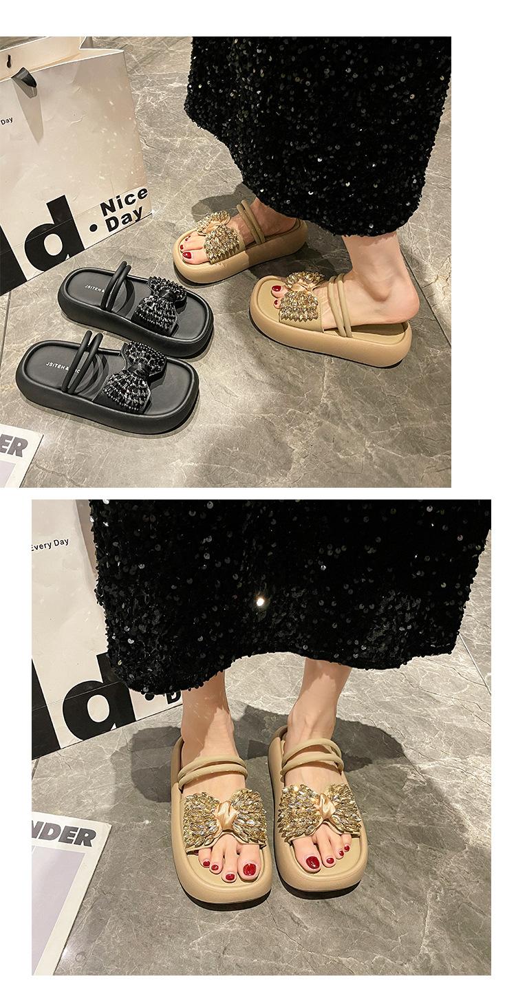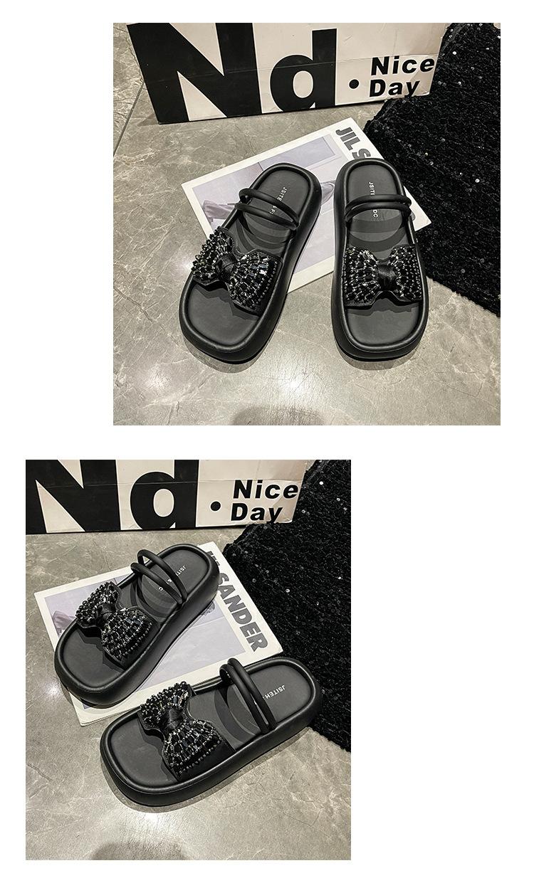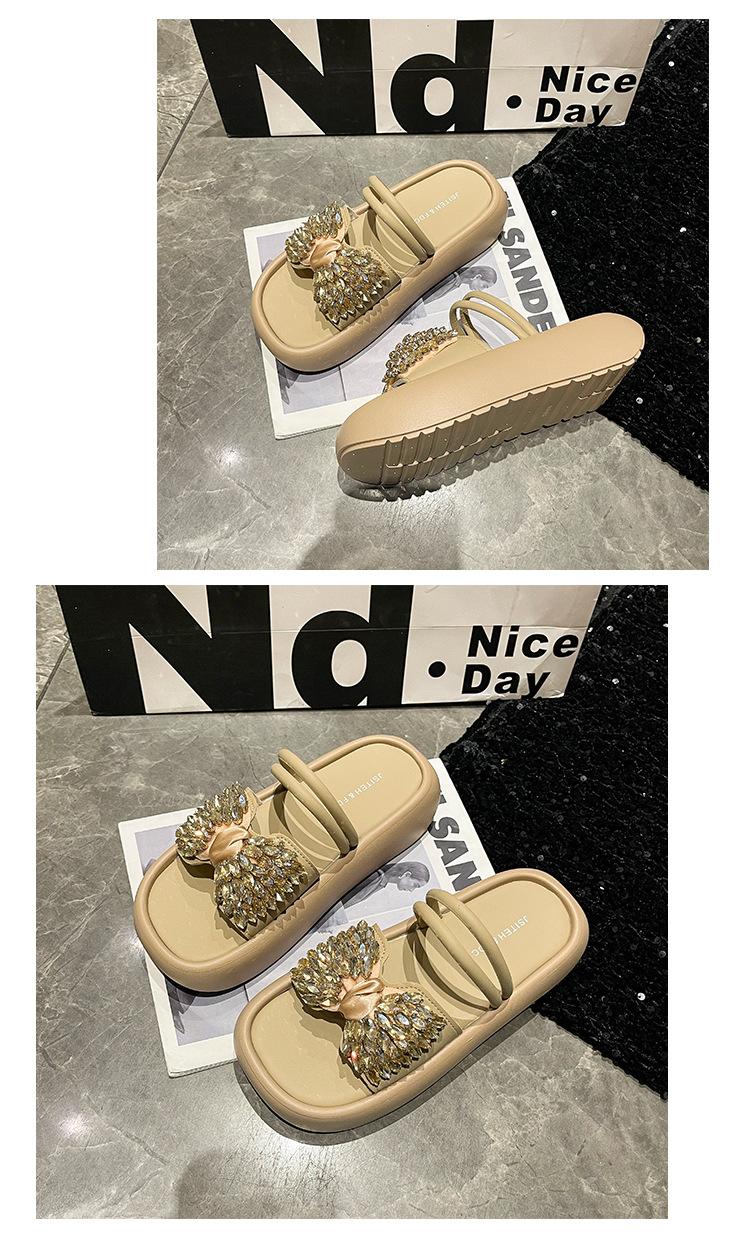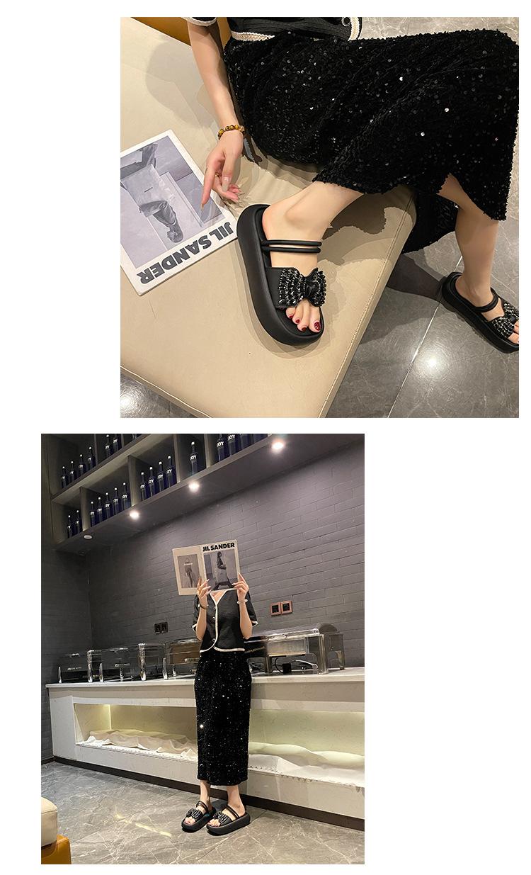 Pantuflas para Mujer para Usar Afuera Verano 2025 Nuevas Pantuflas con Lazo de Pedrería de Suela Gruesa con Falda Sandalias Antideslizantes