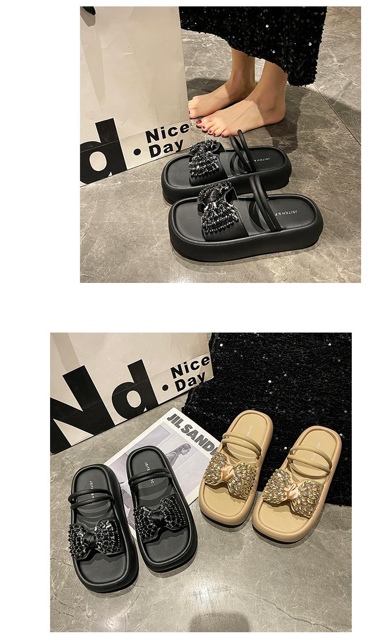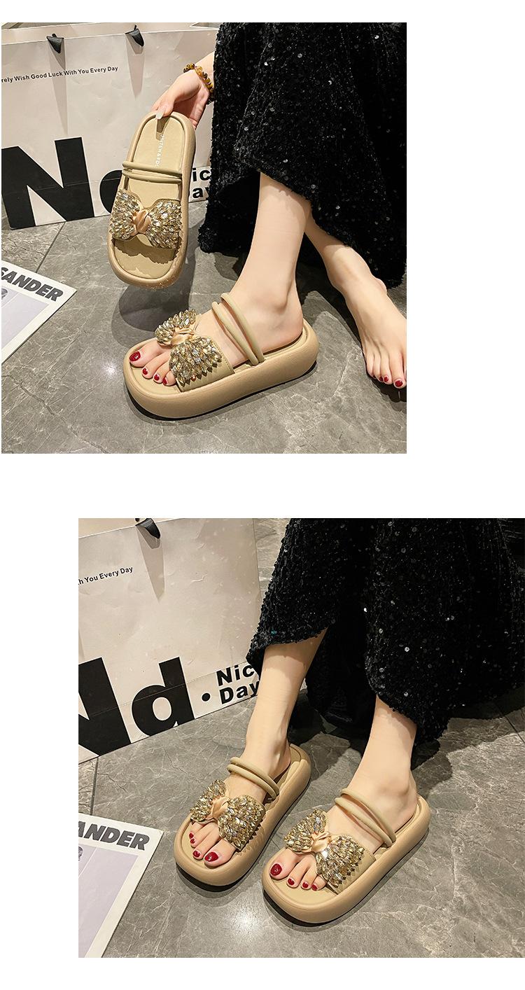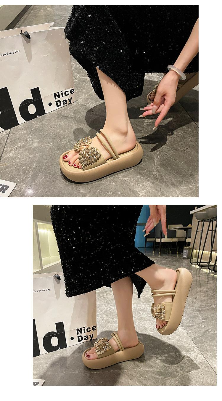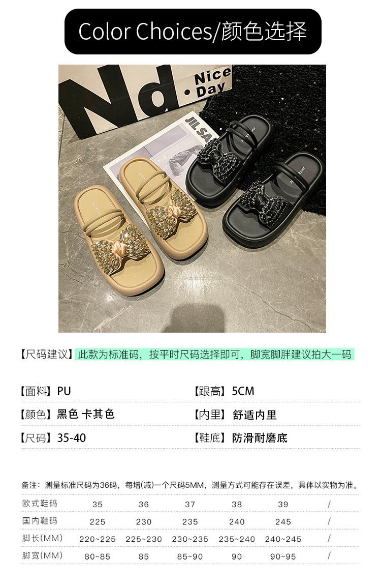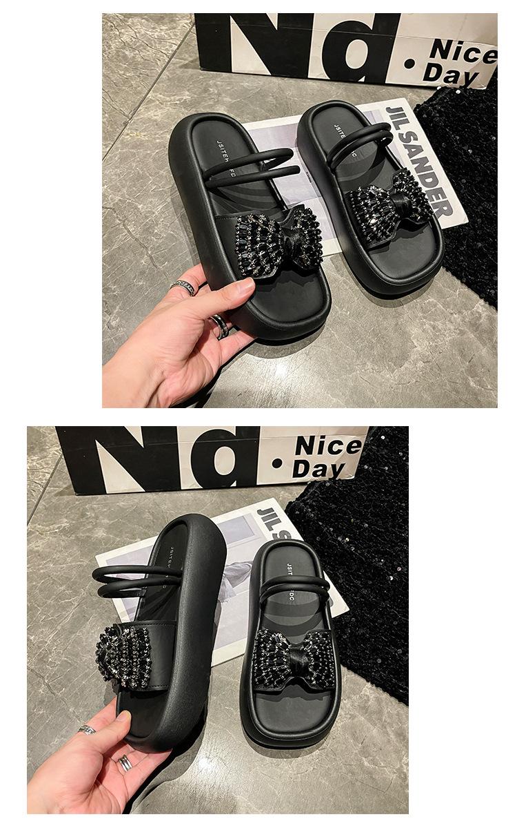 Pantuflas para Mujer para Usar Afuera Verano 2025 Nuevas Pantuflas con Lazo de Pedrería de Suela Gruesa con Falda Sandalias Antideslizantes