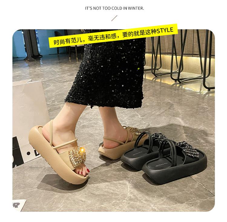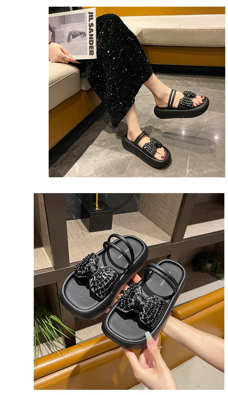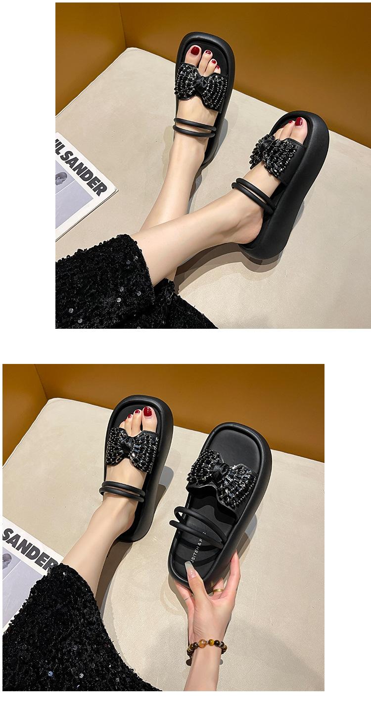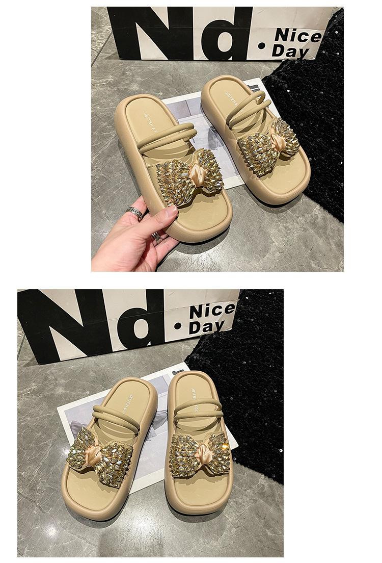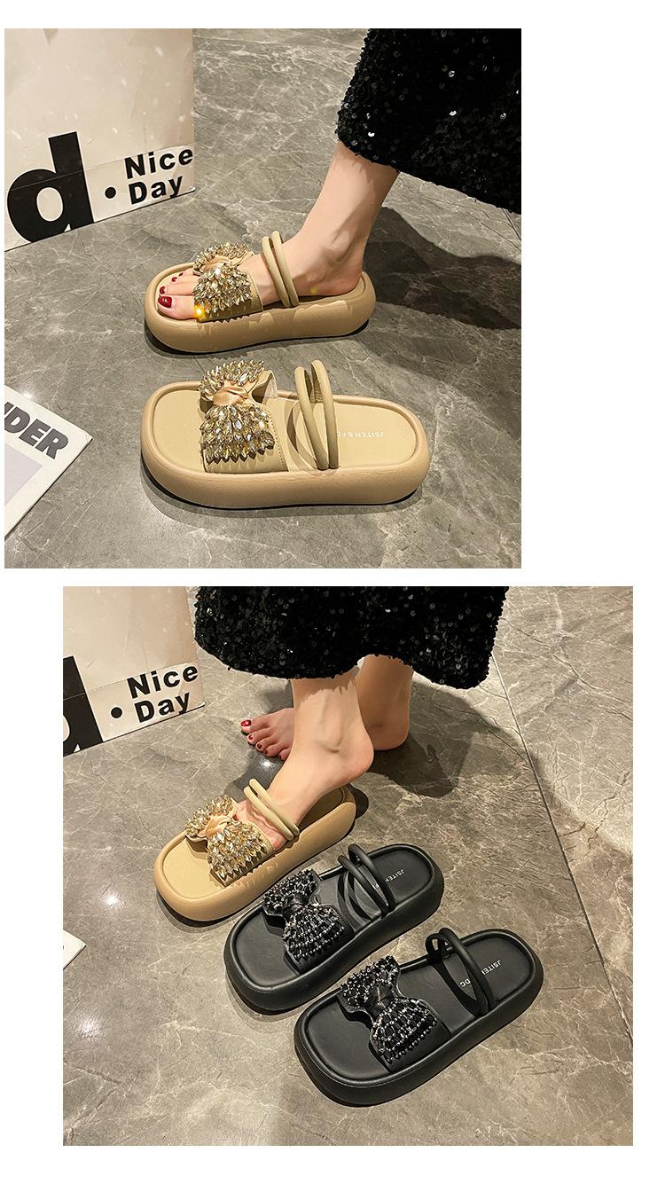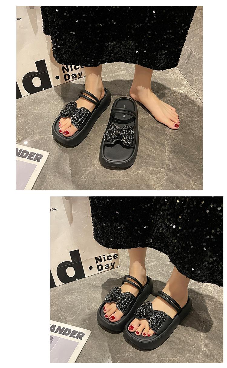 Pantuflas para Mujer para Usar Afuera Verano 2025 Nuevas Pantuflas con Lazo de Pedrería de Suela Gruesa con Falda Sandalias Antideslizantes