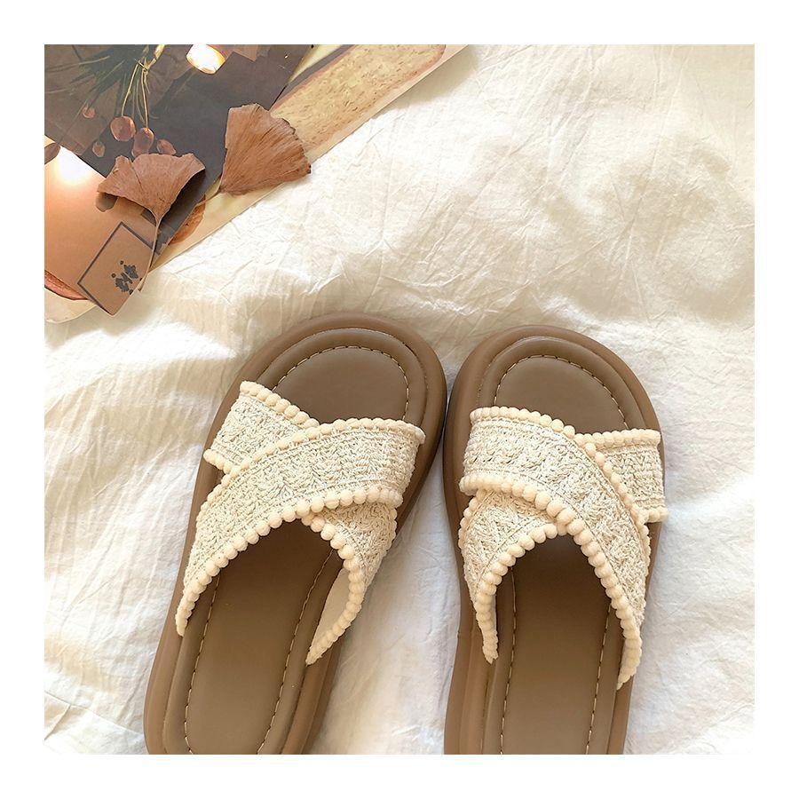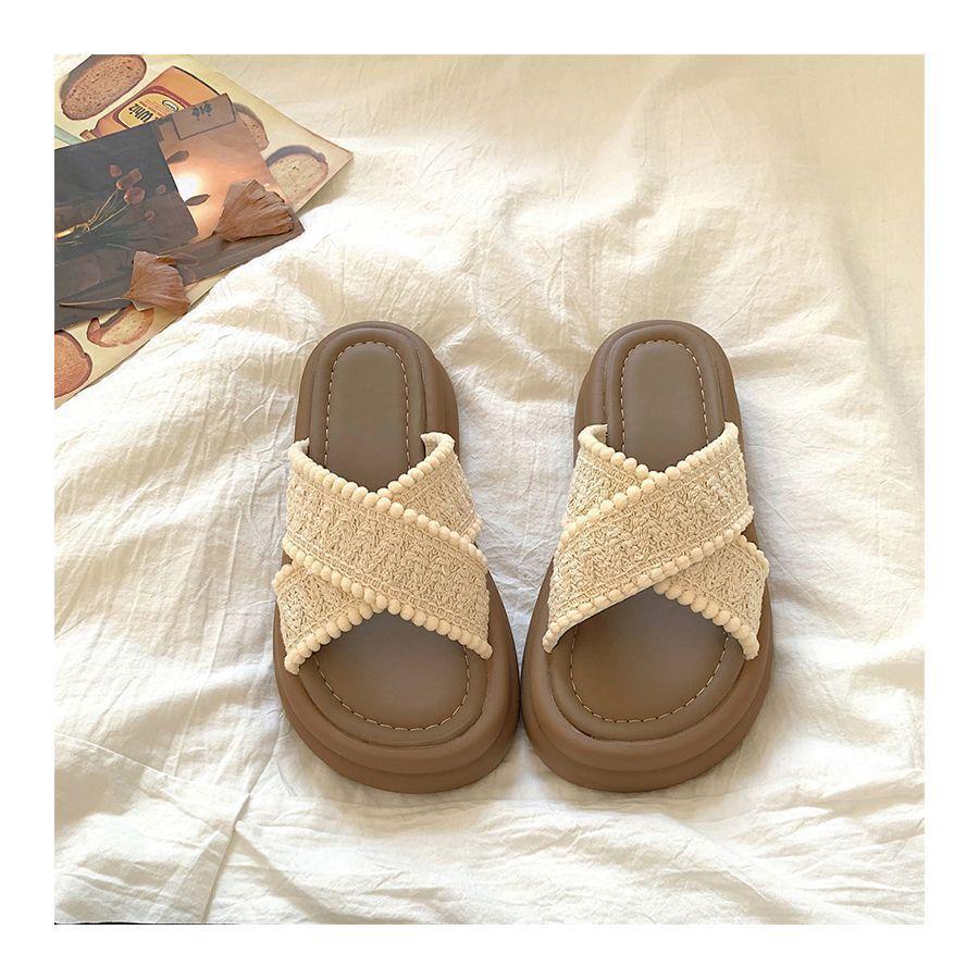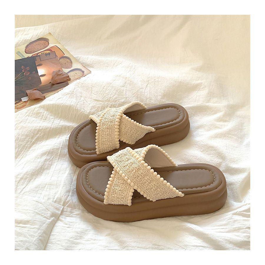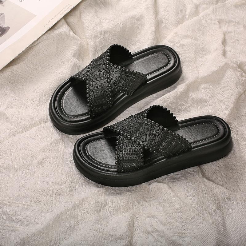 Pantuflas Bohemianas de Suela Gruesa para Exterior de Mujer 2025 Nuevo Verano Ins Antideslizantes Sandalias de Una Línea Sandalias de Playa