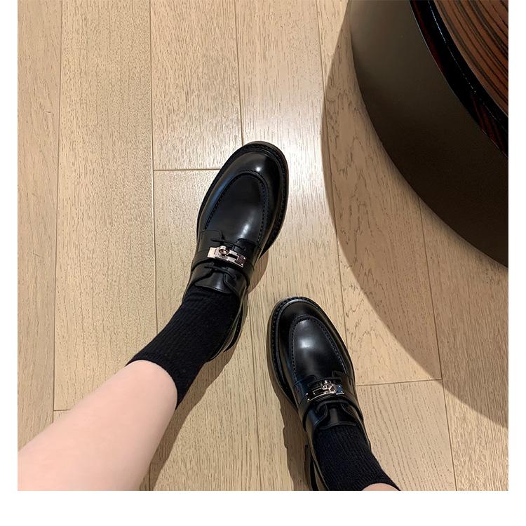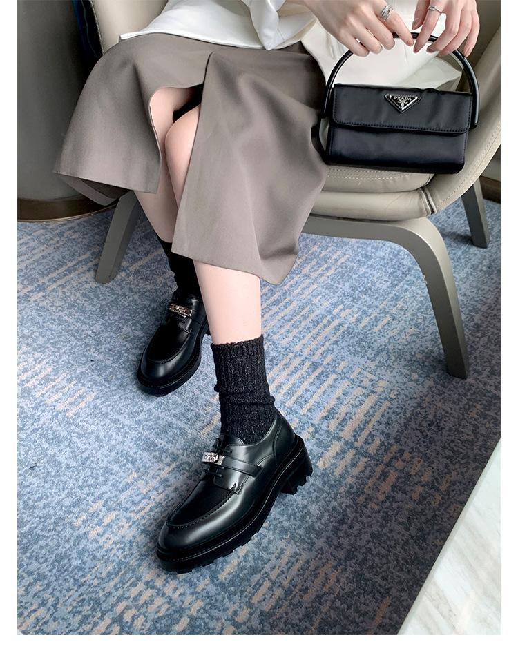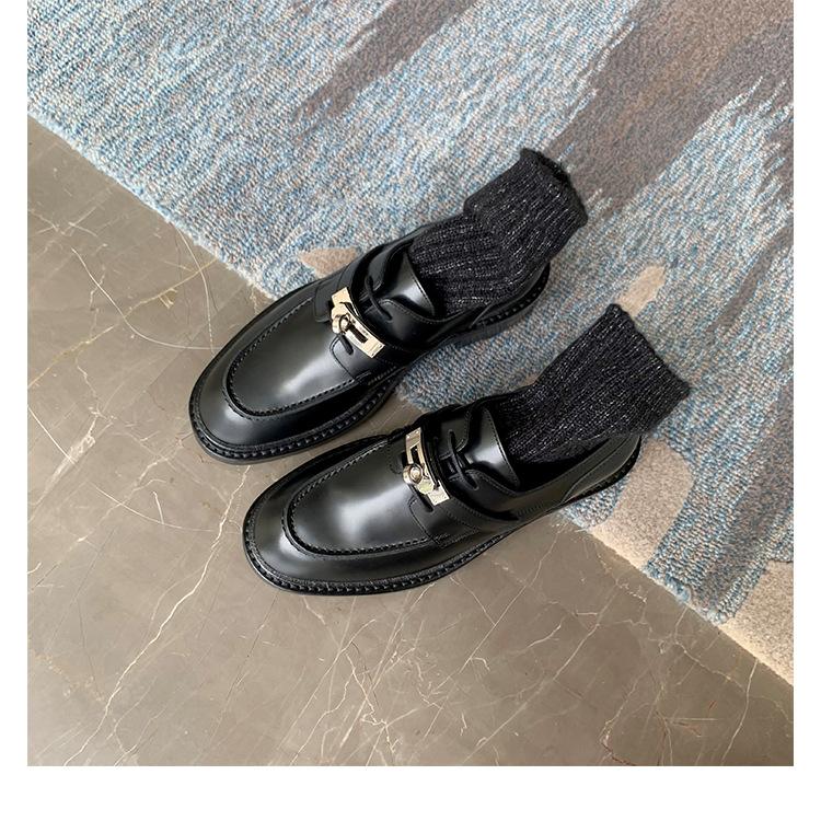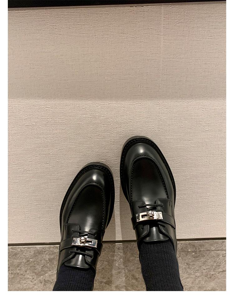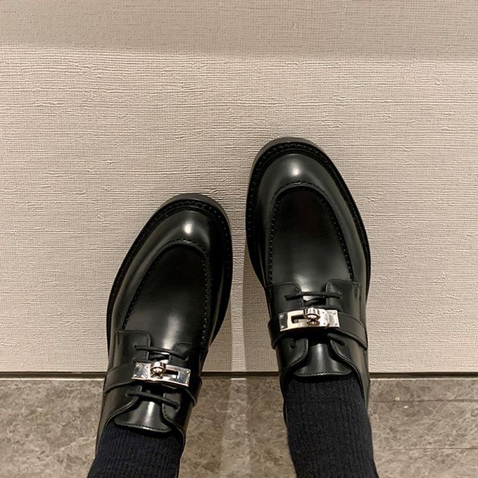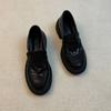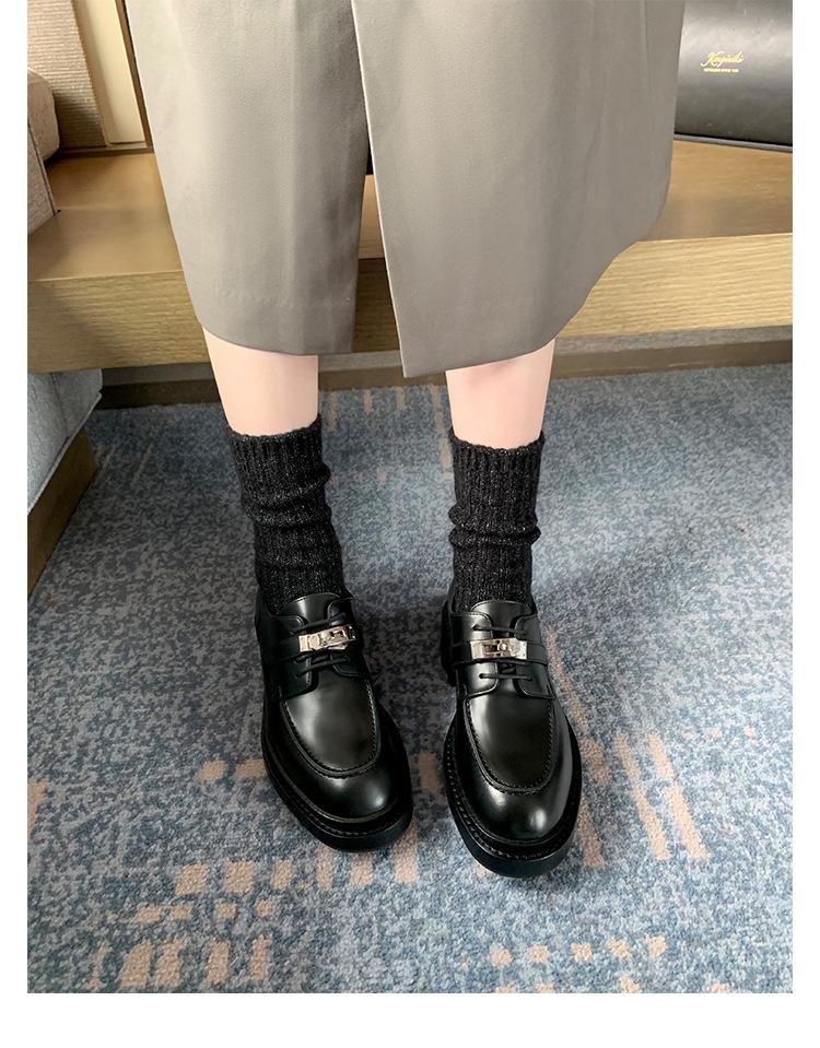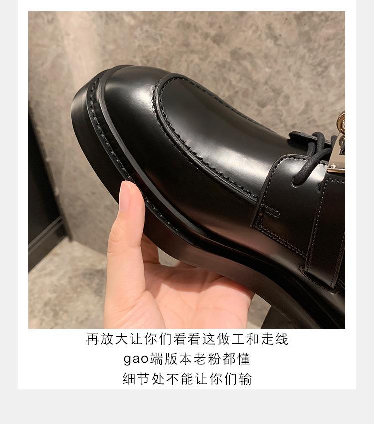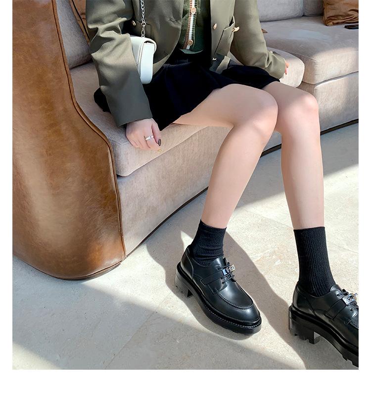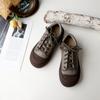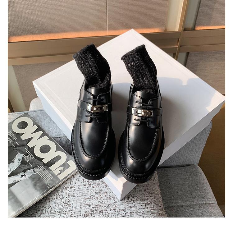 Piel de Vaca Genuina ~ Mocasines Retro con Cierre de Cuero de Suela Gruesa para Mujer con Cordones y Tacón Grueso Zapatos de Cuero Británicos