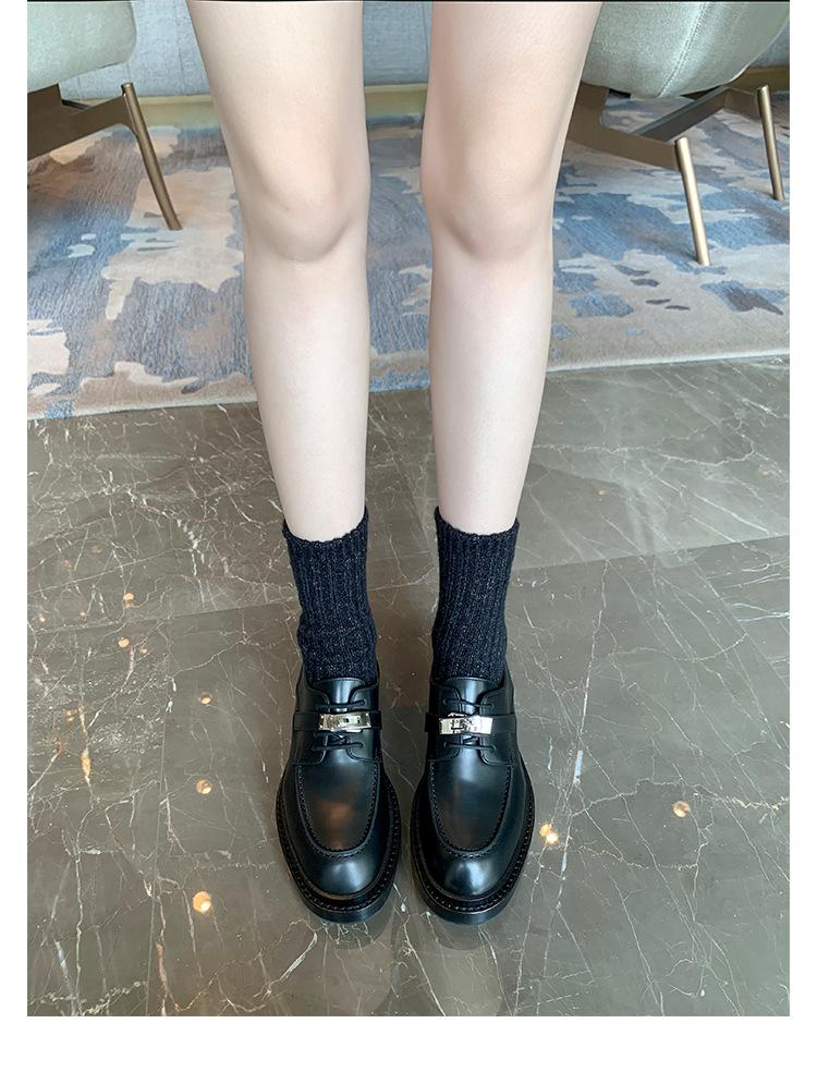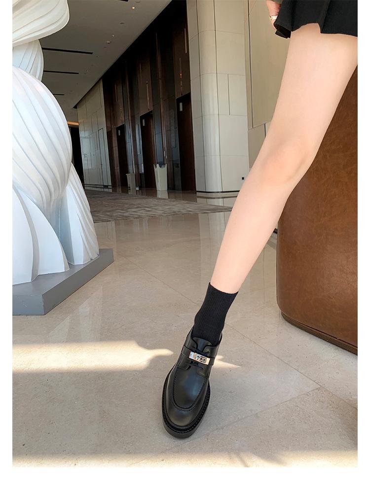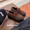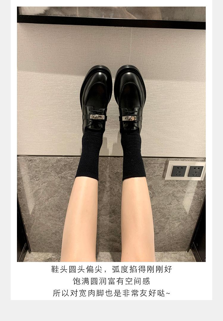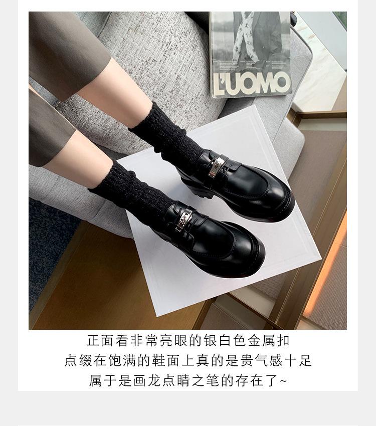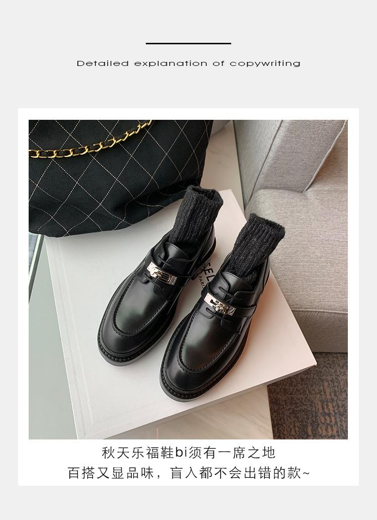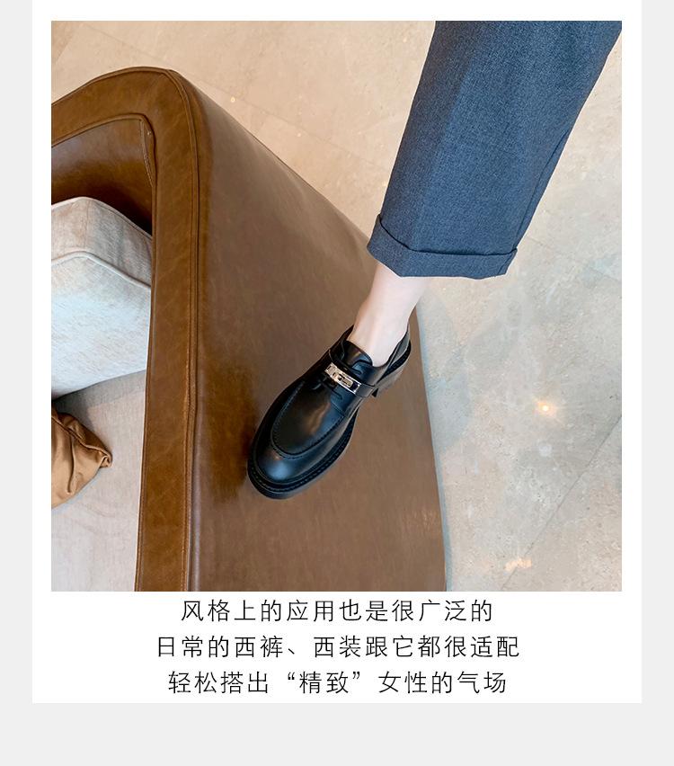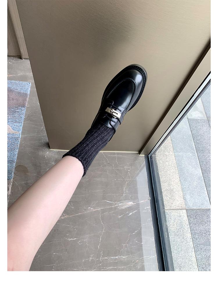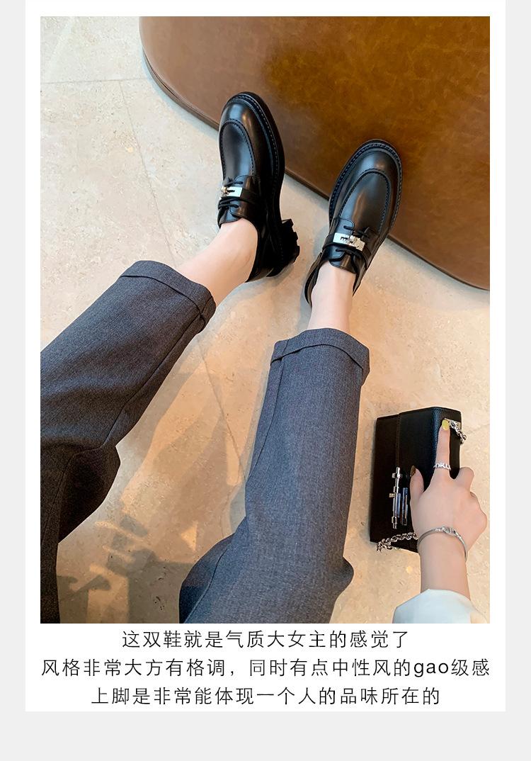 Piel de Vaca Genuina ~ Mocasines Retro con Cierre de Cuero de Suela Gruesa para Mujer con Cordones y Tacón Grueso Zapatos de Cuero Británicos