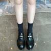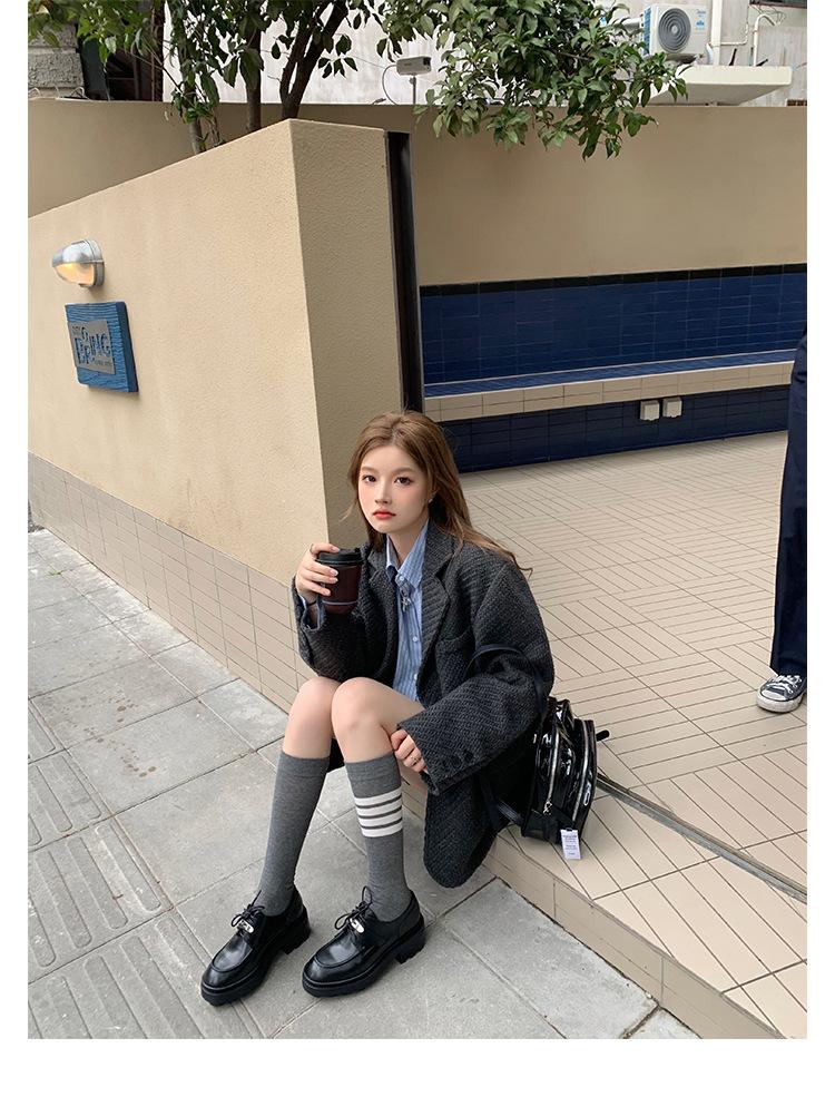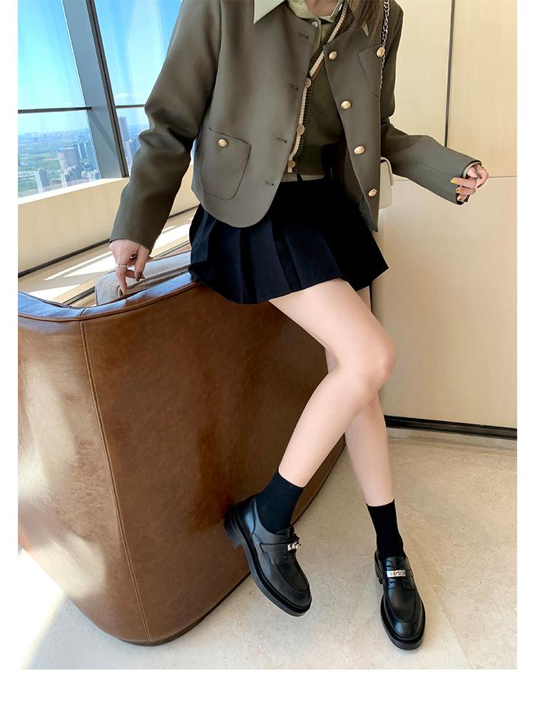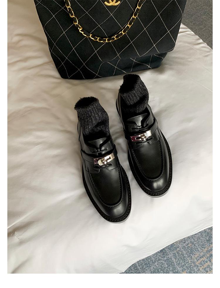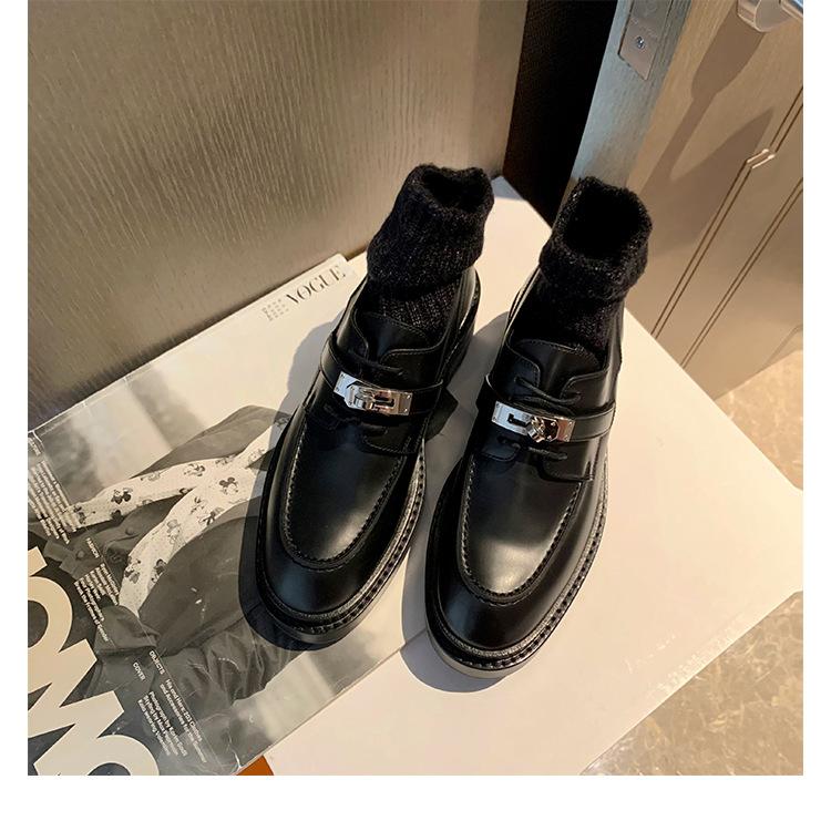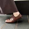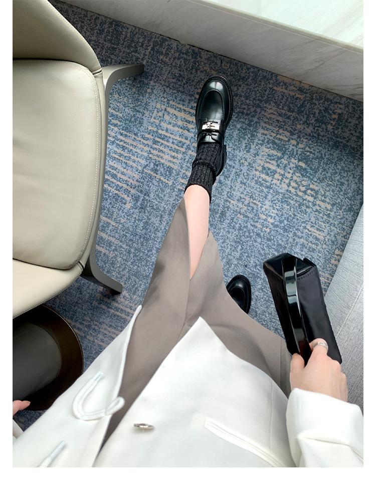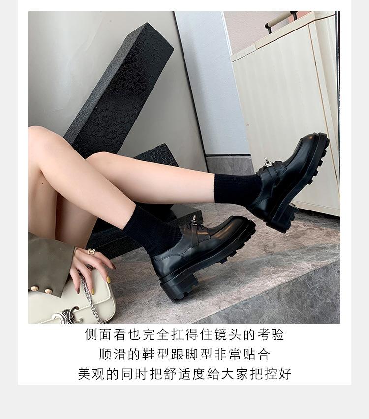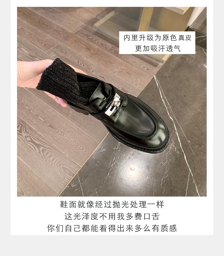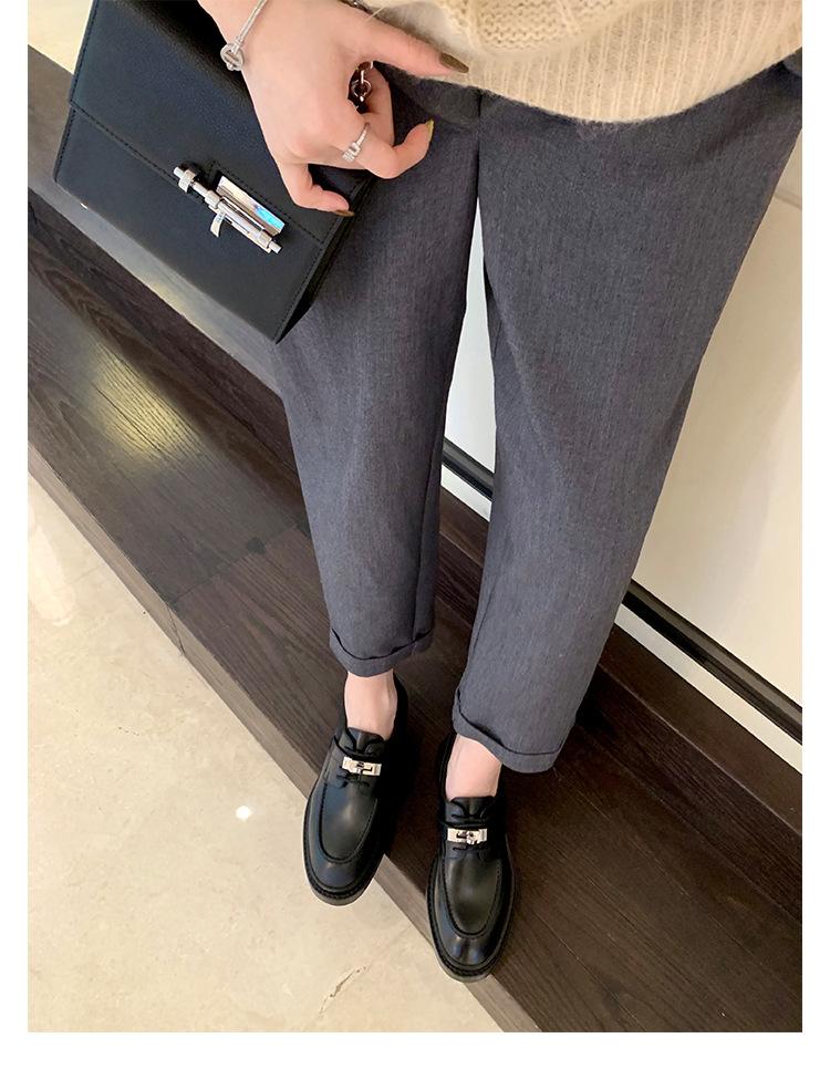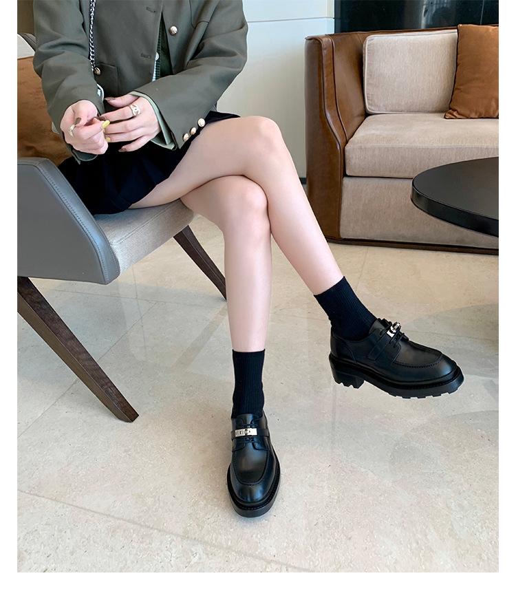 Piel de Vaca Genuina ~ Mocasines Retro con Cierre de Cuero de Suela Gruesa para Mujer con Cordones y Tacón Grueso Zapatos de Cuero Británicos