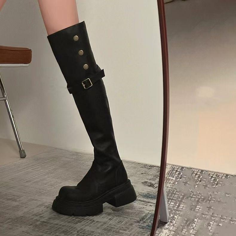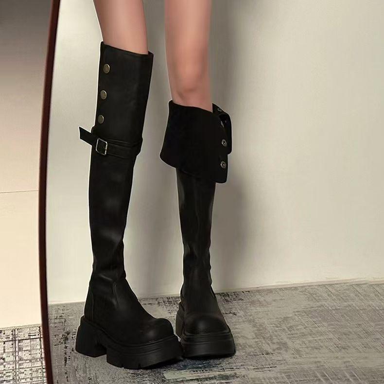 Botas altas de caballero pequeñas, otoño e invierno 2024, nuevas botas de suela gruesa bidireccionales hasta la rodilla, botas plegables con forro polar para mujer.