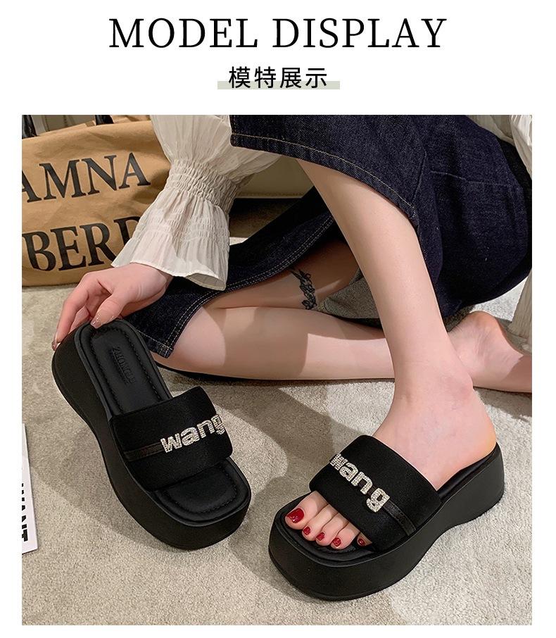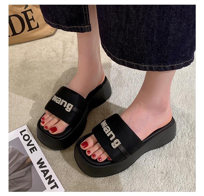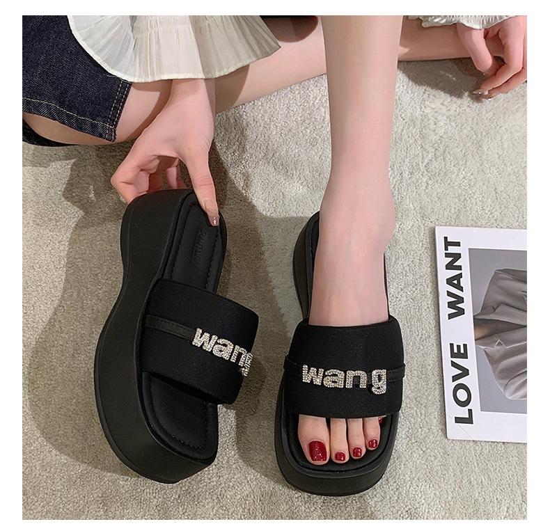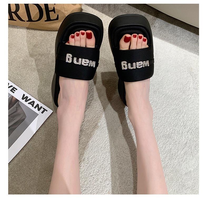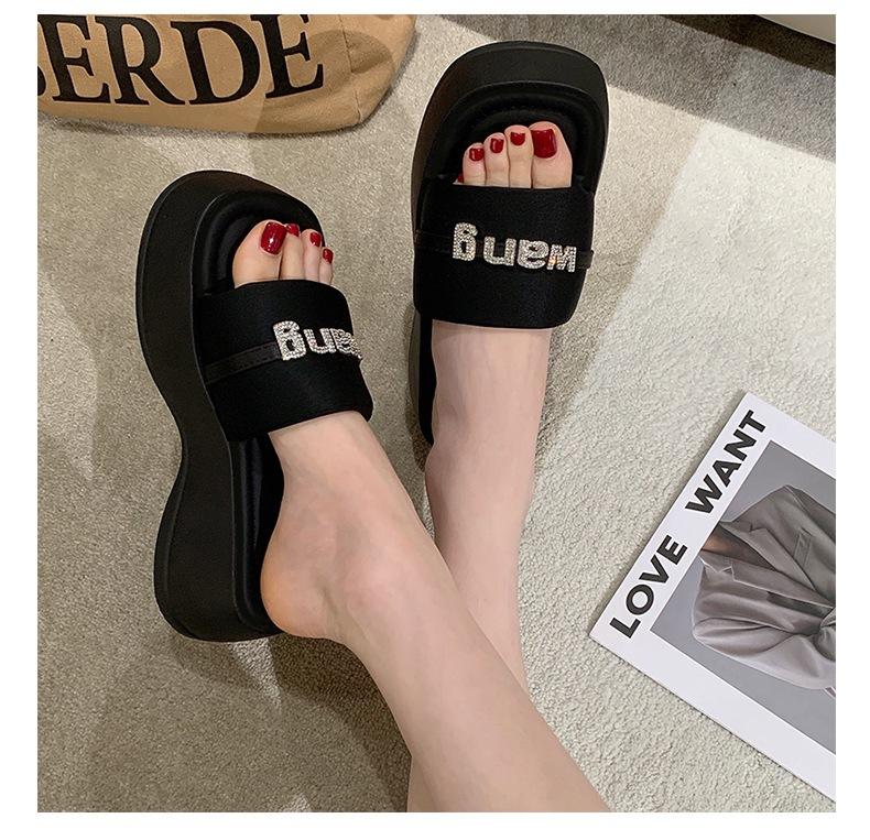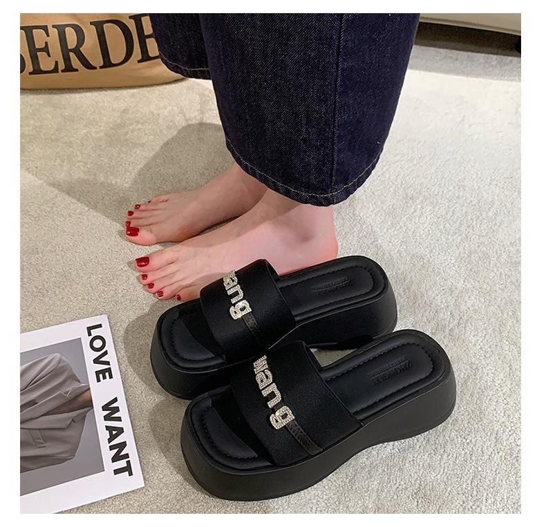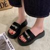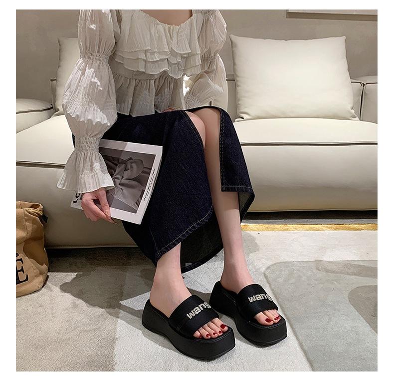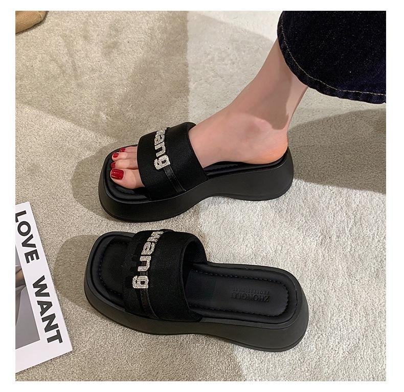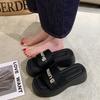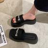 Sandalias de Moda Retro de Una Línea Antideslizantes 2025 Nuevo Verano Suela Gruesa para Mujer Ropa Exterior Verano Versátiles Pantuflas Negras