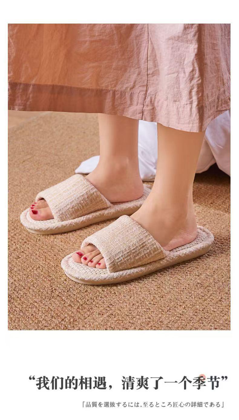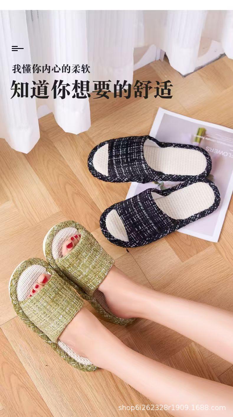 Pantuflas para Mujer Primavera y Otoño Lino Interior Algodón y Lino Hogar Hogar Cuatro Estaciones Pareja Tela Trapeadores de Piso para Hombre Verano Antideslizantes