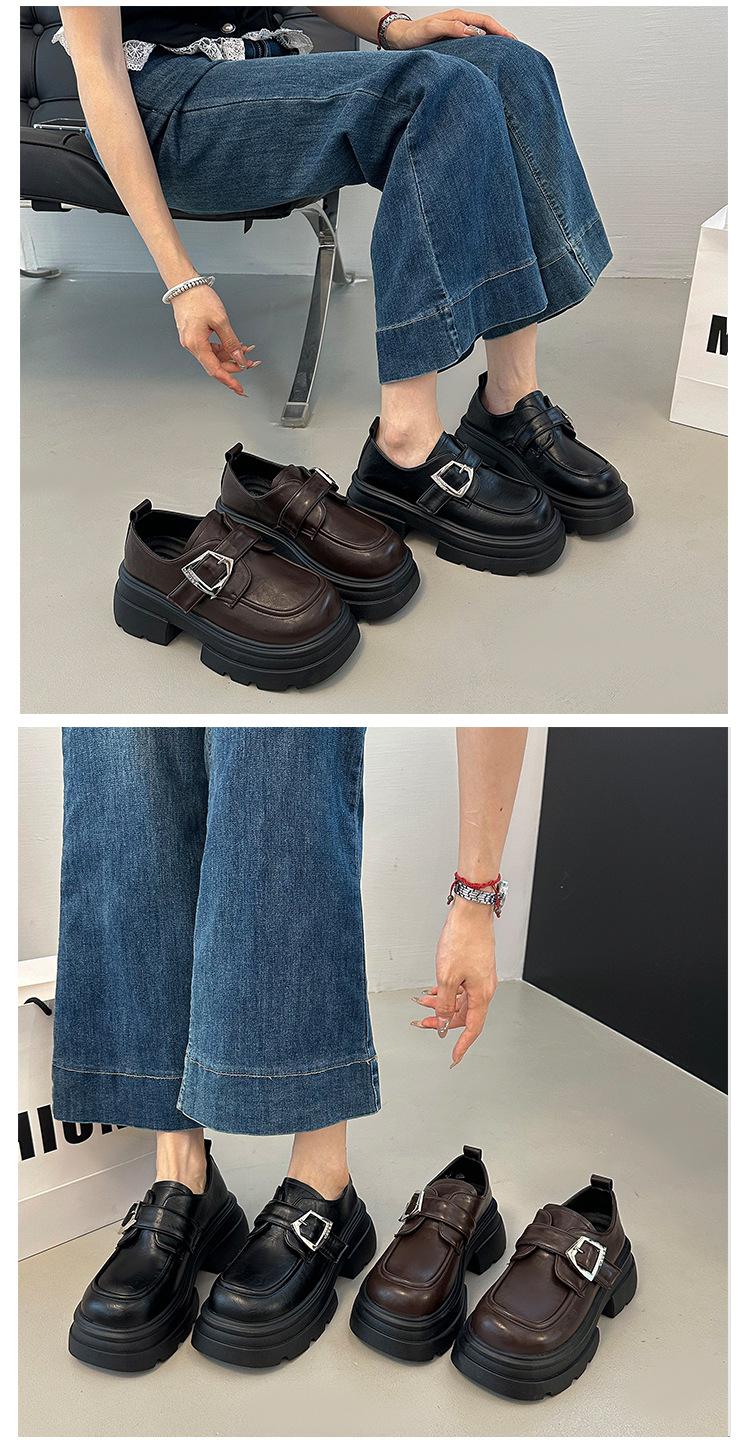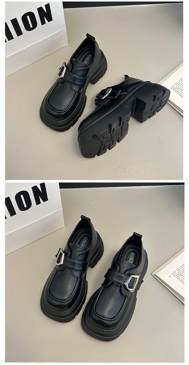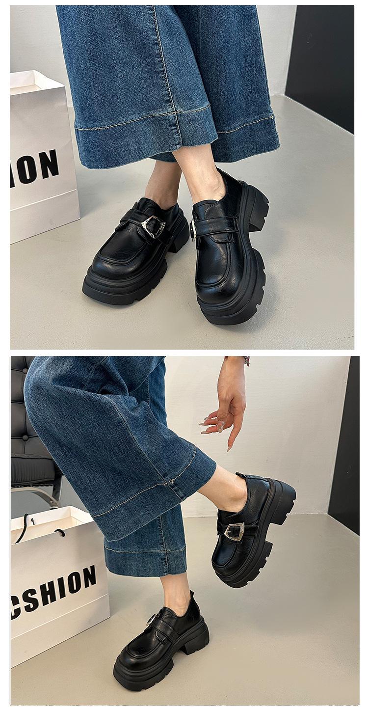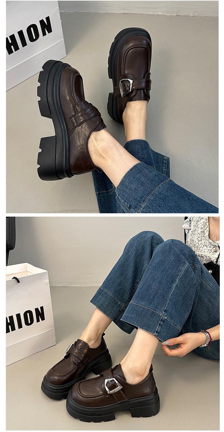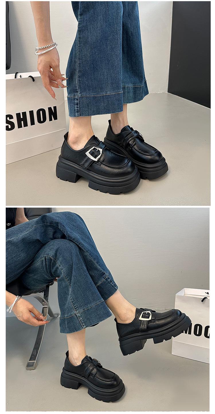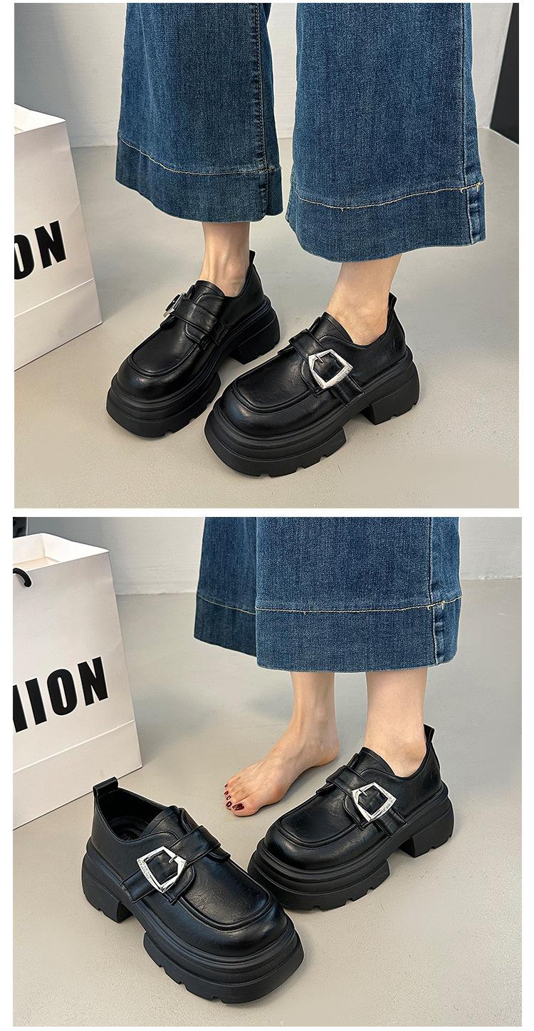 Mocasines de Cuero Sintético para Mujer 2025 Primavera Nuevos Estilo Británico Suela Gruesa Aumento de Altura Zapatos de Cuero Pequeños Negros Zapatos de Cuero Casuales