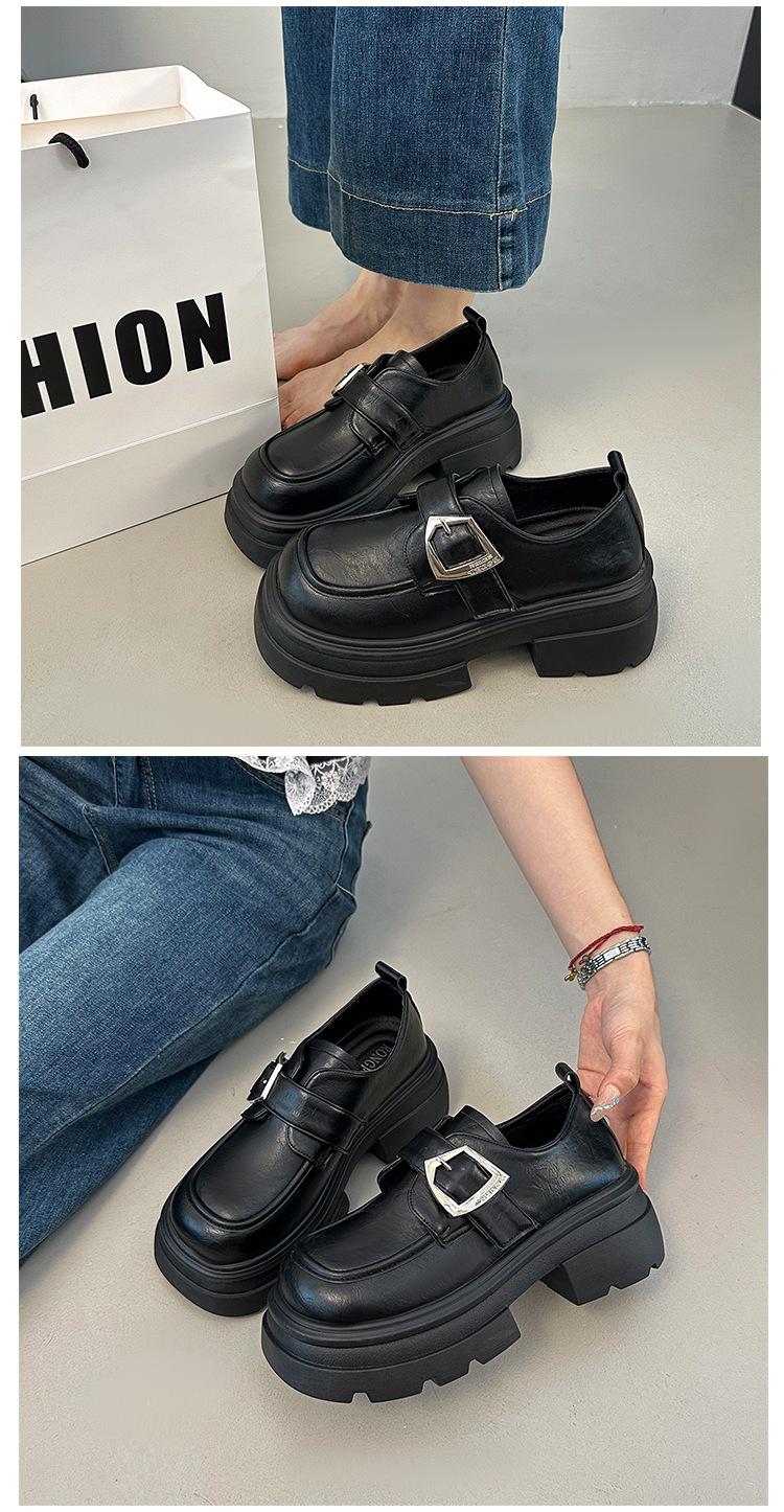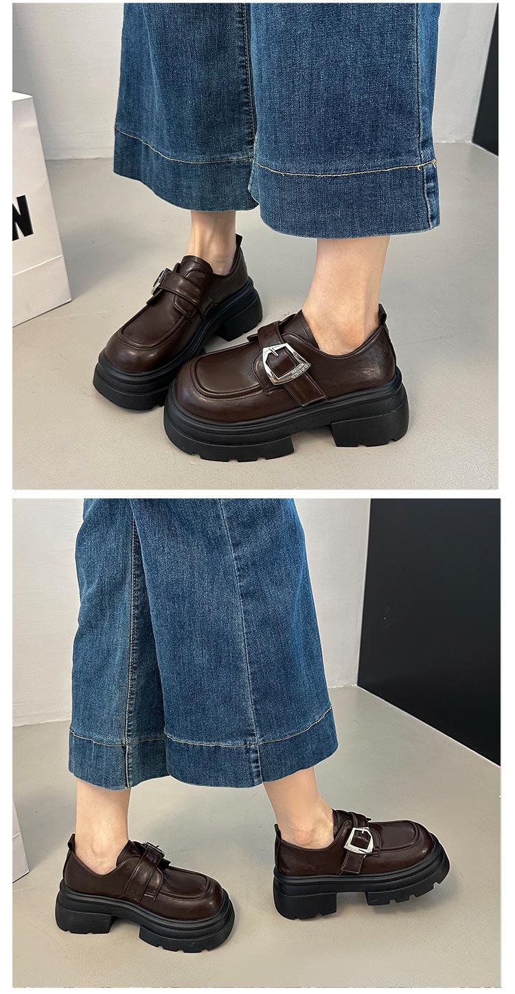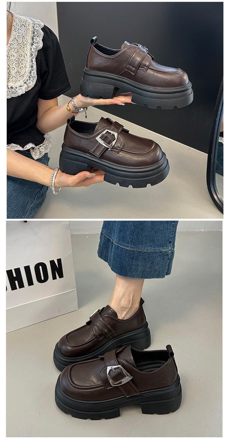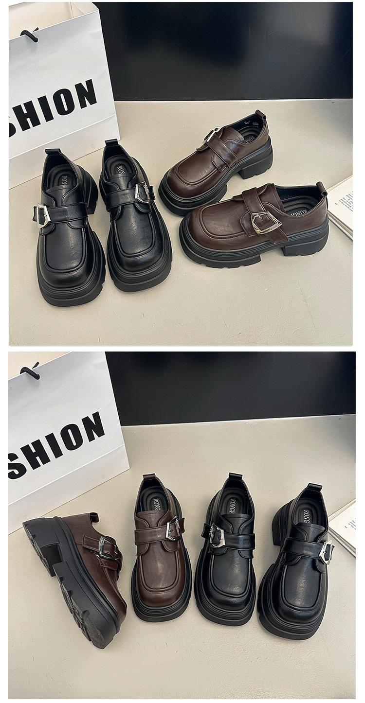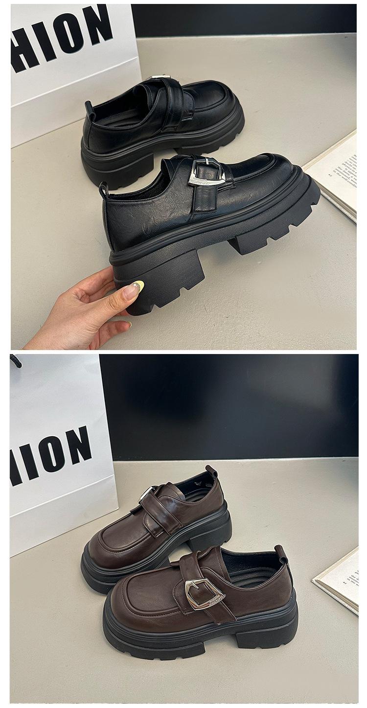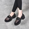 Mocasines de Cuero Sintético para Mujer 2025 Primavera Nuevos Estilo Británico Suela Gruesa Aumento de Altura Zapatos de Cuero Pequeños Negros Zapatos de Cuero Casuales