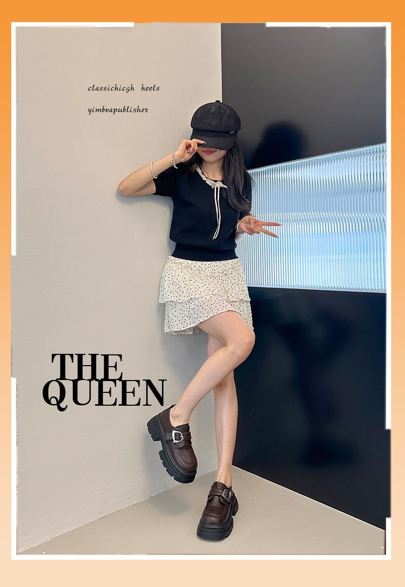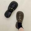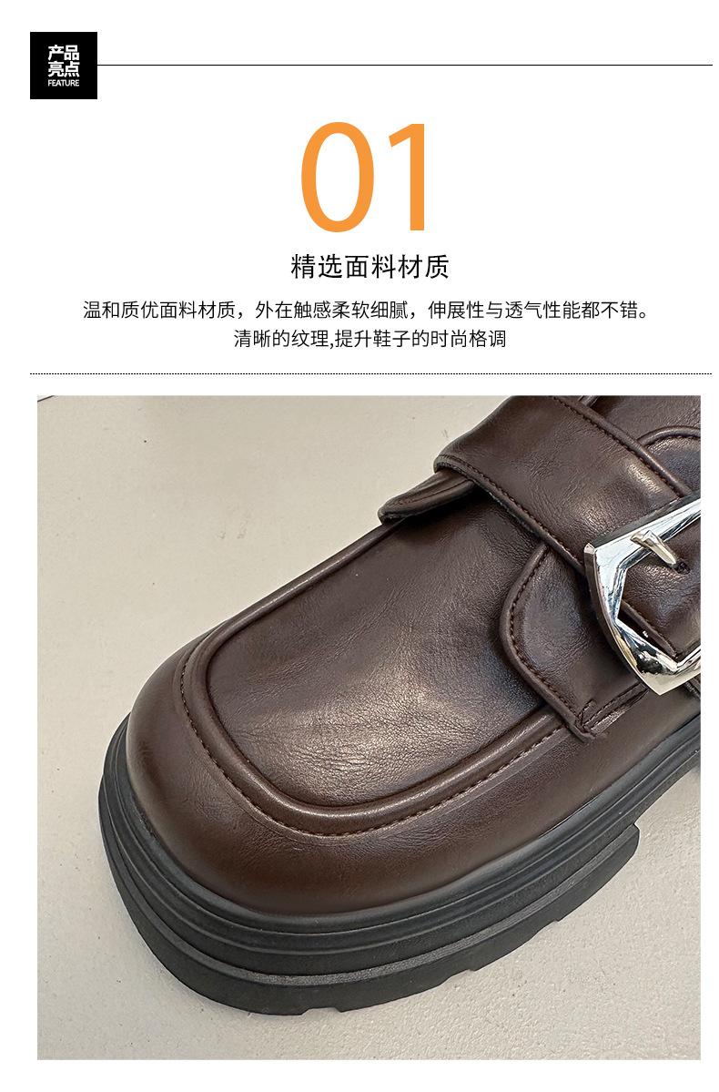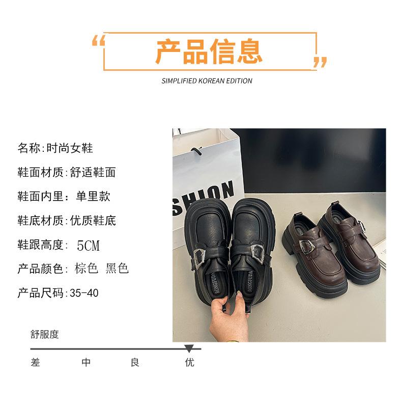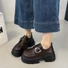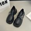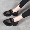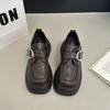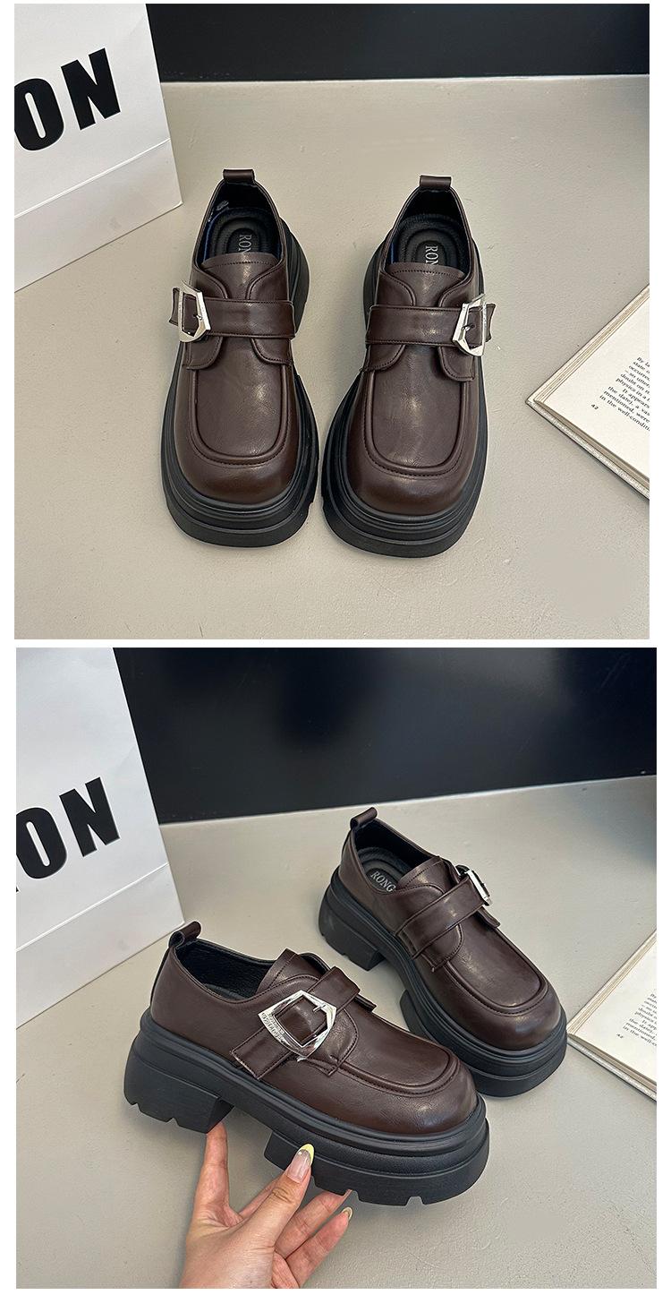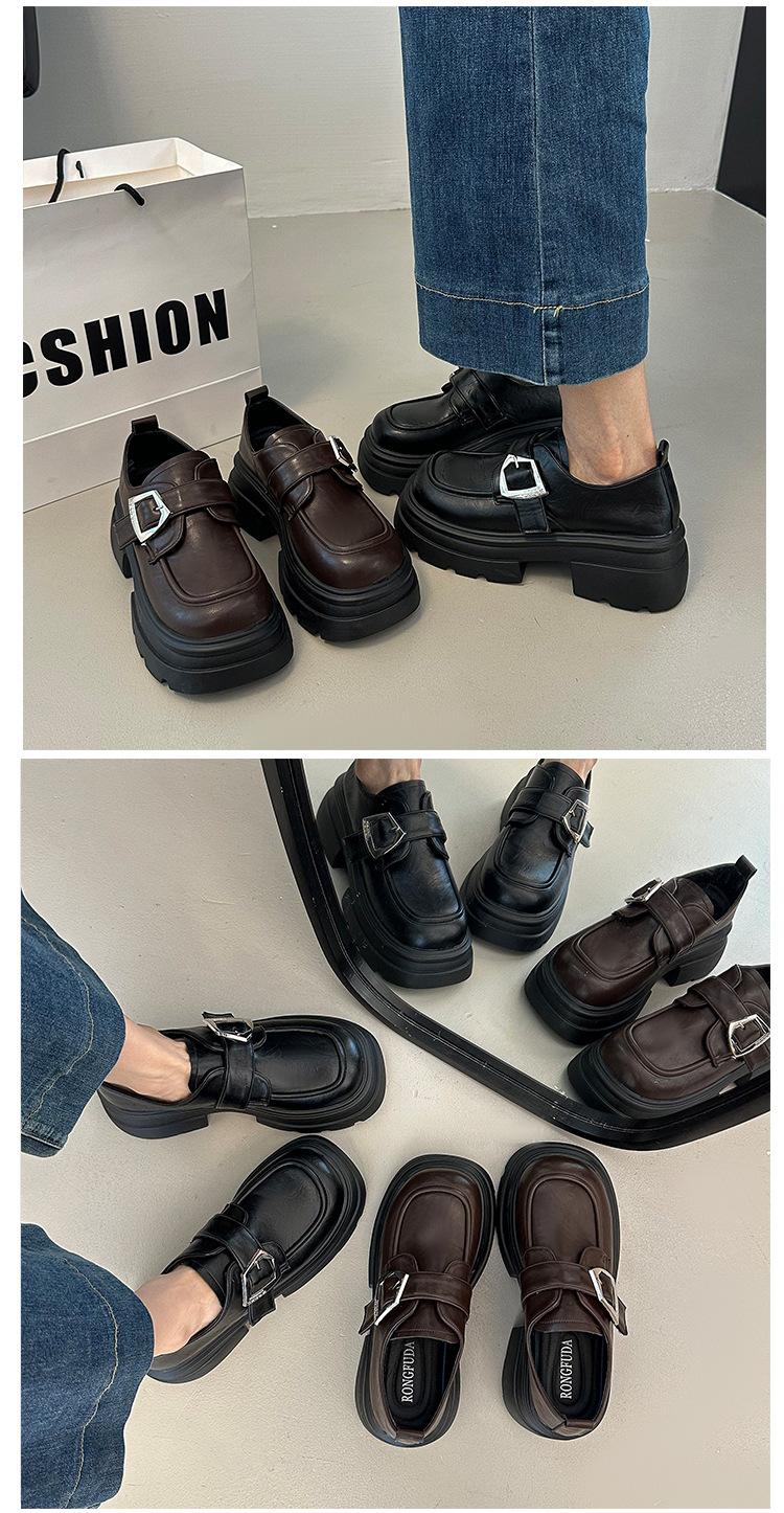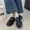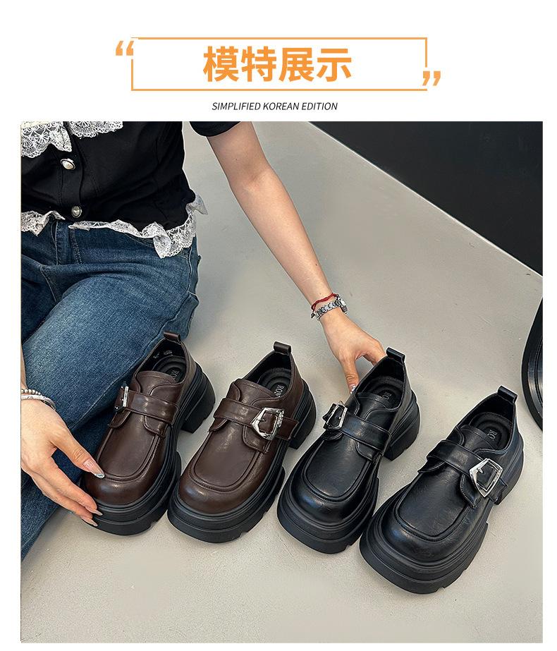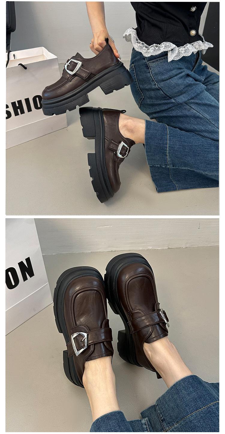 Mocasines de Cuero Sintético para Mujer 2025 Primavera Nuevos Estilo Británico Suela Gruesa Aumento de Altura Zapatos de Cuero Pequeños Negros Zapatos de Cuero Casuales