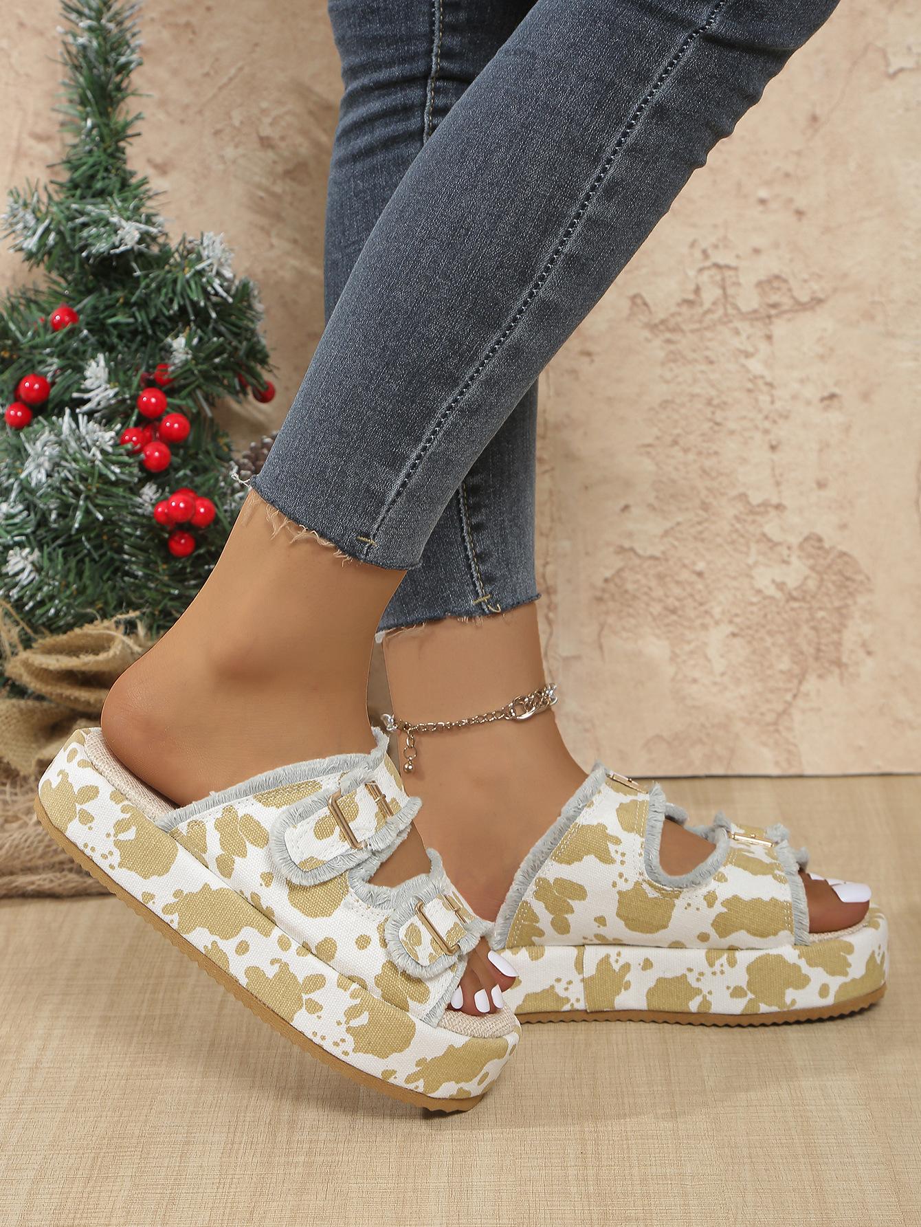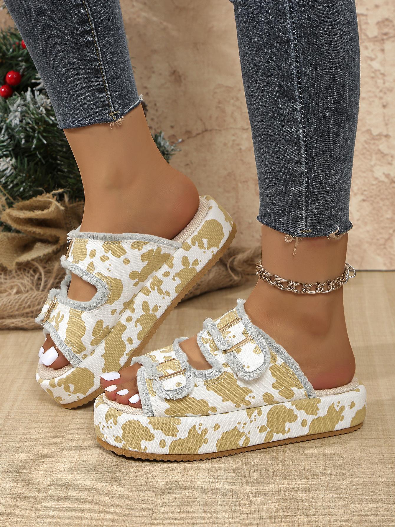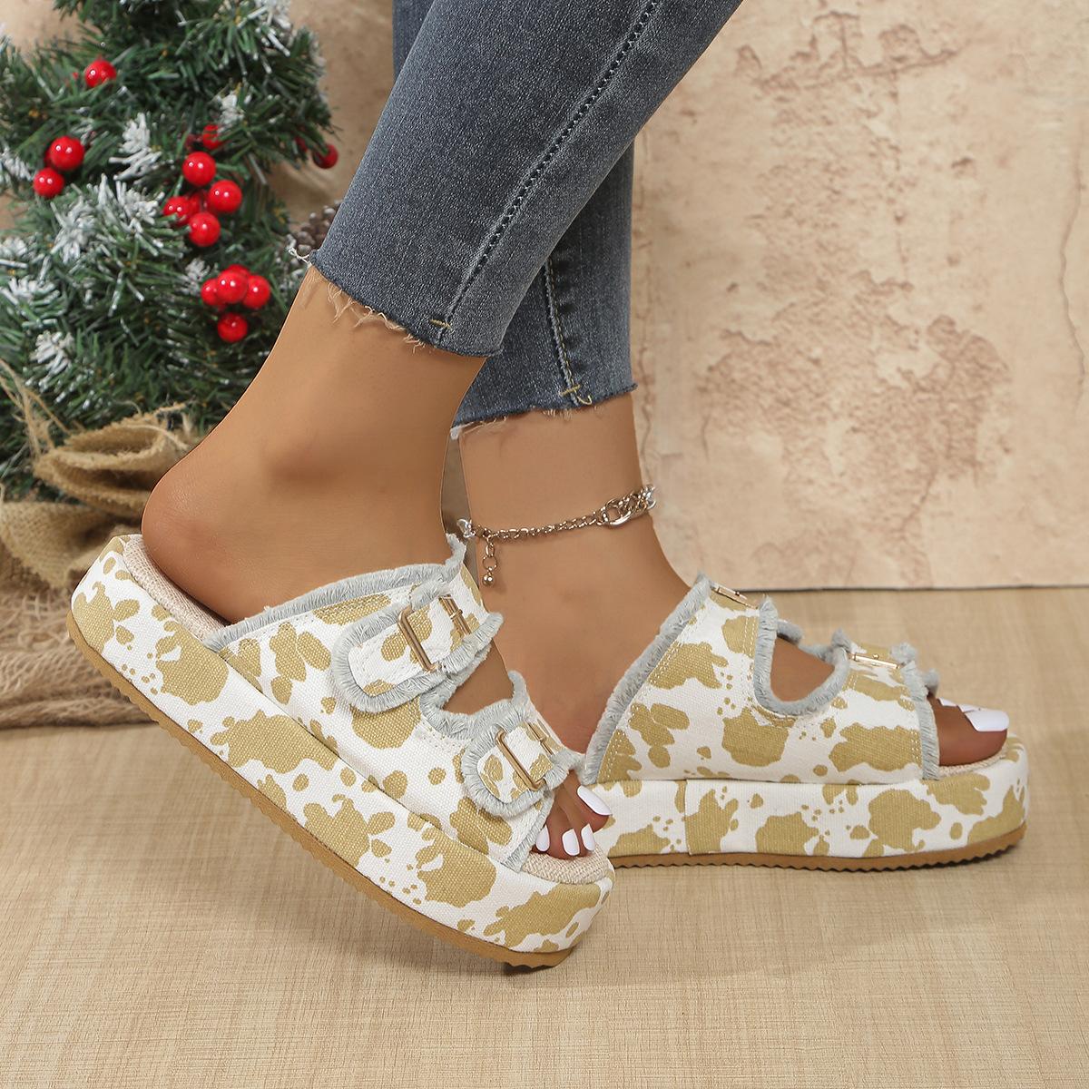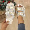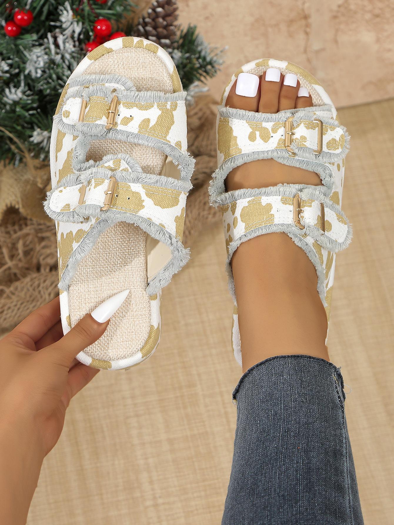 Zapatillas de Verano 2025 de Talla Grande Europea y Americana con Combinación de Colores, Punta Redonda, Moda con Hebilla de Cinturón de Una Línea para Mujer con Suela Gruesa
