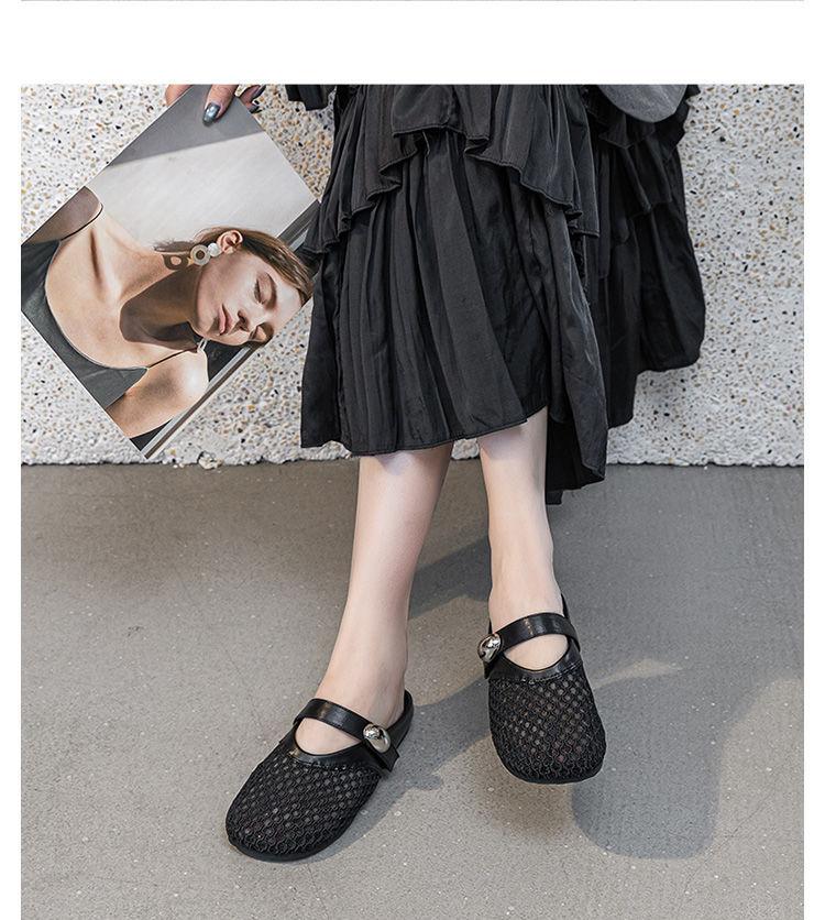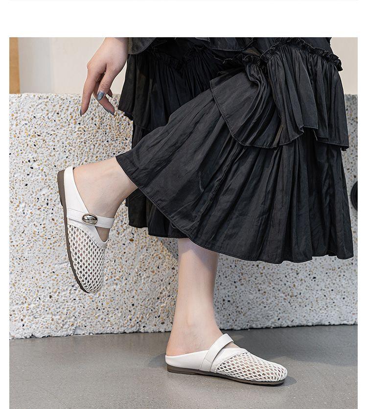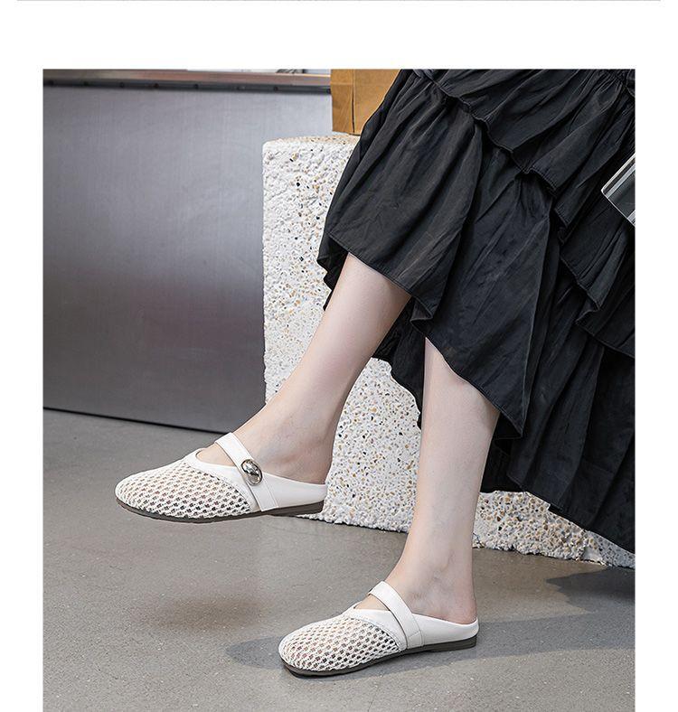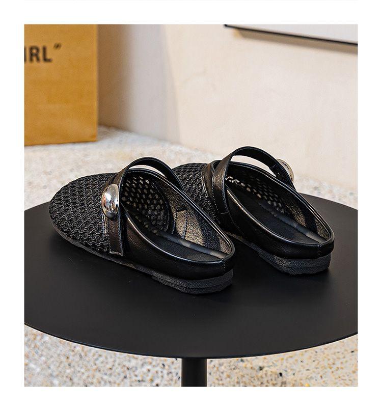 Verano Mary Jane Malla Puntera Pantuflas Medias para Mujer 2025 Nuevo Verano Ropa Exterior Transpirable Calado Sandalias de Suela Blanda