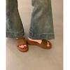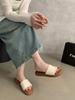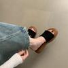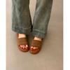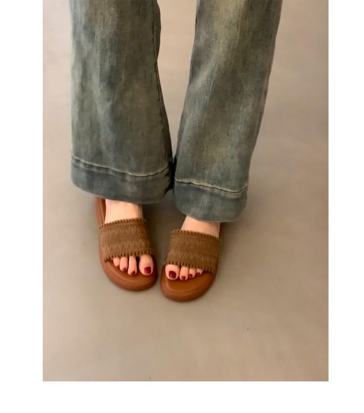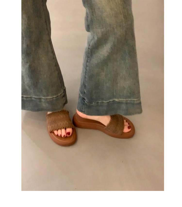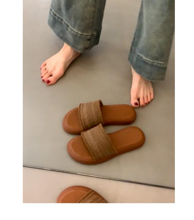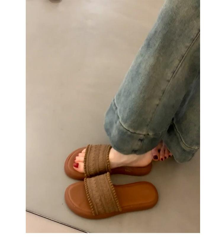 Sandalias de Mujer Retro Marrón Tejido Exterior Desgaste Diapositivas de Fondo Grueso Pantuflas Casuales para Vacaciones