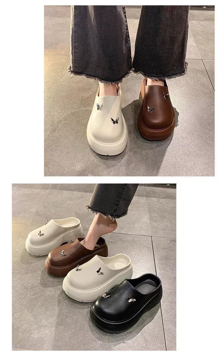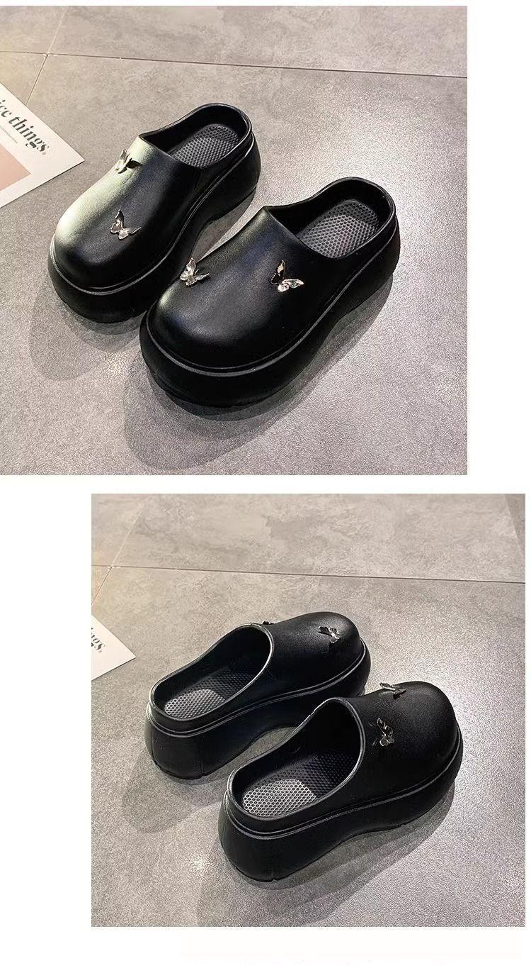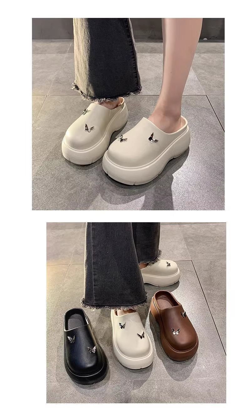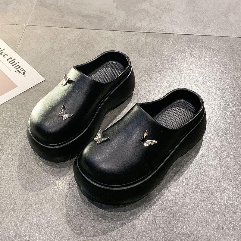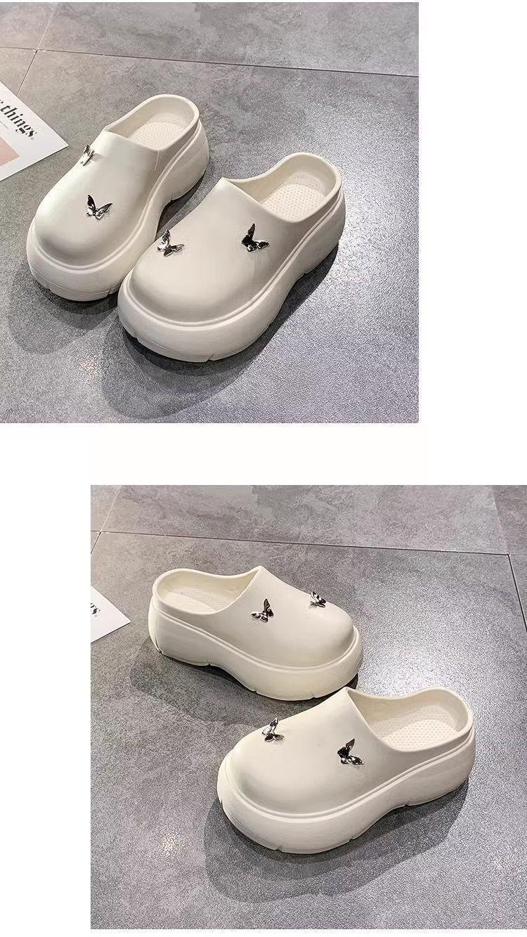 Pantuflas Casuales Cómodas de Suela Gruesa para Mujer 2025 Primavera y Verano Nuevas Pantuflas Lindas de Mariposa Metálica para Mujer para Usar Afuera