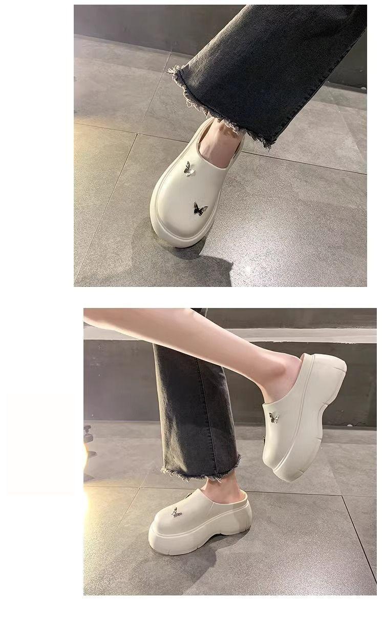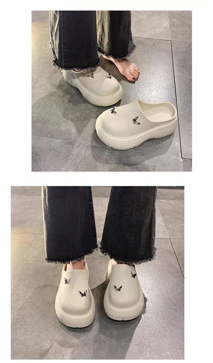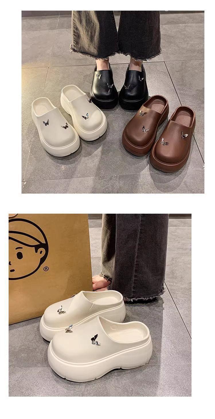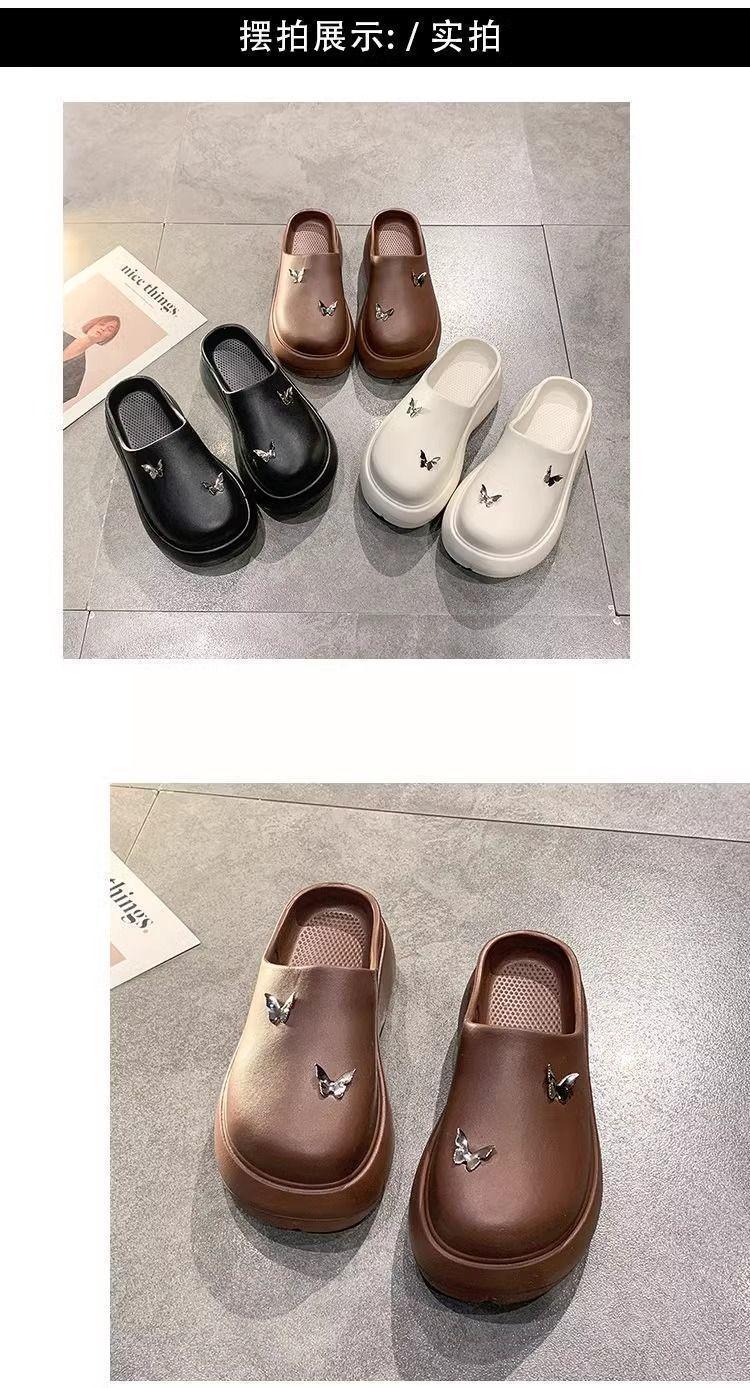 Pantuflas Casuales Cómodas de Suela Gruesa para Mujer 2025 Primavera y Verano Nuevas Pantuflas Lindas de Mariposa Metálica para Mujer para Usar Afuera