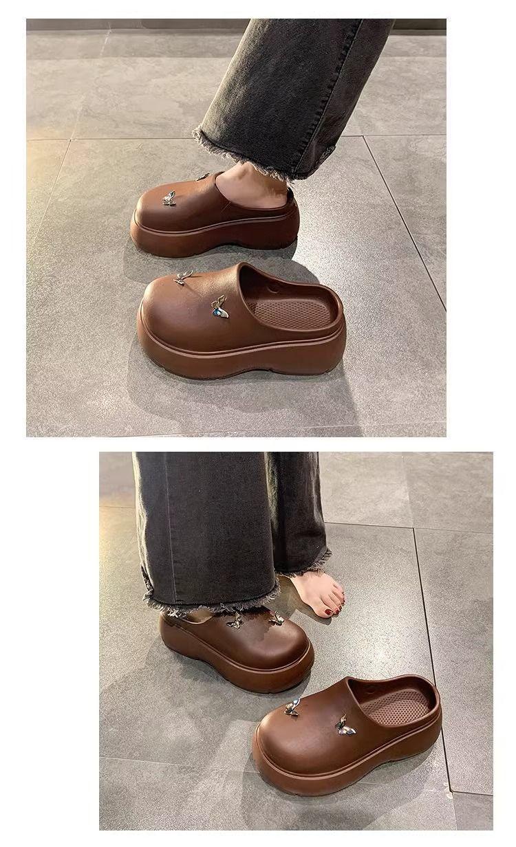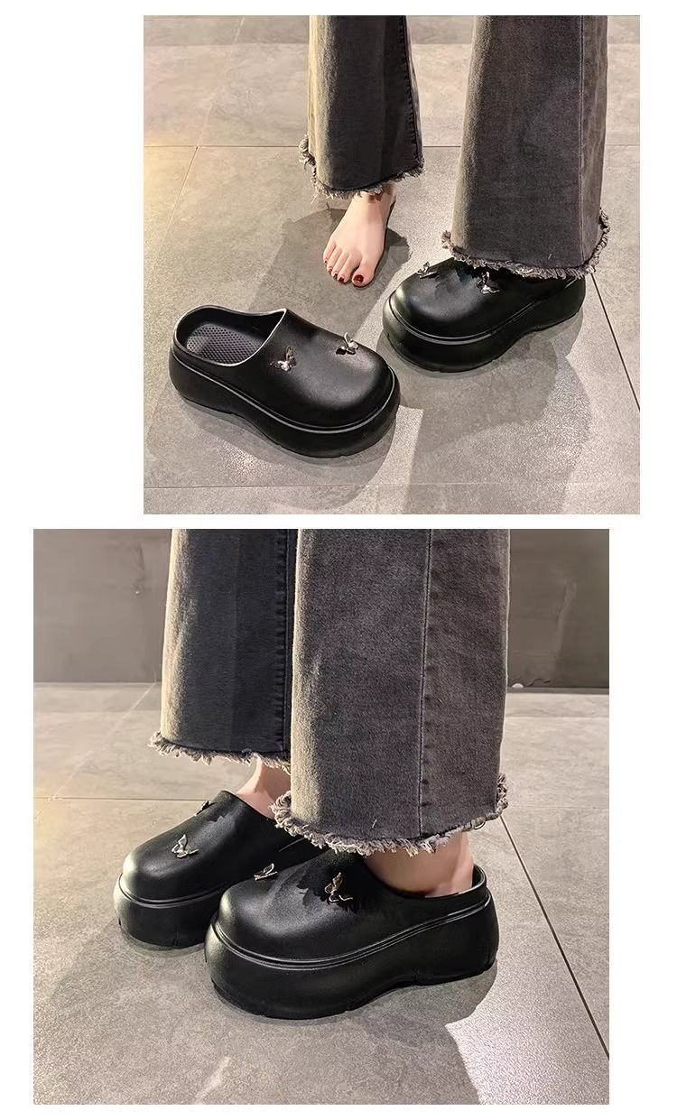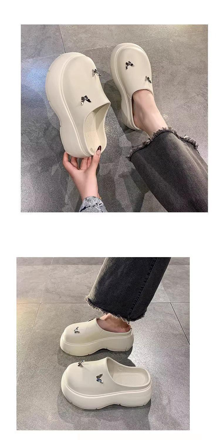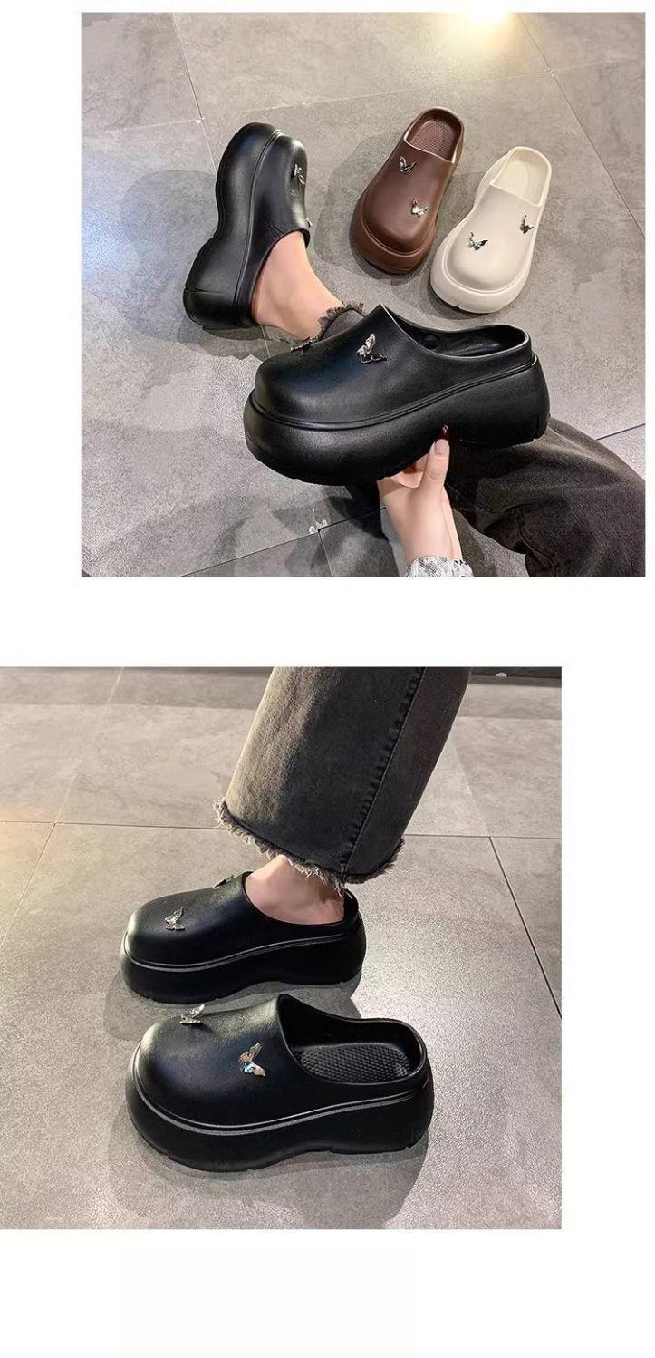 Pantuflas Casuales Cómodas de Suela Gruesa para Mujer 2025 Primavera y Verano Nuevas Pantuflas Lindas de Mariposa Metálica para Mujer para Usar Afuera