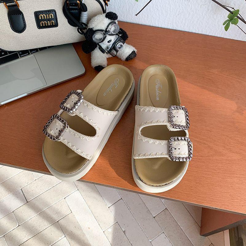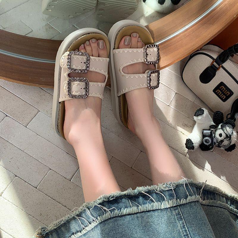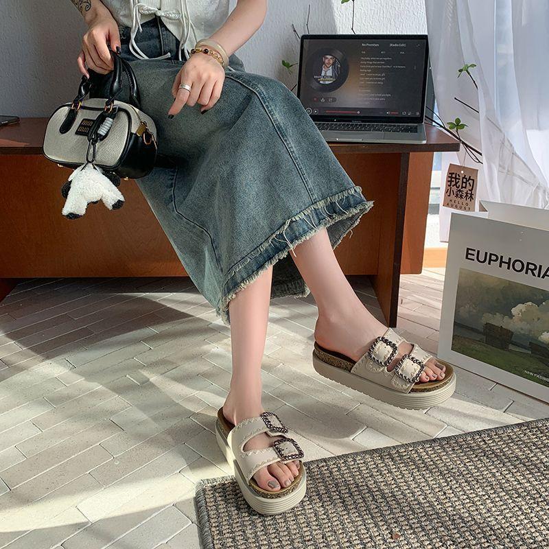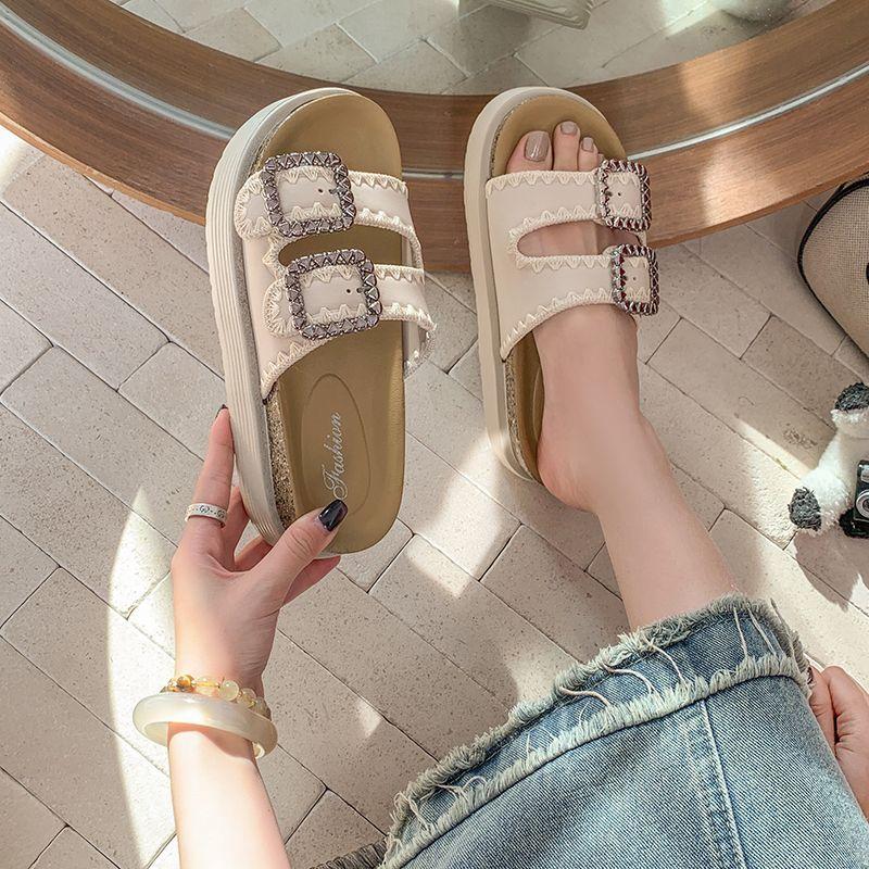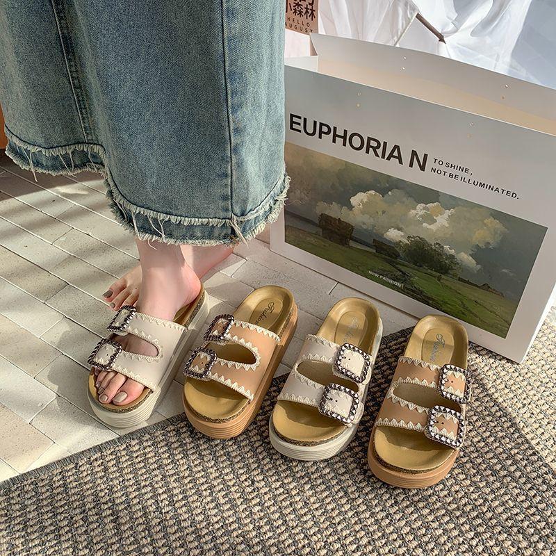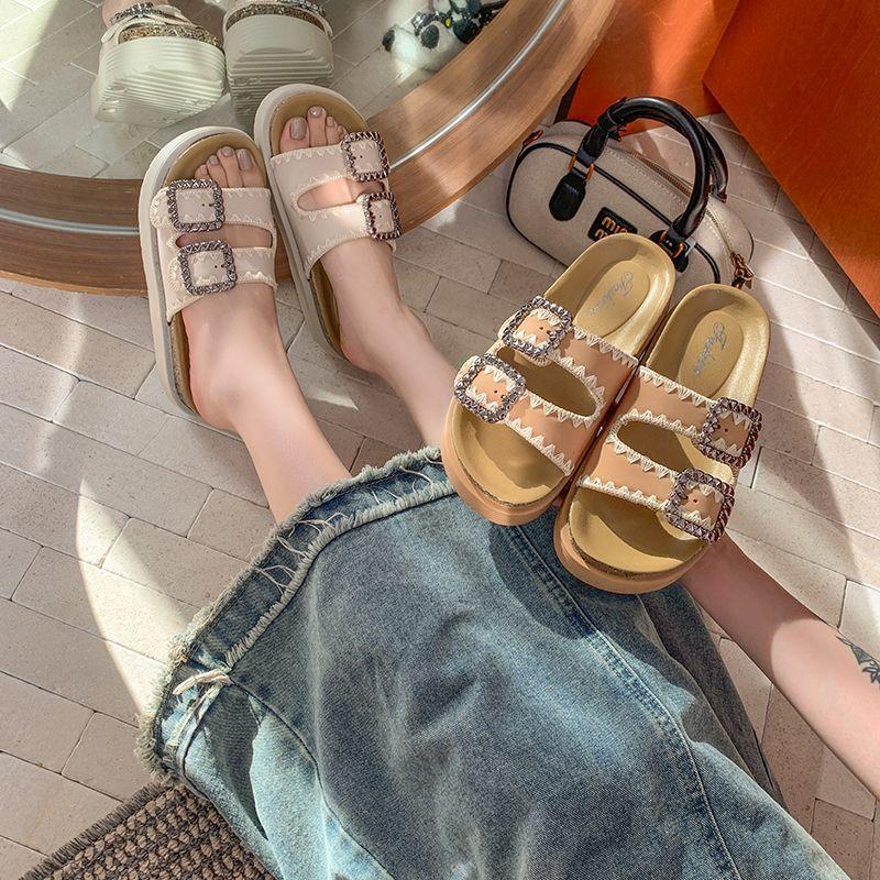 Pantuflas Super Populares de Moda, Pantuflas Casuales Versátiles, Hermosas Sandalias de Pedrería de Suela Gruesa para Mujer 2025 Nuevo Estilo de Verano y Otoño