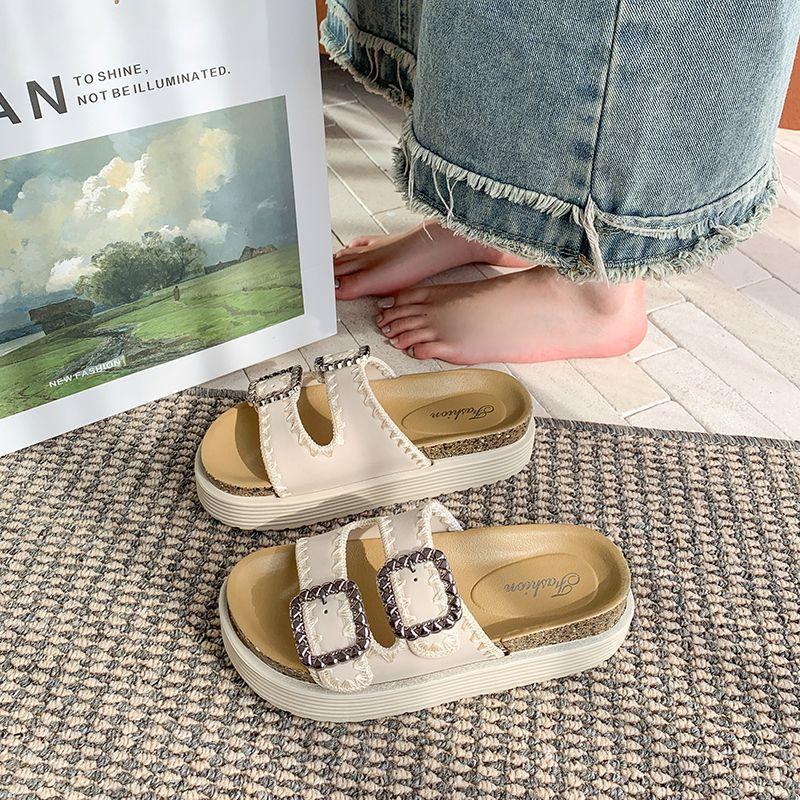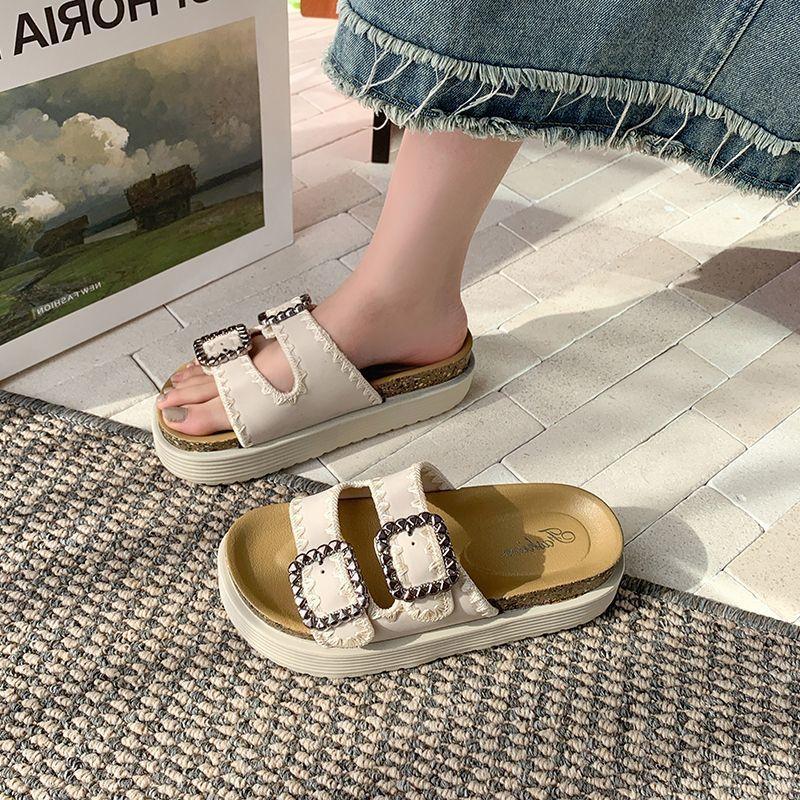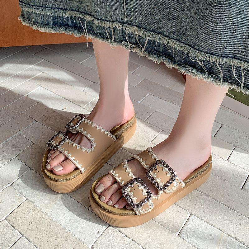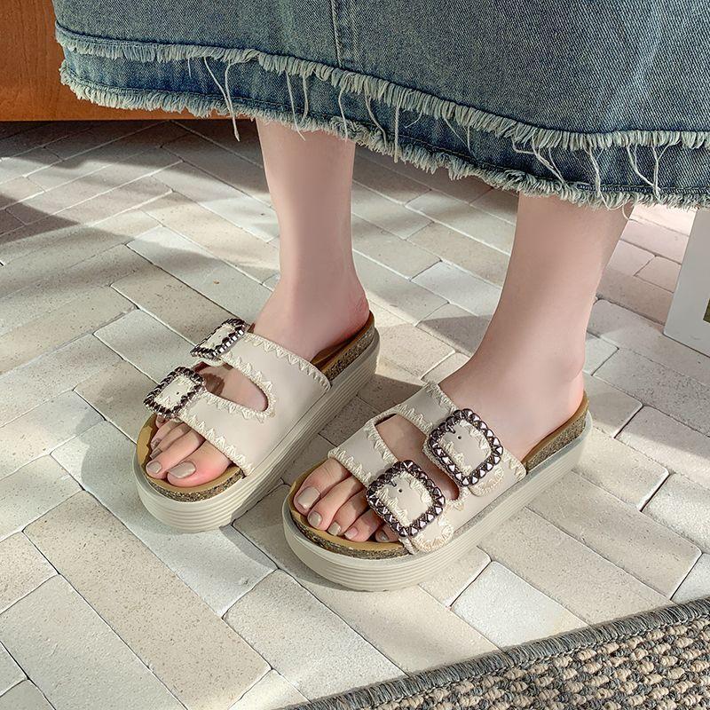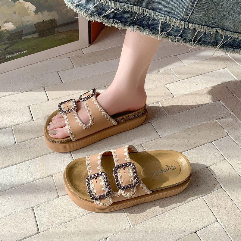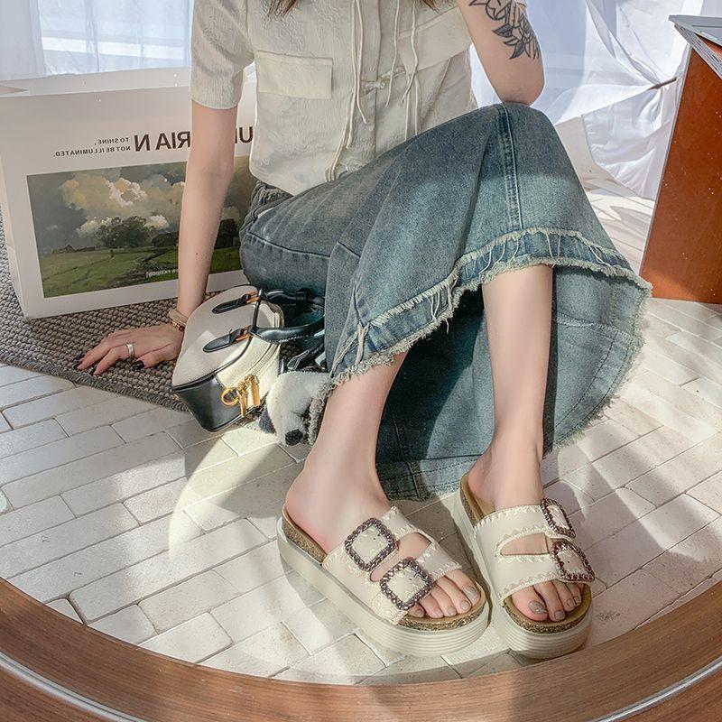 Pantuflas Super Populares de Moda, Pantuflas Casuales Versátiles, Hermosas Sandalias de Pedrería de Suela Gruesa para Mujer 2025 Nuevo Estilo de Verano y Otoño
