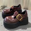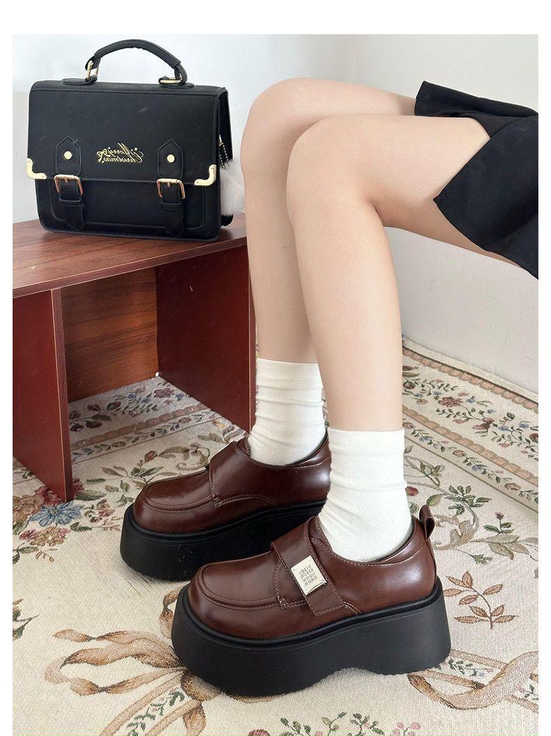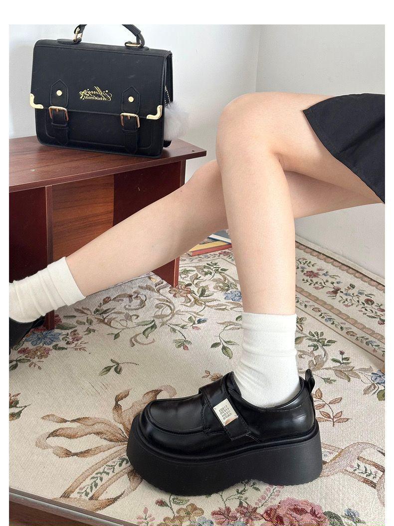 Zapatos de Plataforma Estilo Británico de Puntera Grande de Cuero Pequeño 2025 Verano Nueva Moda Versátiles de Suela Gruesa Slip-On Zapatos Cómodos para Mujer