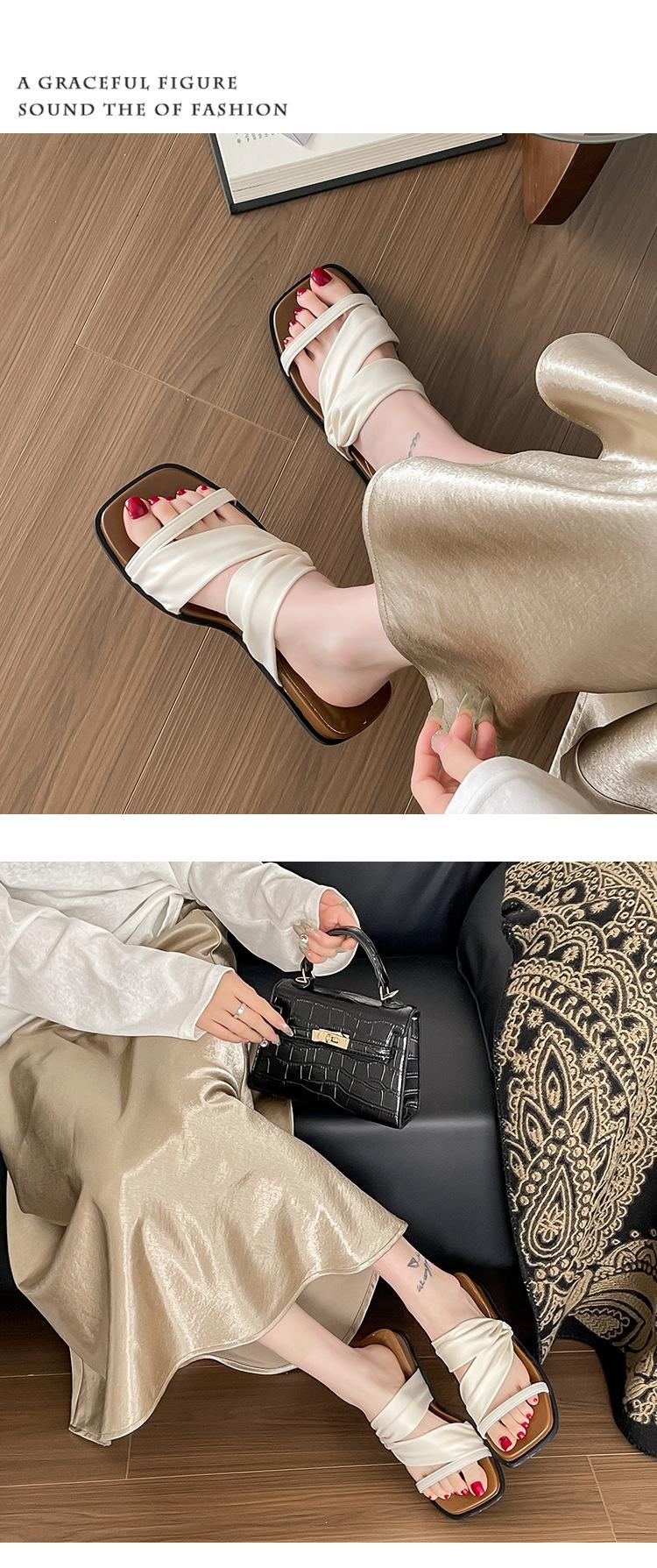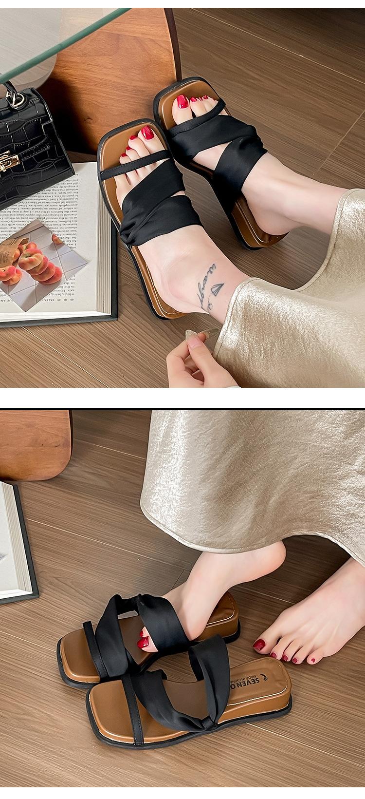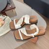 2025 Verano Nueva Moda Versátil Diseño Nicho Retro Zapatillas de Cuña Punta Cuadrada Punta Abierta Sandalias de Tacón Alto