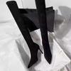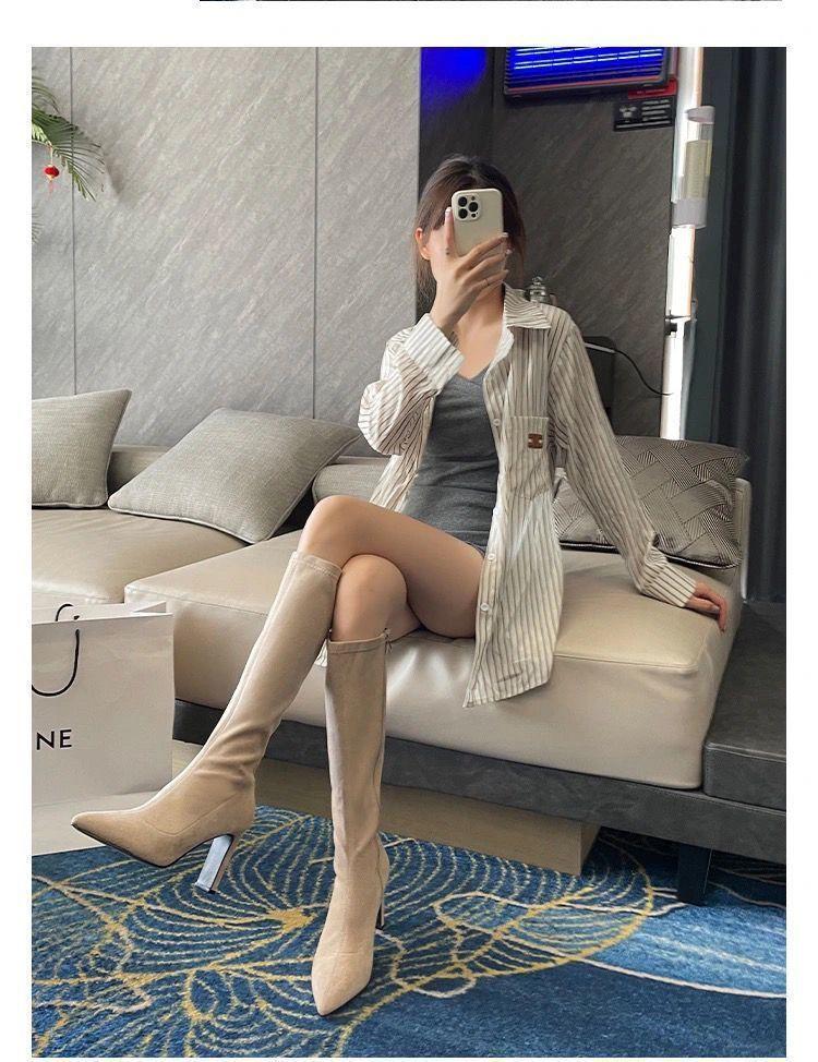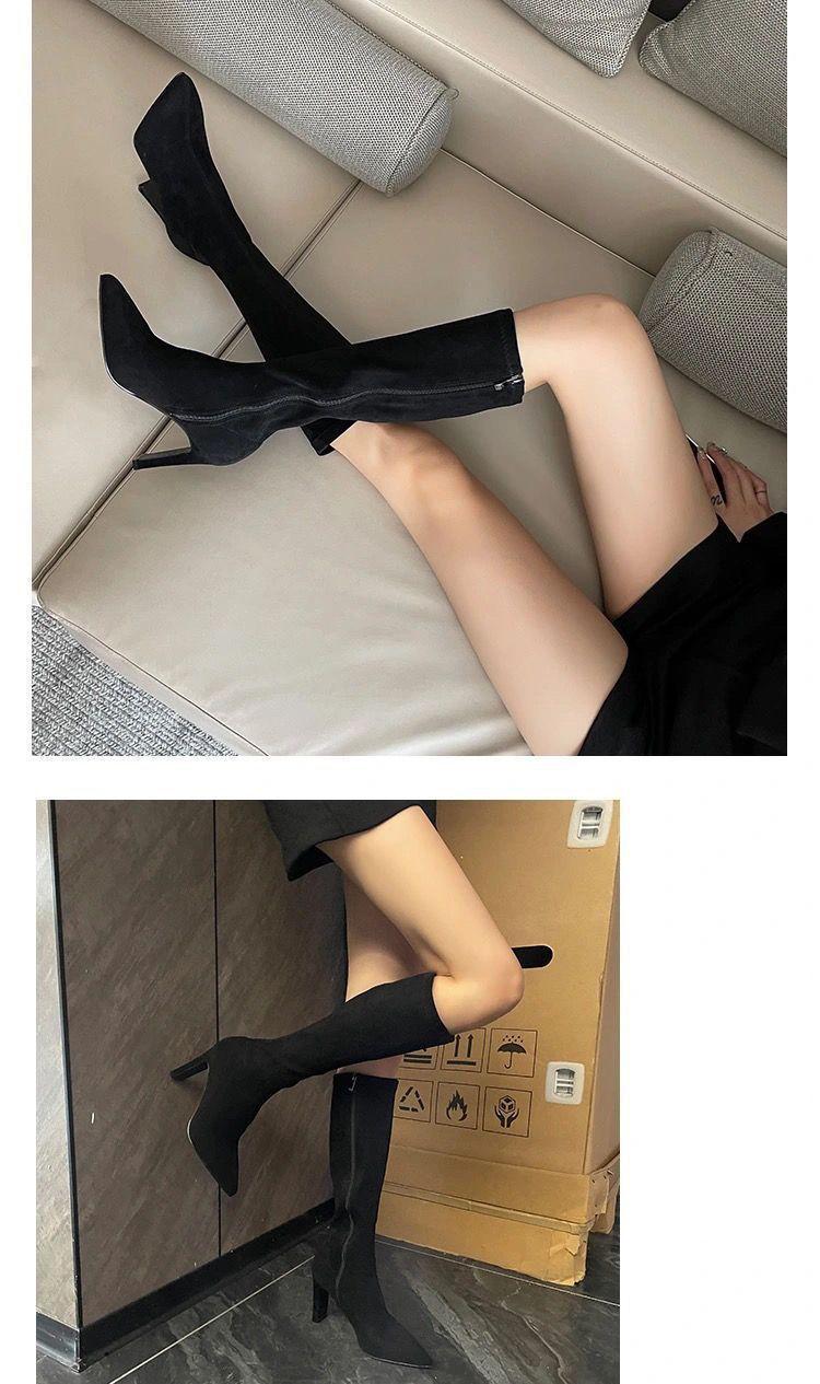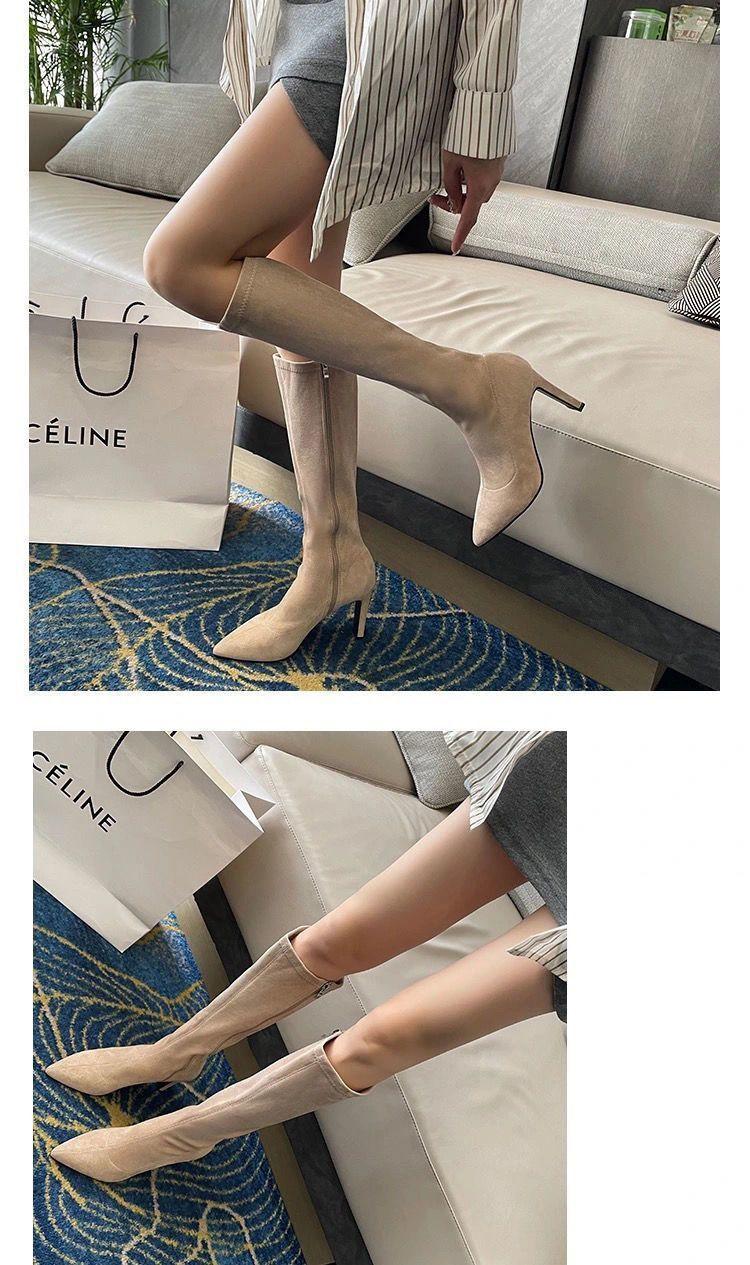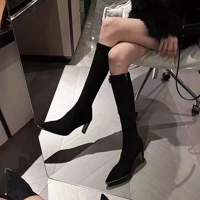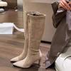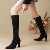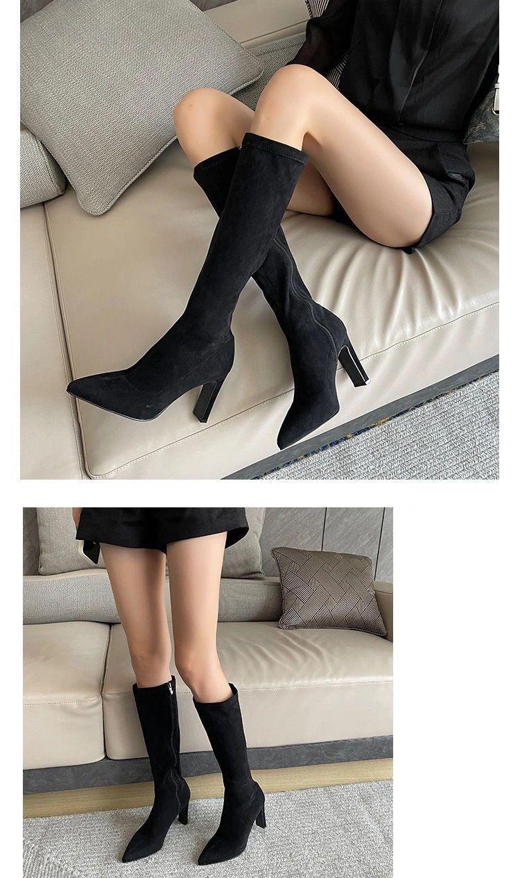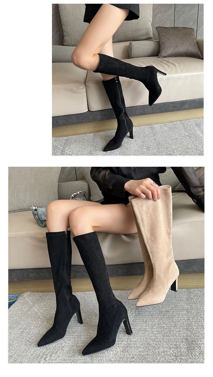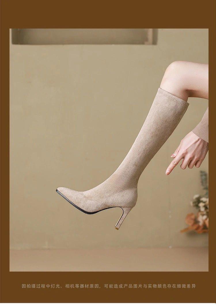 Botas Largas Elásticas de Tacón Alto para Mujer, Botas Slim, Nuevo Estilo Invierno 2025, Ante de Punta Afilada, Versátiles, Aspecto Adelgazante, Botas hasta la Rodilla
