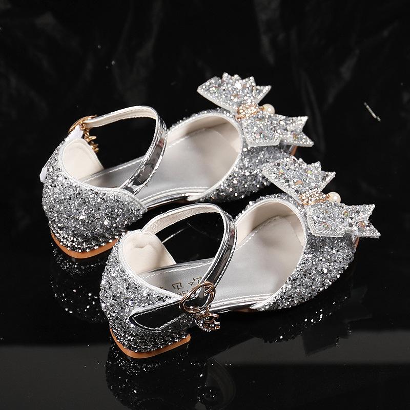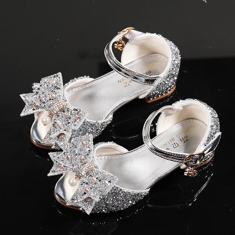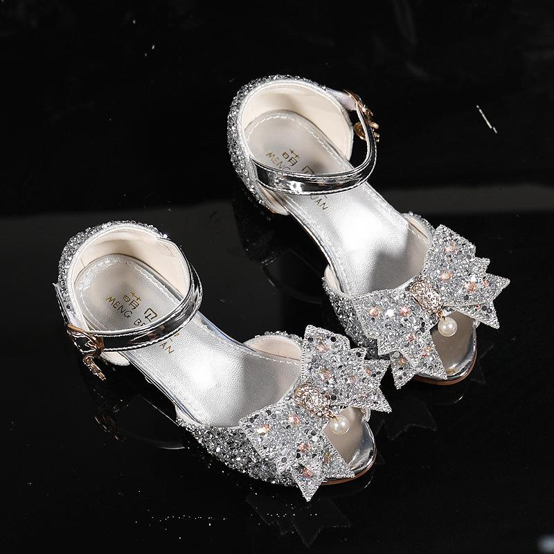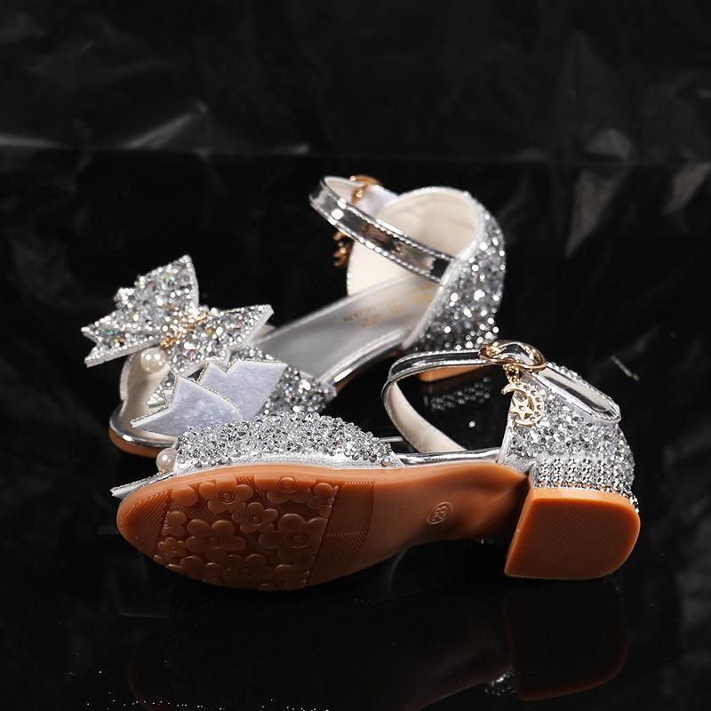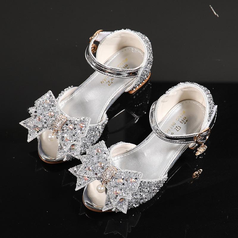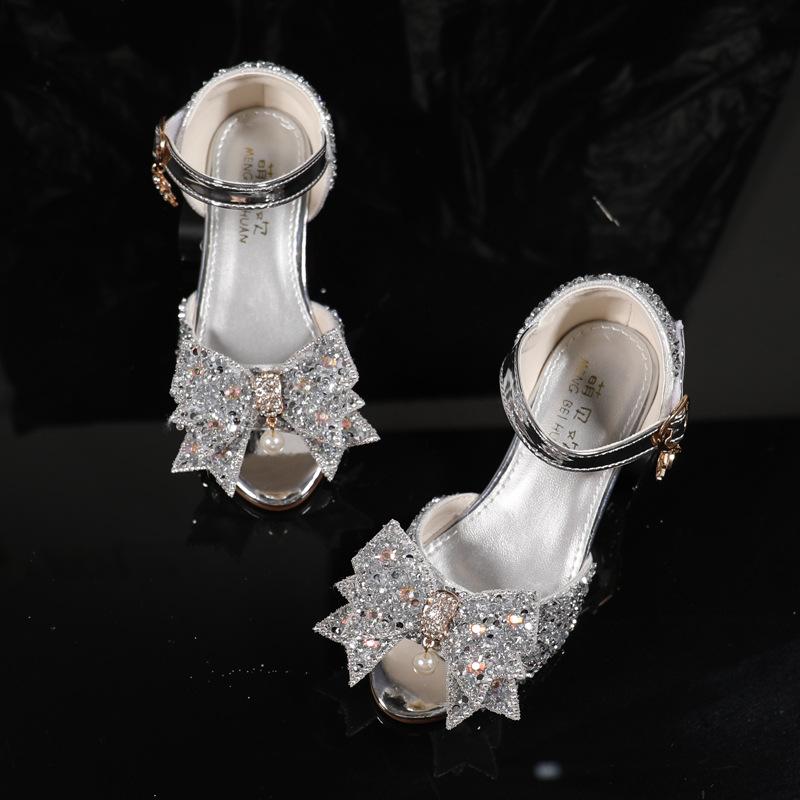 Sandalias para Niñas 2025 Verano Nuevo Tacones Altos para Niños Estilo Coreano Niña Elsa Frozen Zapatos de Cristal