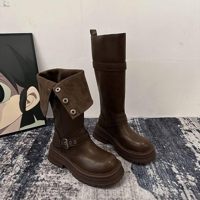 Botas vaqueras de caballero estilo occidental, con hebilla de cinturón, estilo académico, para otoño e invierno, 2024