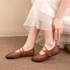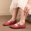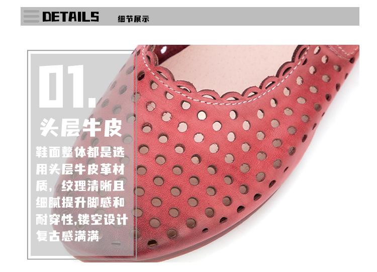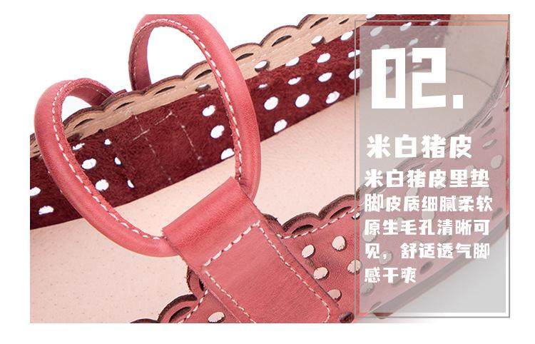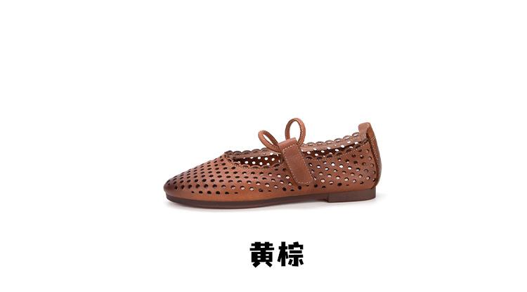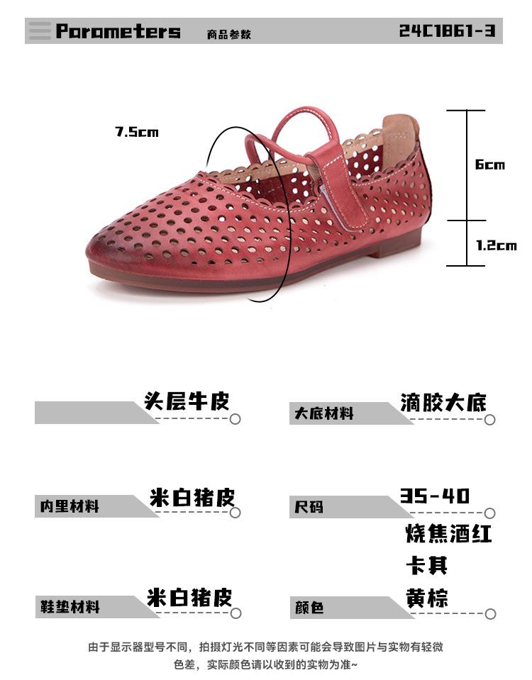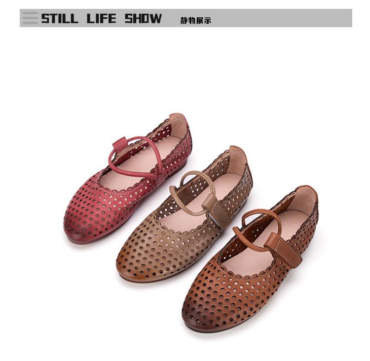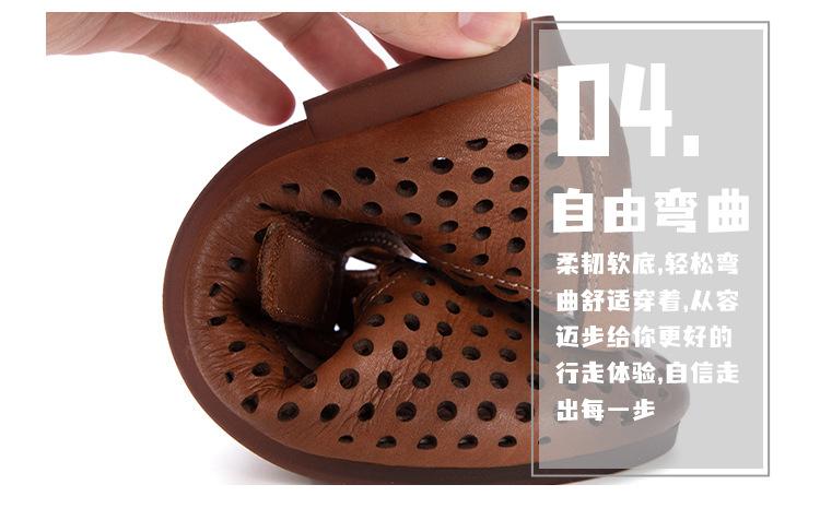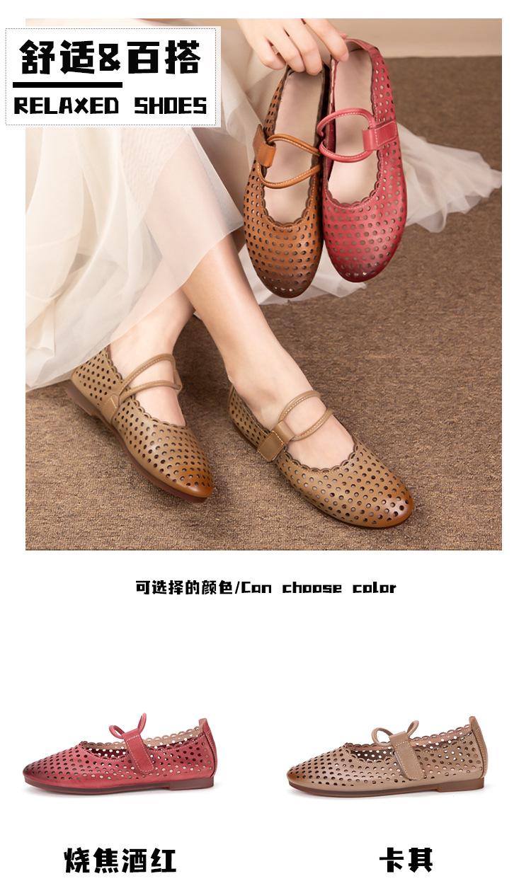 Zapatos de Cuero Genuino de Piel de Vaca de Primera Capa para Mujer, Zapatos de Verano con Agujeros Huecos, Sandalias Artesanales Retro Cómodas de Suela Plana Transpirables