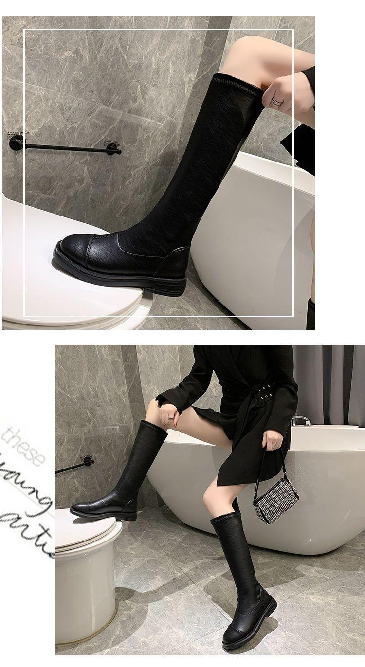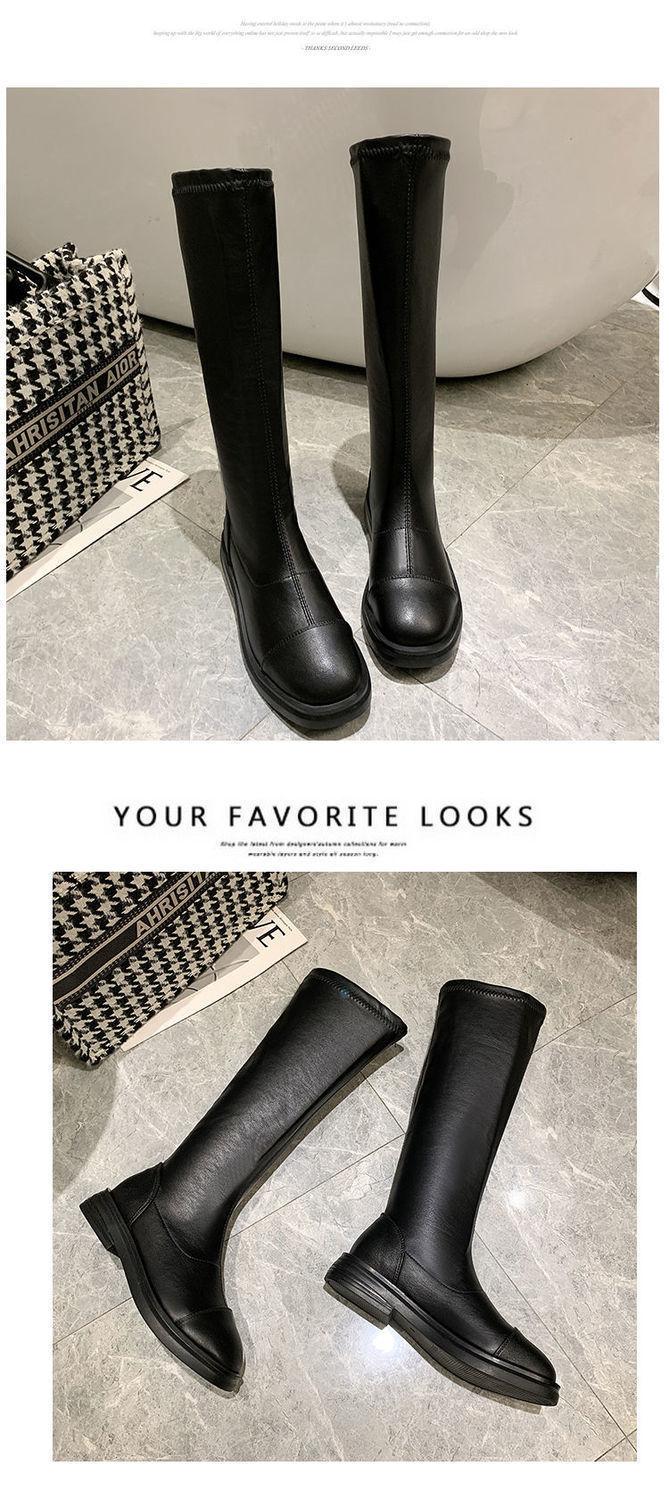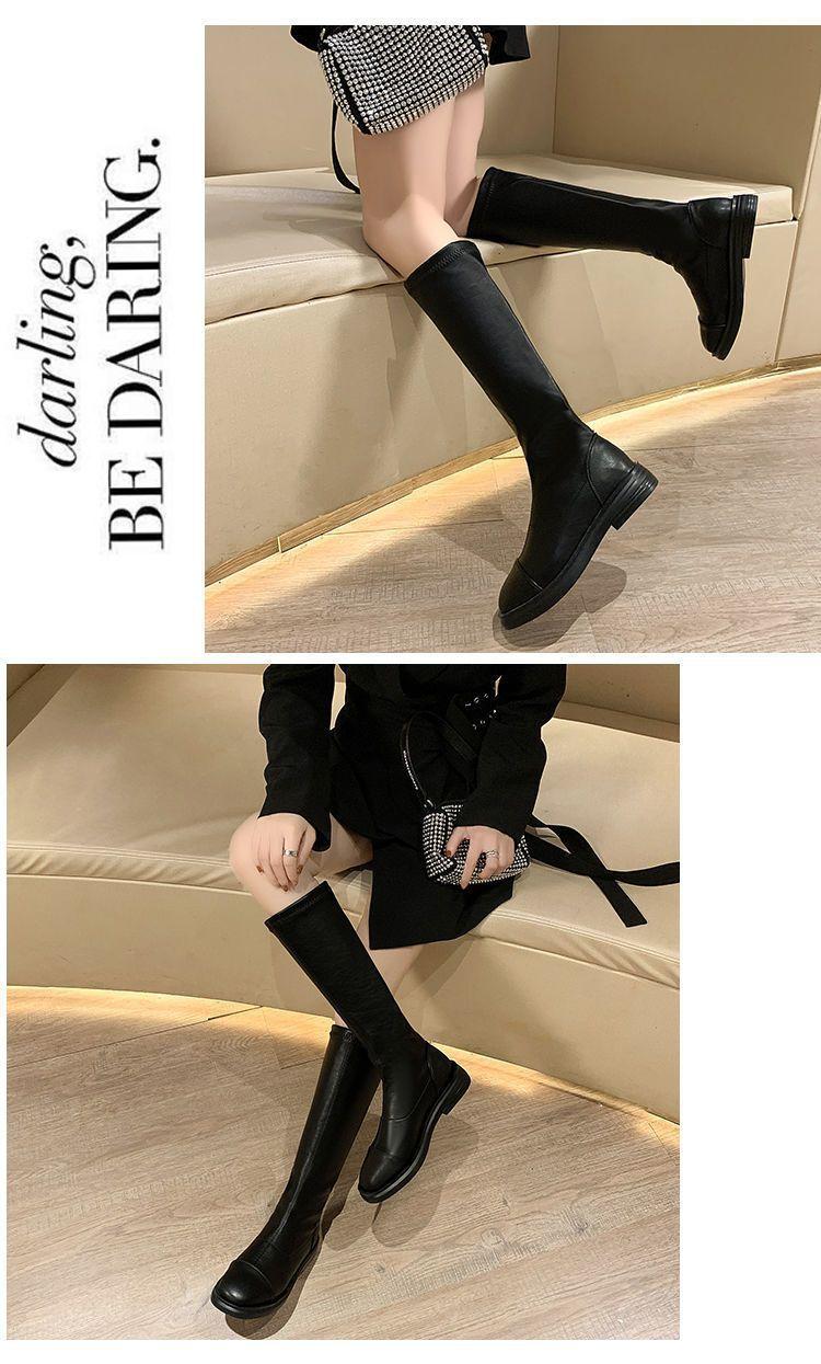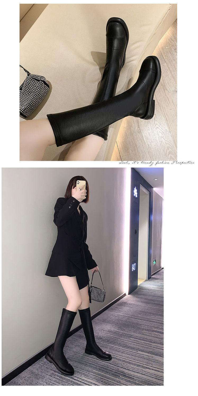 2021 Otoño e Invierno Nuevas Botas de Caballero Botas Elásticas Botas de Cuero para Mujer Botas Hasta la Rodilla Botas Largas Altas Botas Slim a la Moda