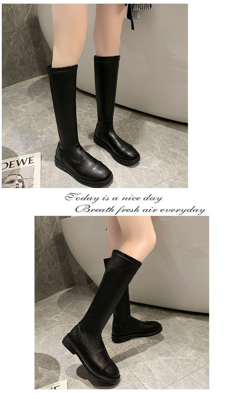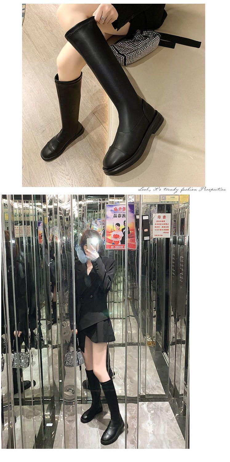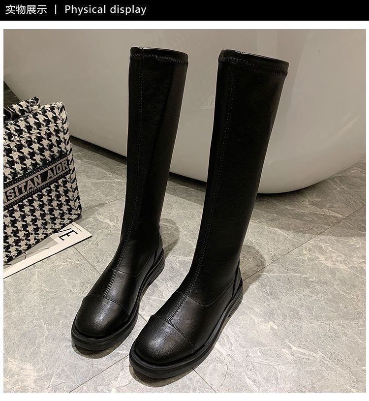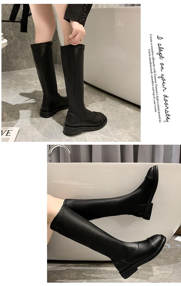 2021 Otoño e Invierno Nuevas Botas de Caballero Botas Elásticas Botas de Cuero para Mujer Botas Hasta la Rodilla Botas Largas Altas Botas Slim a la Moda